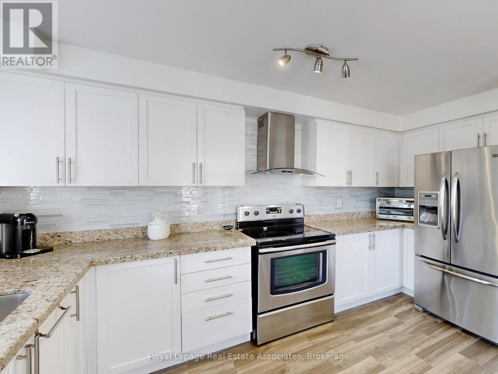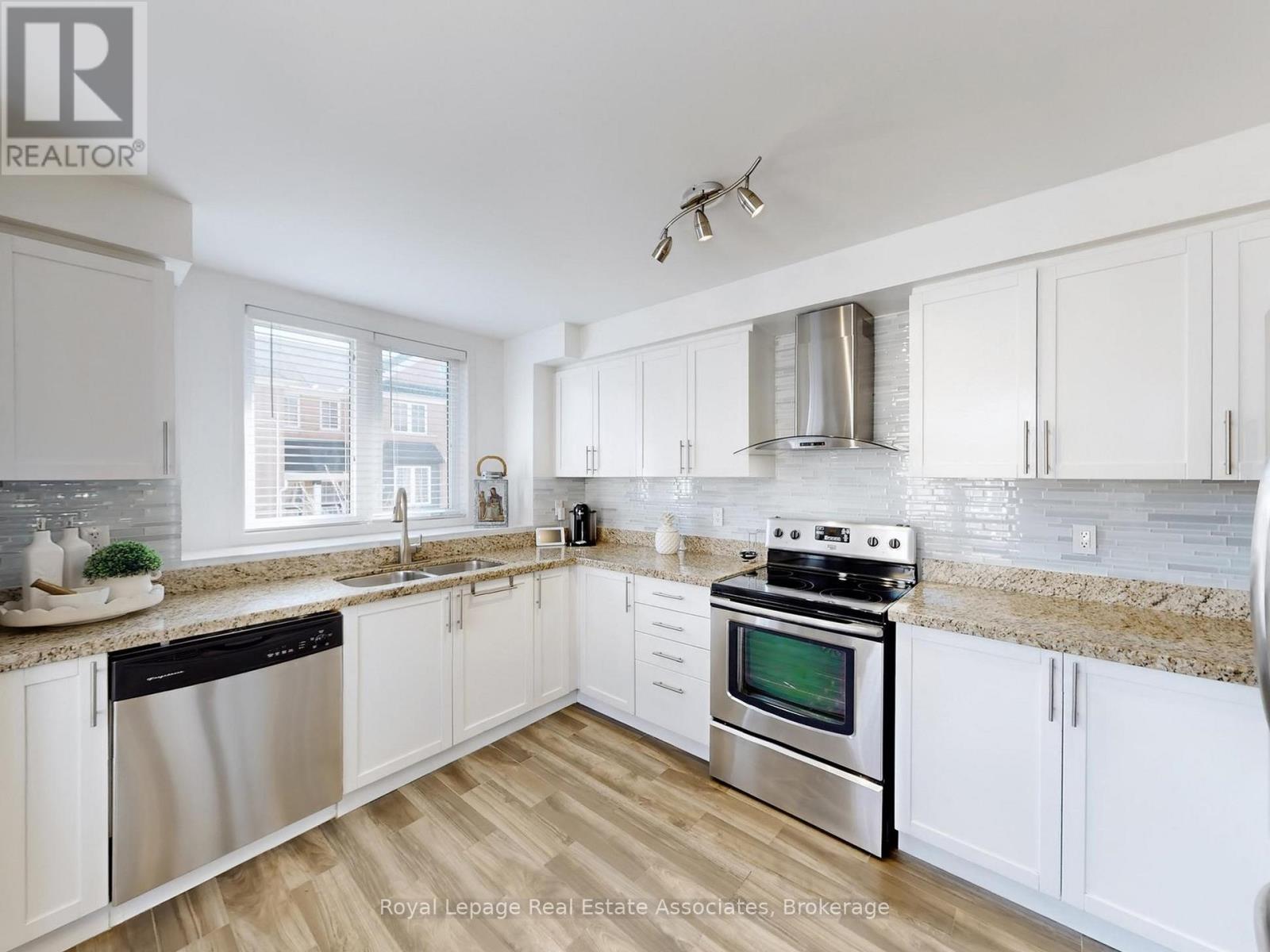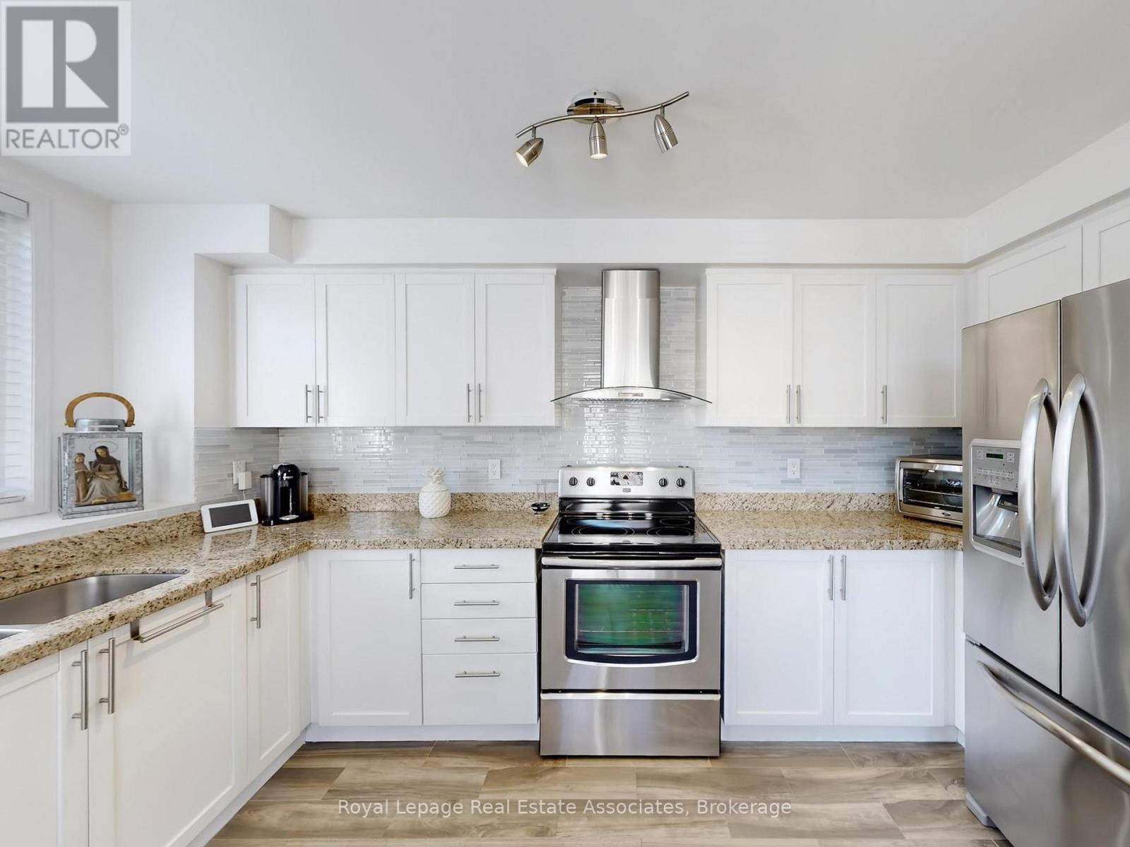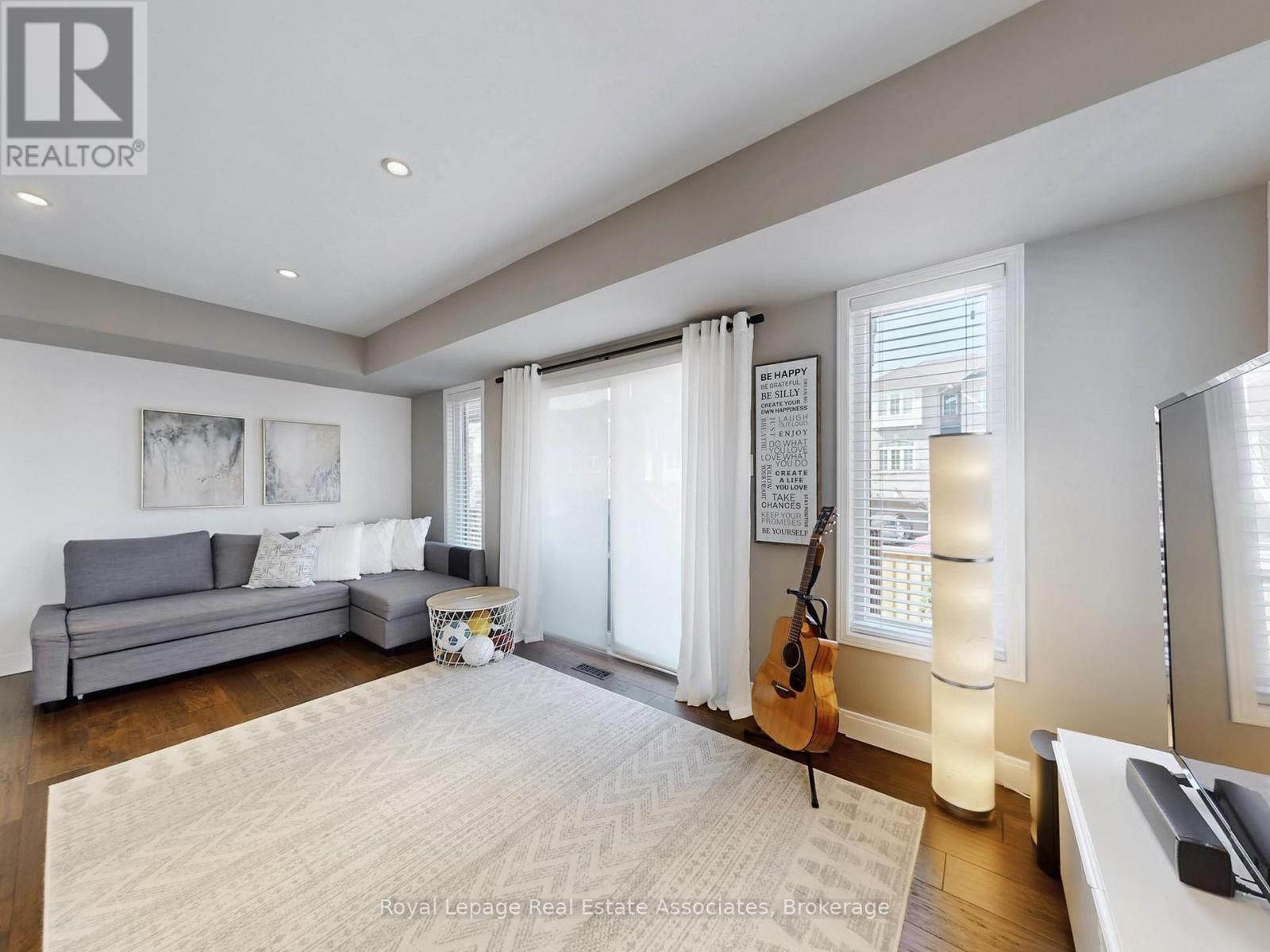 BEST HOME IN THE COMPLEX! This exceptional corner townhouse feels like a semi-detached, offering a larger lot frontage and 1,992 Sq Ft of living space, plus the rare advantage of no neighbours at the back, an exclusive feature found only in this row. Beautifully renovated from top to bottom, the home showcases engineered wood flooring throughout and is filled with natural light thanks to its unique positioning and abundance of windows. The layout is warm, inviting, and full of charm. The kitchen is a true highlight, featuring stainless steel appliances, granite countertops, ample cabinetry, and a convenient eat-in area, perfect for everyday living. The third level offers three generously sized bedrooms, including a spacious primary retreat with a private ensuite and a built-in window bench. All bedrooms feature great closet space. On the ground level, you'll find a large and comfortable family room with a walk-out to a private patio, an ideal setting to relax and enjoy the summer months. The finished basement adds even more functional space, complete with modern finishes, extra cabinetry, and plenty of storage. Private driveway included. A rare opportunity to own a truly standout home in the complex! Prime location with unbeatable convenience!!! Just 2 km to the GO Station, quick access to Highways 401 & 407. Surrounded by shopping, top-rated schools, and all essential amenities, everything you need is right at your doorstep!!! (id:43681)