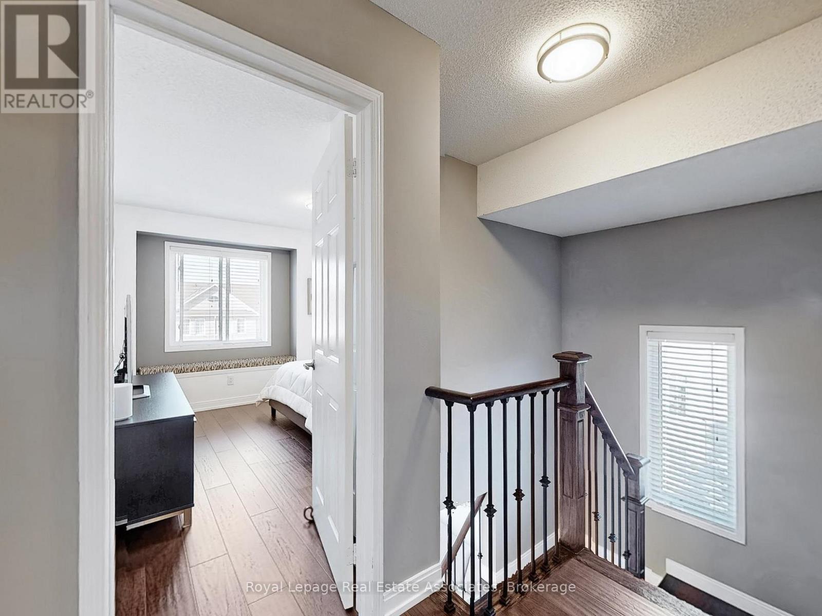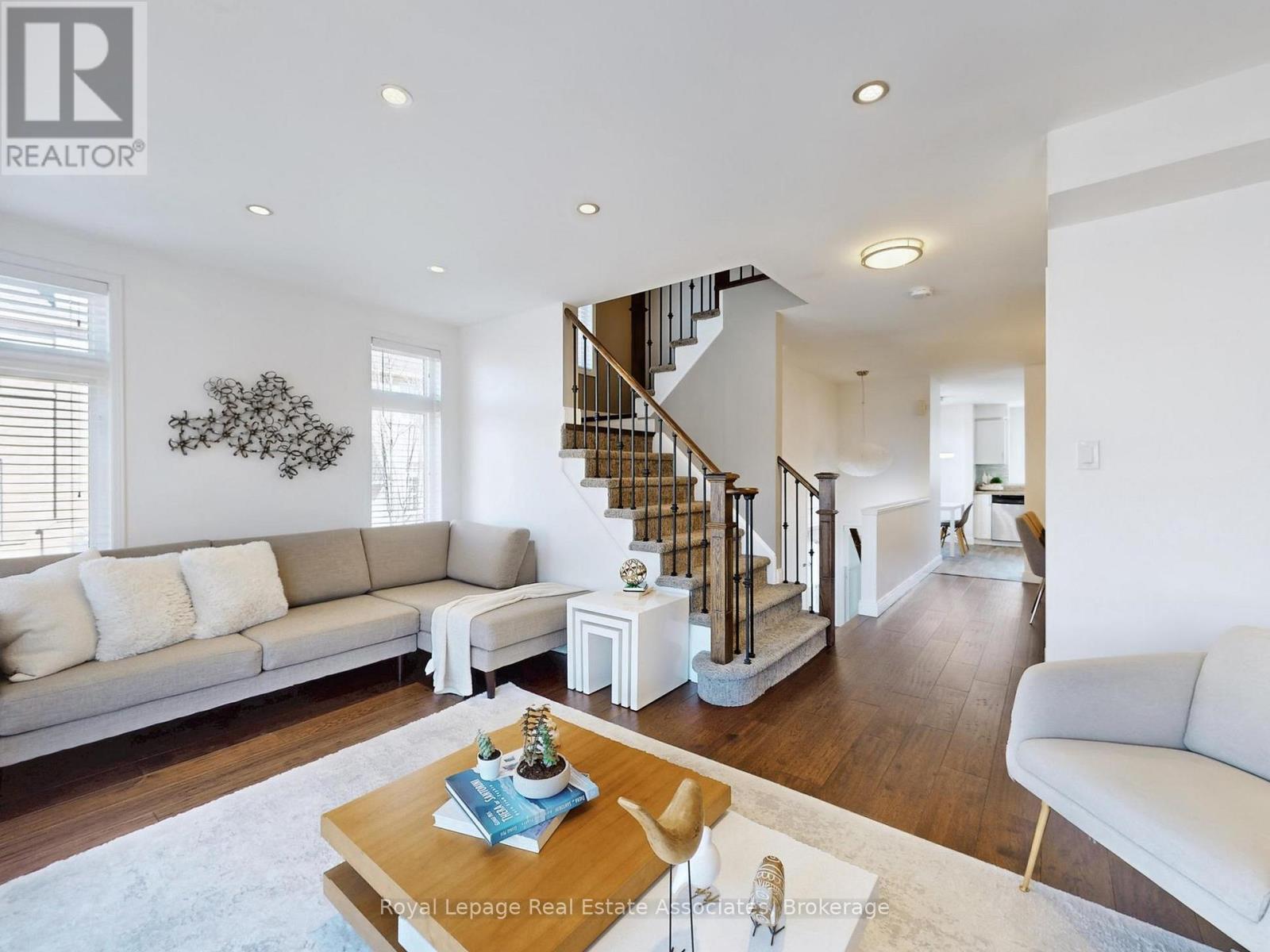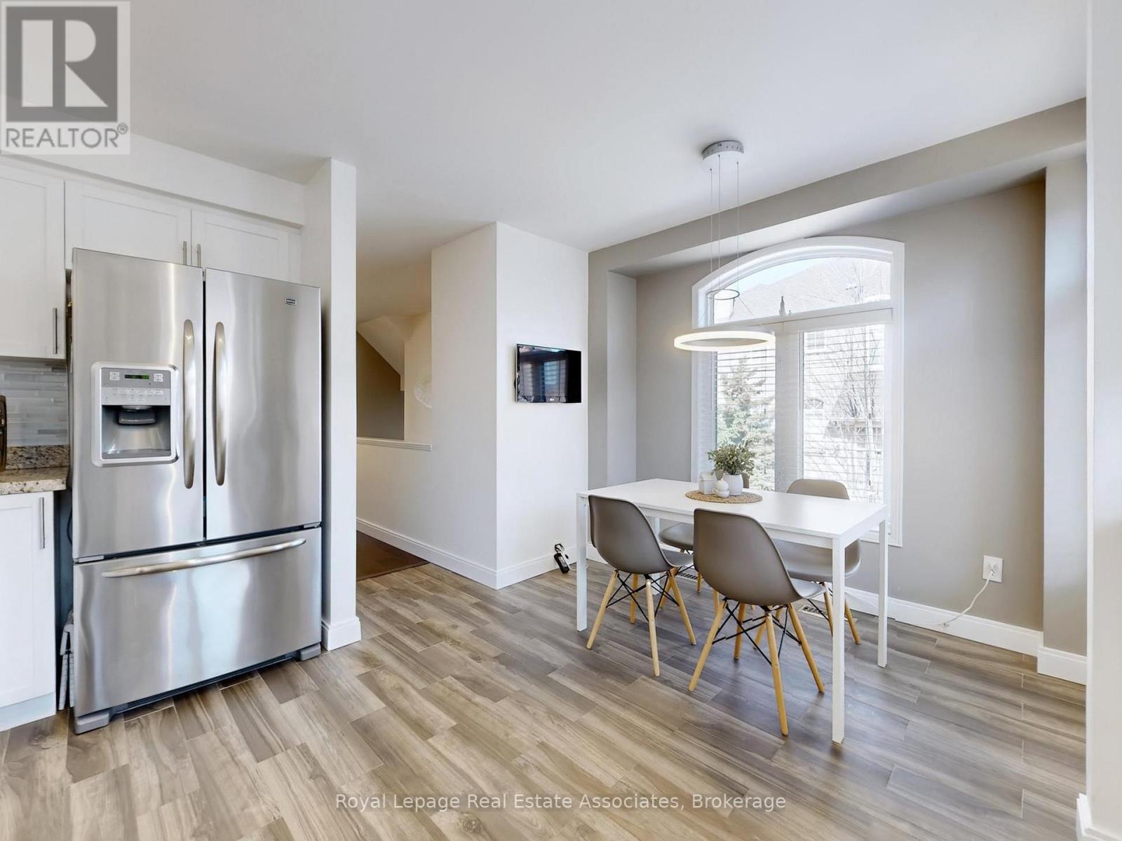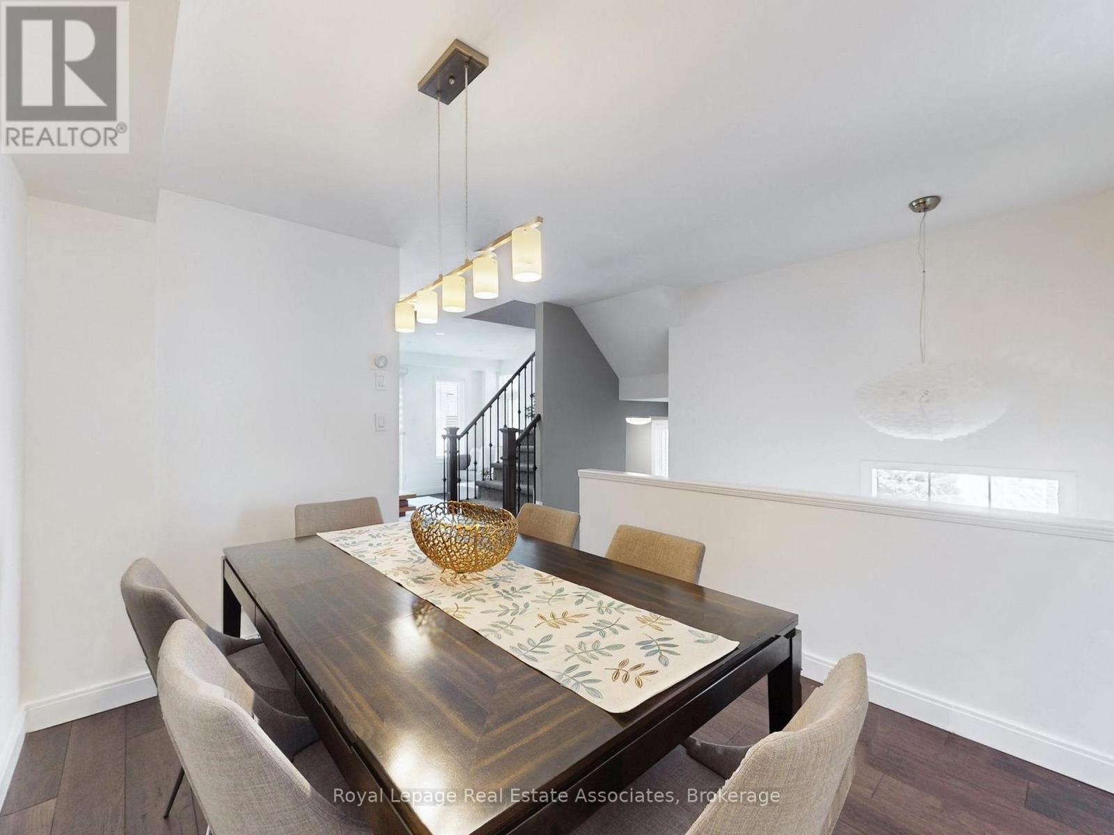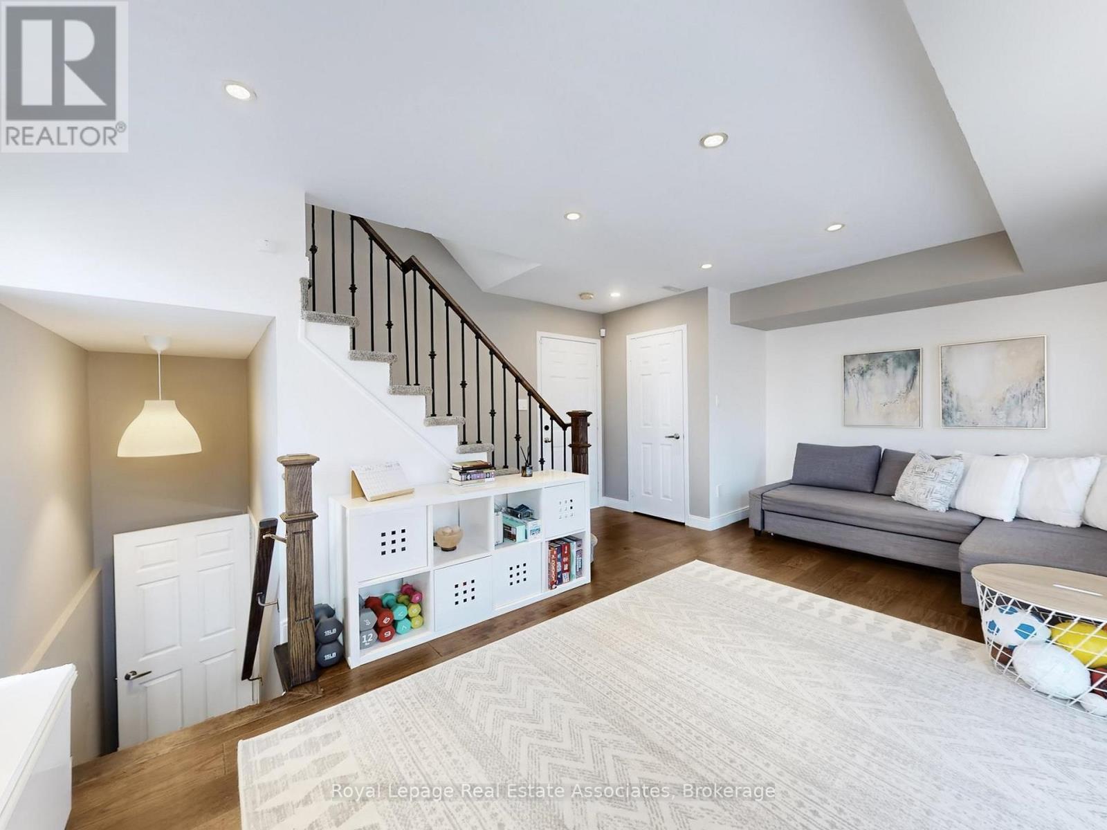 BEST HOME IN THE COMPLEX! This exceptional corner townhouse feels like a semi-detached, offering a larger lot frontage and 1,992 Sq Ft of living space, plus the rare advantage of no neighbours at the back, an exclusive feature found only in this row. Beautifully renovated from top to bottom, the home showcases engineered wood flooring throughout and is filled with natural light thanks to its unique positioning and abundance of windows. The layout is warm, inviting, and full of charm. The kitchen is a true highlight, featuring stainless steel appliances, granite countertops, ample cabinetry, and a convenient eat-in area, perfect for everyday living. The third level offers three generously sized bedrooms, including a spacious primary retreat with a private ensuite and a built-in window bench. All bedrooms feature great closet space. On the ground level, you'll find a large and comfortable family room with a walk-out to a private patio, an ideal setting to relax and enjoy the summer months. The finished basement adds even more functional space, complete with modern finishes, extra cabinetry, and plenty of storage. Private driveway included. A rare opportunity to own a truly standout home in the complex! Prime location with unbeatable convenience!!! Just 2 km to the GO Station, quick access to Highways 401 & 407. Surrounded by shopping, top-rated schools, and all essential amenities, everything you need is right at your doorstep!!! (id:43681)