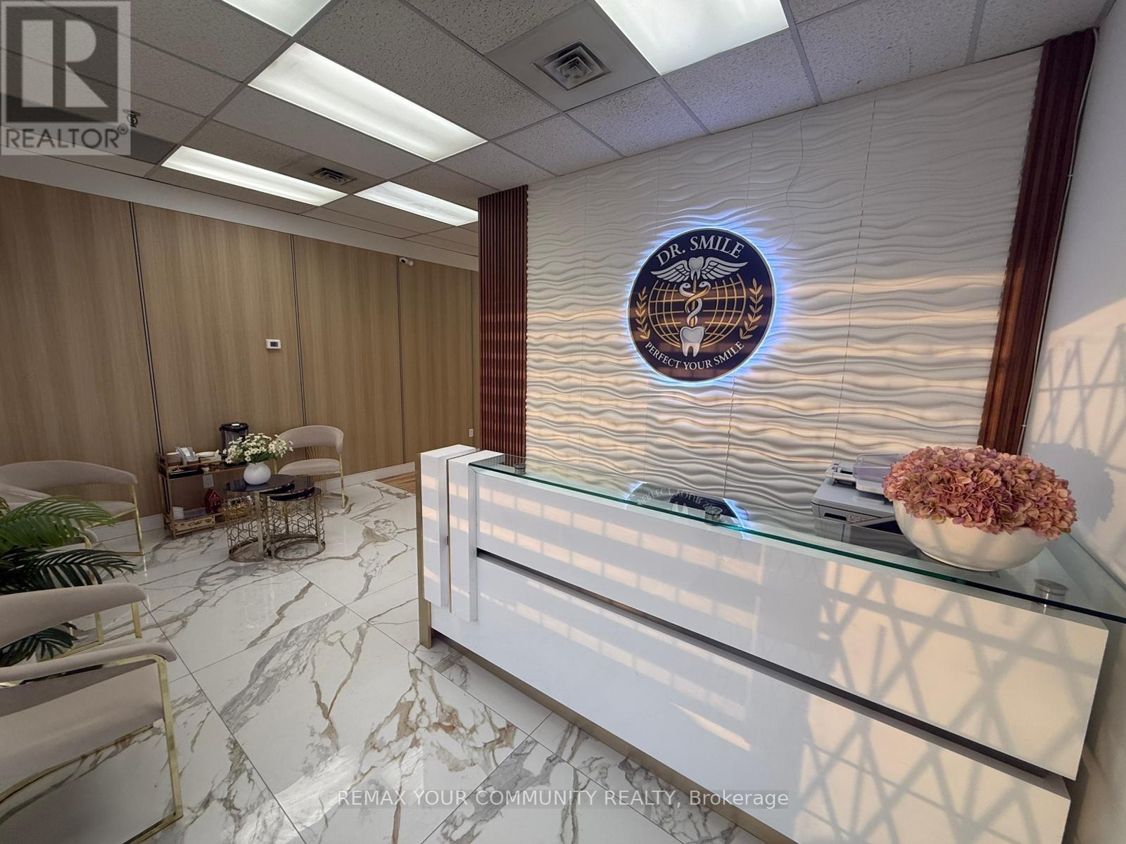 Rare find. Exceptional turnkey New 4+1 ops dental office for sale in a prime, high-demand location, fully equipped and soon to be ready for operation. This modern, professionally designed dental clinic offers a complete setup with 4+1 operatories, dental equipment, treatment rooms, sterilization area, reception and waiting lounge, private office, and all essential infrastructure for a smooth day-1 startup. As construction of the clinic is currently being completed, a buyer may have the opportunity to request reasonable modifications to renovations, or finishing details to suit their specific needs, at the buyer's cost, subject to mutual agreement. Included in the sale are existing dental equipment and leasehold improvements, featuring dental chairs, custom cabinetry, TVs, computers, sterilization cabinetry, panoramic X-ray unit, front reception desk, sec. cameras, waiting area seating, decorative wall finishes, furniture. all in place to support operation. Beautifully maintained and move-in ready, this is an outstanding opportunity for dentists, specialists, or investors seeking a fully functional, ready-to-operate dental practice. Excellent lease in place. A new lease may be arranged for a qualified buyer. Asset sale only. Seller will assist with transition to help ensure a seamless handover. An ideal opportunity for a dentist looking to establish or expand in a sought-after market. Don't miss this rare offering.Lots of Free Visitors parking. Buyer has the option to purchase in AS IS condition (current unfinished condition) at discounted price to be negotiated. (id:43681)
