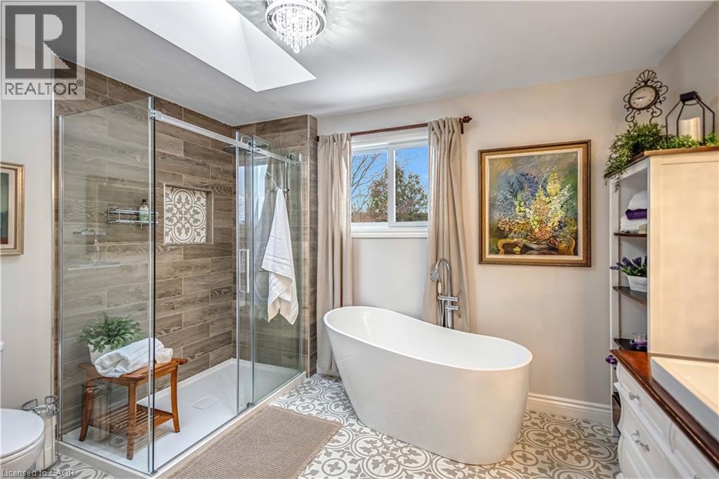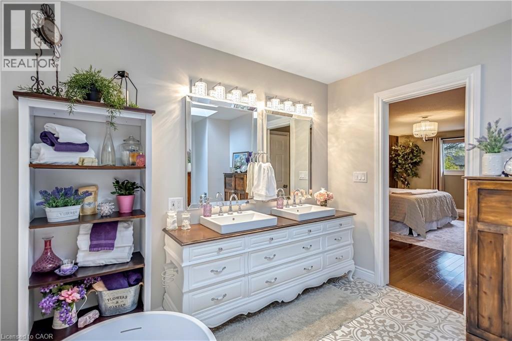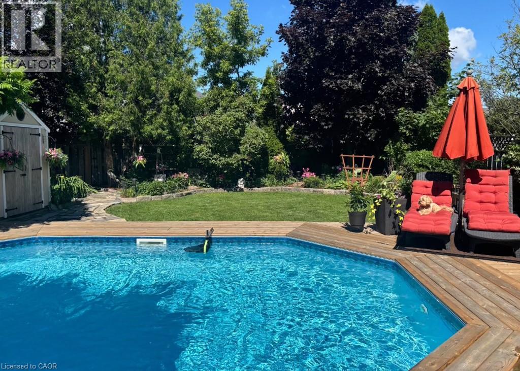 Welcome to 74 Josephine Drive - an exceptional 2-storey home that perfectly blends elegance, comfort, and modern updates, all set in a sought-after Hamilton neighbourhood. Upstairs, you'll find three spacious bedrooms, highlighted by a beautifully designed primary retreat featuring a large walk-in closet and a spa-inspired ensuite. This luxurious bathroom showcases a glass walk-in shower, deep soaker tub, custom double vanity, and a skylight that fills the space with natural light. The additional bedrooms are generously sized and share a well-appointed full bathroom, ideal for family living. The main level offers an inviting and functional layout with expansive principal rooms, including a bright living room, formal dining room, and a warm, welcoming family room with a gas fireplace. The open-concept kitchen is both stylish and practical, complete with updated appliances and plenty of space for entertaining. Rich hardwood flooring runs throughout, while oversized windows flood the home with natural light. A large main floor laundry room adds everyday convenience. Thoughtfully maintained and updated, this home features a newer furnace (2016), A/C (2020), tankless hot water system (2026), most windows replaced (2022), as well as a new deck and driveway (2024). Step outside to your own private backyard oasis - a true highlight of the home. Enjoy summer days by the pool, relax under the covered awning, or entertain on the expansive deck surrounded by mature landscaping and a generous green space, all offering exceptional privacy. Located close to top-rated schools, parks, shopping, and convenient highway access, this home offers the perfect balance of lifestyle and location. A rare opportunity- don't miss your chance to call this one home. (id:43681)