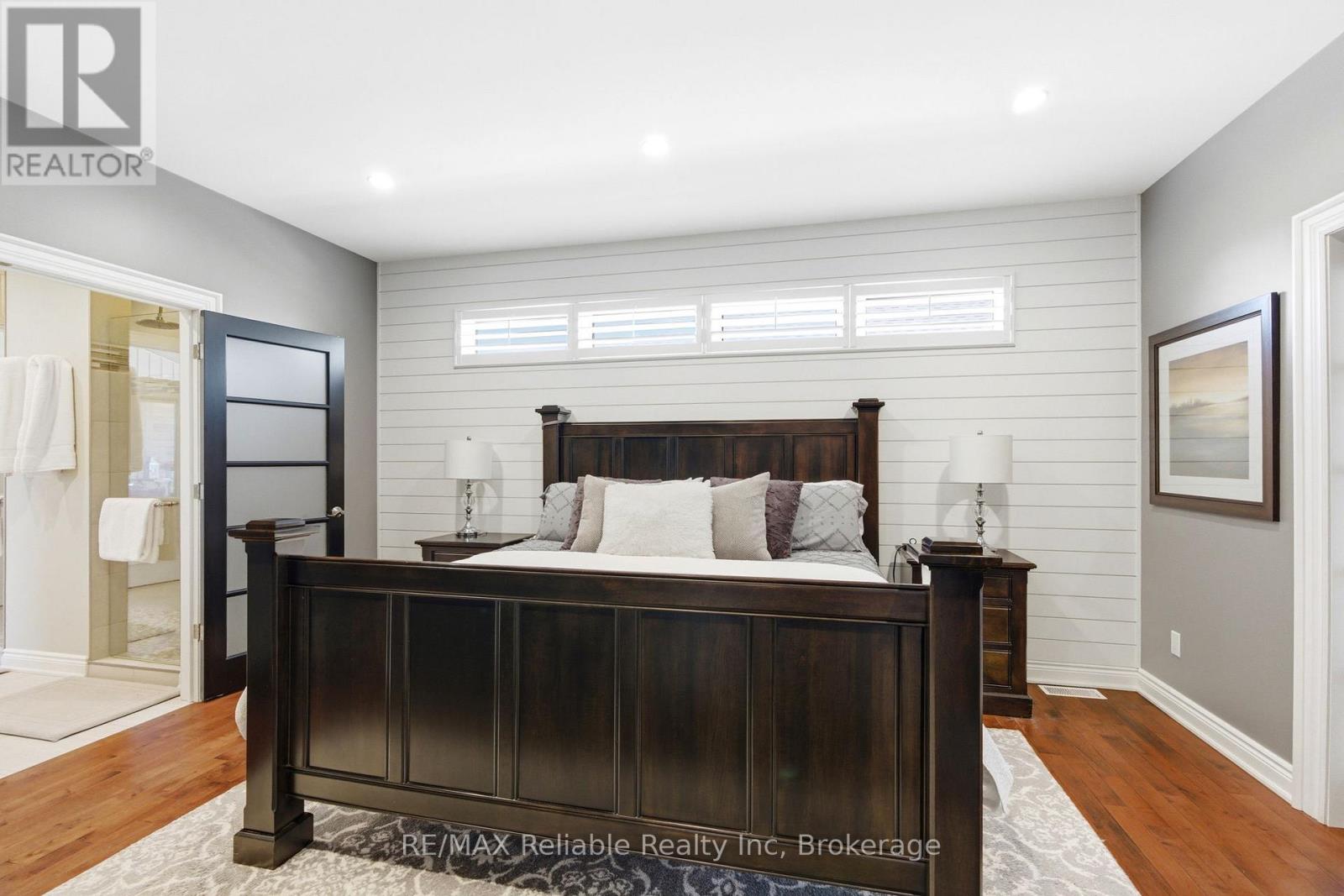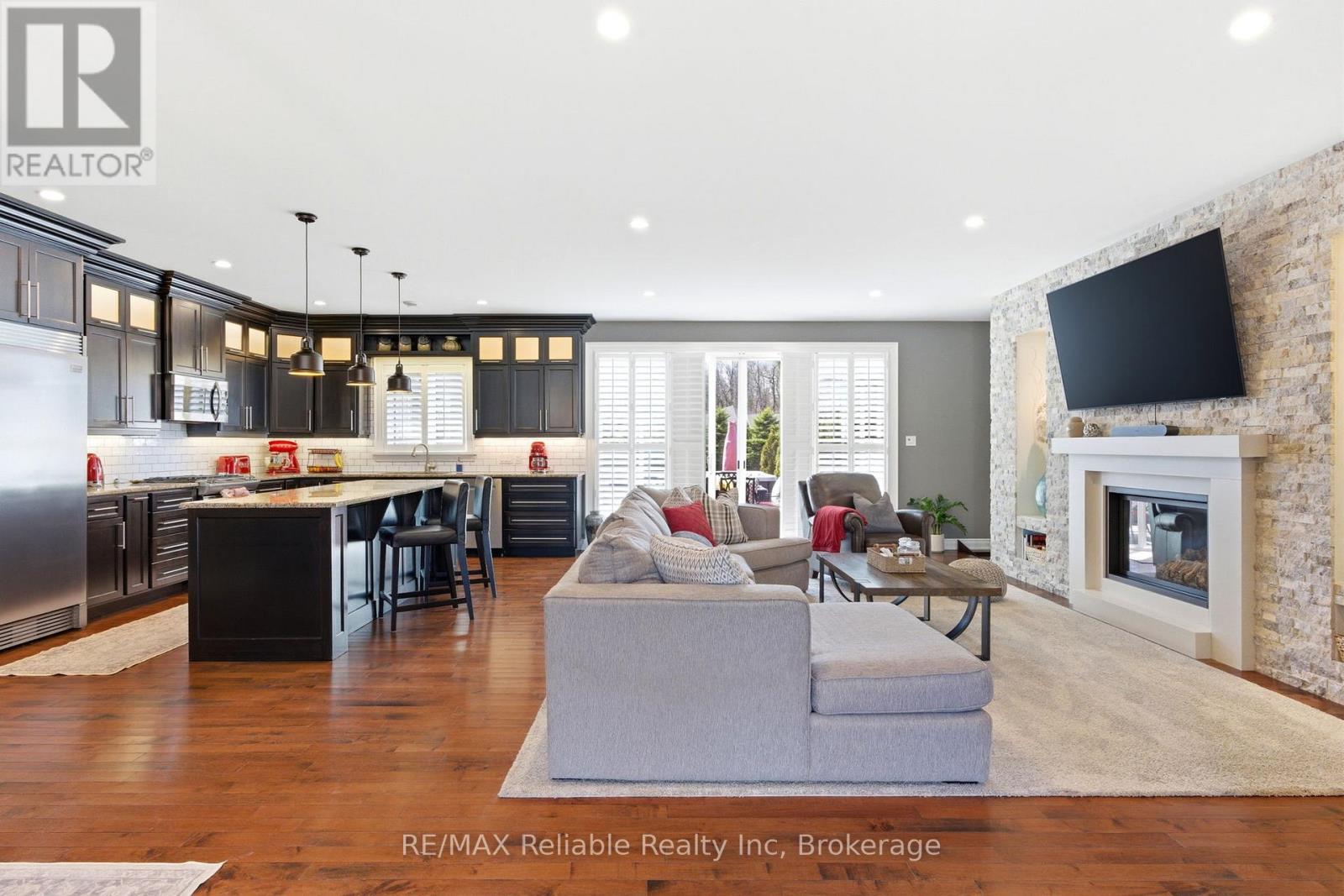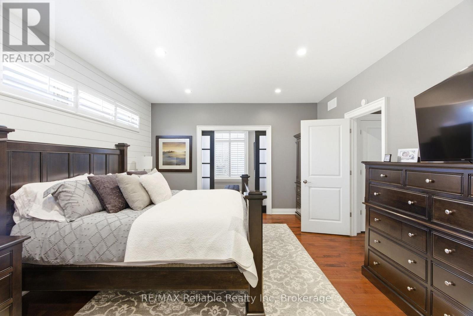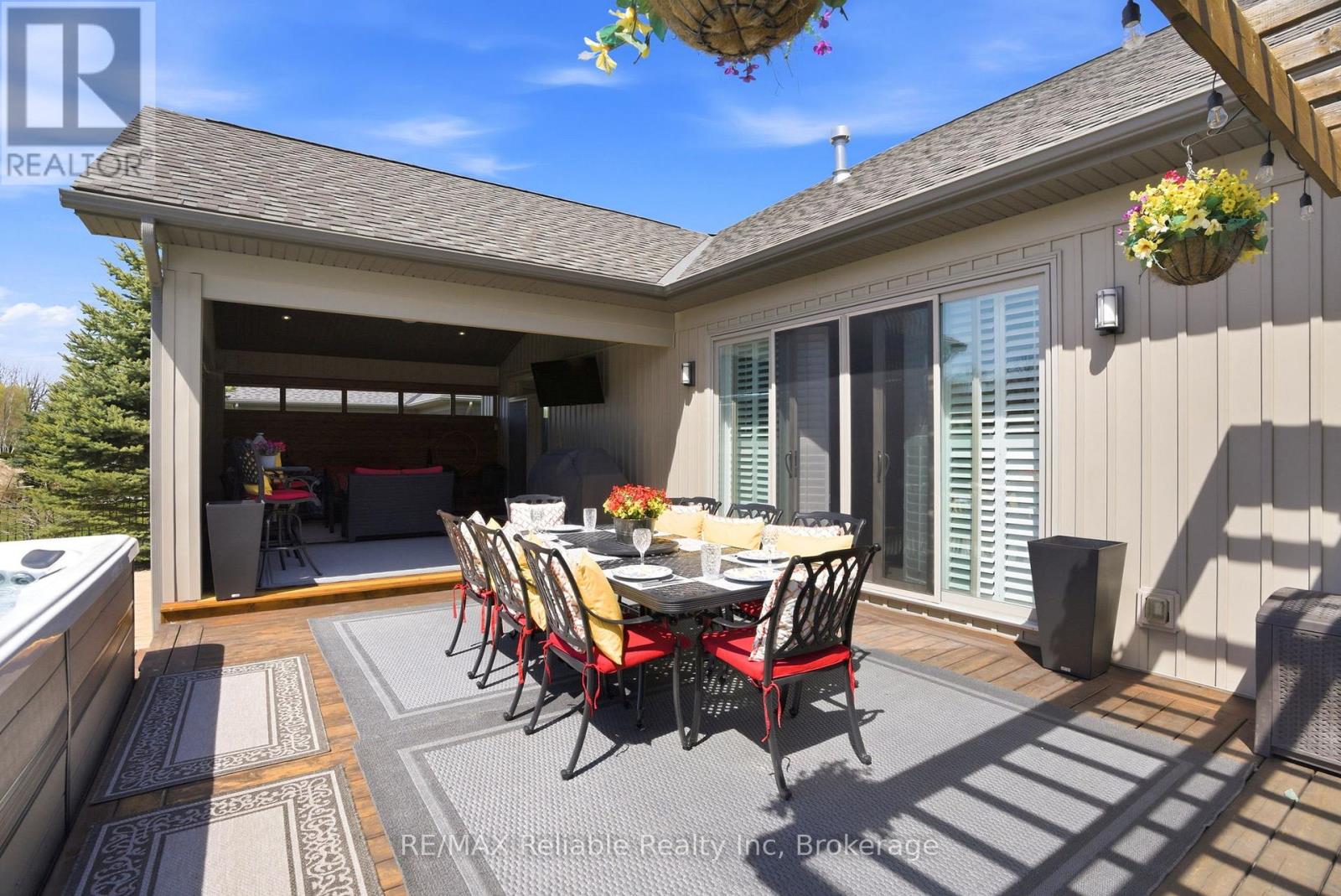 ABSOLUTELY STUNNING HOME LOCATED BETWEEN BAYFIELD & GRAND BEND! Nestled in a desirable lakeside subdivision, this exceptional 2013-built home offers approximatelly 2000 sq. ft. of beautifully designed main floor living space. Featuring a practical open-concept layout with hardwood flooring, nine-foot ceilings, and California shutters throughout, this home blends comfort and style seamlessly.The stunning kitchen is a chef's dream with abundant cabinetry, granite countertops, a large island, and oversized stainless steel appliances. The cozy dining area is perfect for entertaining and flows into the inviting living room, complete with a gas fireplace and terrace doors leading to the backyard.The spacious primary suite is a true retreat, offering a large walk-in closet, luxurious ensuite, and access to a private covered deck. The main floor also includes (2) bathrooms plus a generous laundry room with direct access to the garage.The fully finished lower level features in-floor heating, a custom bar area, expansive family and games room with pool table, two additional bedrooms, a bathroom, and an exercise room. Additional features include natural gas heating, central air, central vacuum, fibre internet, municipal water, municipal road access, and a natural gas standby generator.The charming stone exterior is complemented by impeccable landscaping with mature trees, black fencing, an interlock driveway, covered front porch, and rear decking ideal for outdoor entertaining. An attached double garage plus "man-cave" area for your collector cars & toys. Enjoy a short walk through the woods to a wide sandy beach & some of the best sunsets in the world. Short drive to Bayfield's shops, restaurants, golf courses, wineries, and craft breweries. High standards and modern luxury living near the beach! (id:43681)