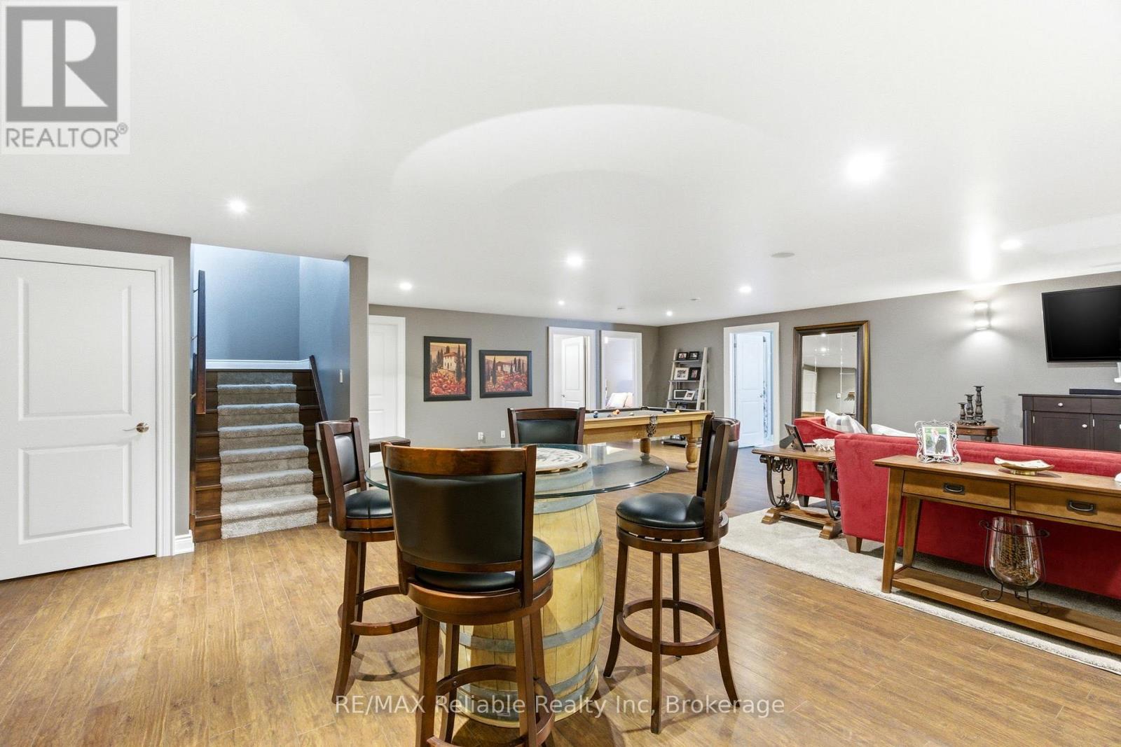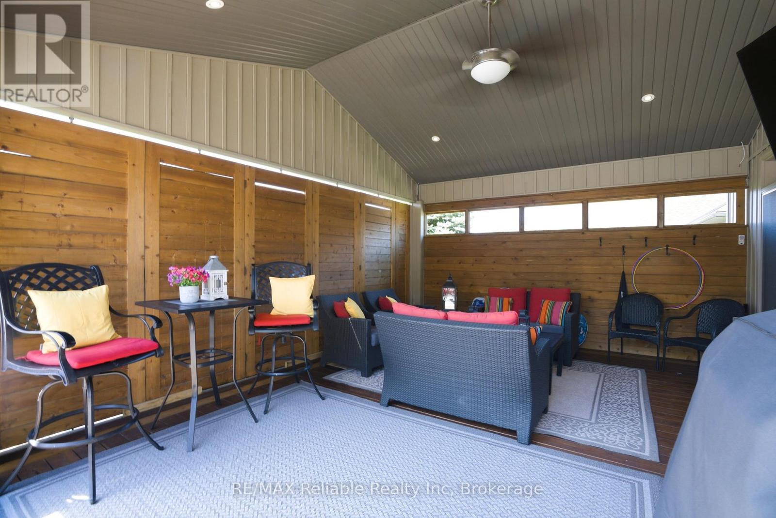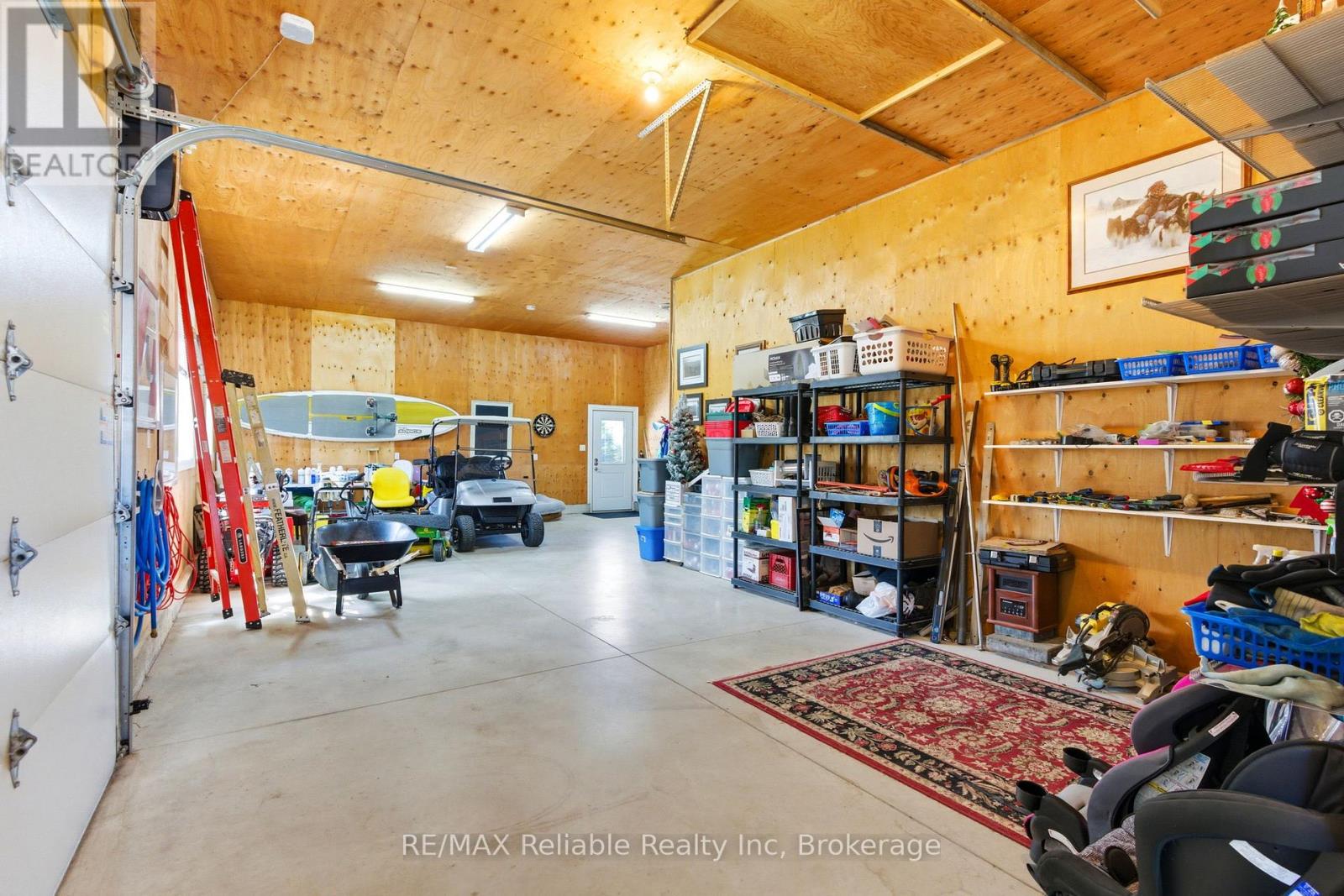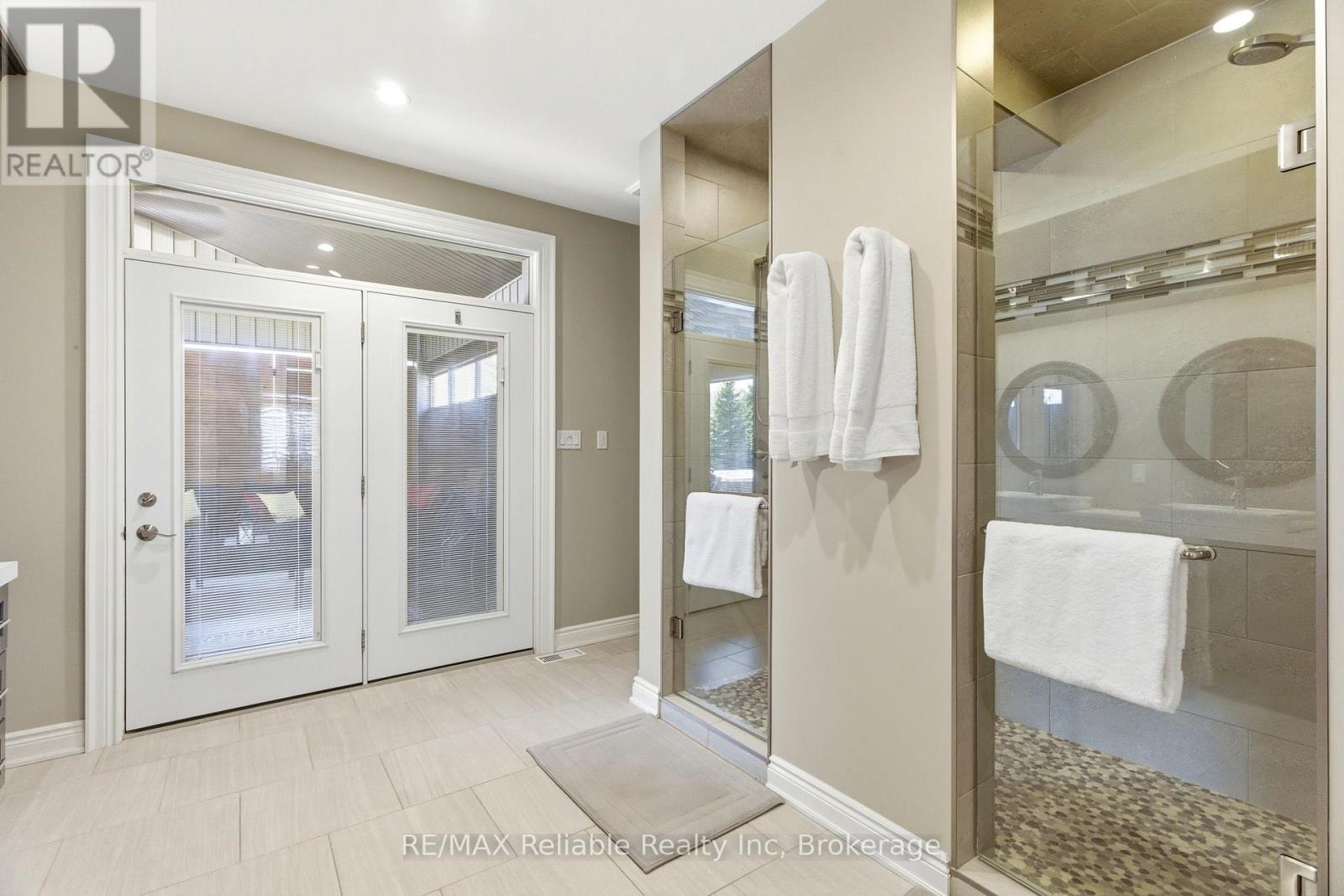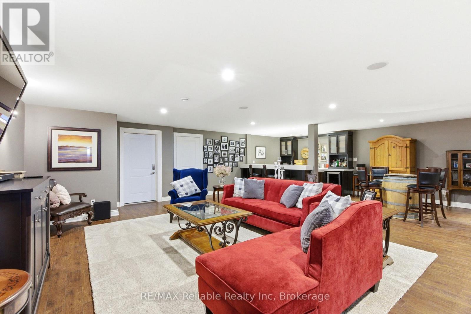 ABSOLUTELY STUNNING HOME LOCATED BETWEEN BAYFIELD & GRAND BEND! Nestled in a desirable lakeside subdivision, this exceptional 2013-built home offers approximatelly 2000 sq. ft. of beautifully designed main floor living space. Featuring a practical open-concept layout with hardwood flooring, nine-foot ceilings, and California shutters throughout, this home blends comfort and style seamlessly.The stunning kitchen is a chef's dream with abundant cabinetry, granite countertops, a large island, and oversized stainless steel appliances. The cozy dining area is perfect for entertaining and flows into the inviting living room, complete with a gas fireplace and terrace doors leading to the backyard.The spacious primary suite is a true retreat, offering a large walk-in closet, luxurious ensuite, and access to a private covered deck. The main floor also includes (2) bathrooms plus a generous laundry room with direct access to the garage.The fully finished lower level features in-floor heating, a custom bar area, expansive family and games room with pool table, two additional bedrooms, a bathroom, and an exercise room. Additional features include natural gas heating, central air, central vacuum, fibre internet, municipal water, municipal road access, and a natural gas standby generator.The charming stone exterior is complemented by impeccable landscaping with mature trees, black fencing, an interlock driveway, covered front porch, and rear decking ideal for outdoor entertaining. An attached double garage plus "man-cave" area for your collector cars & toys. Enjoy a short walk through the woods to a wide sandy beach & some of the best sunsets in the world. Short drive to Bayfield's shops, restaurants, golf courses, wineries, and craft breweries. High standards and modern luxury living near the beach! (id:43681)