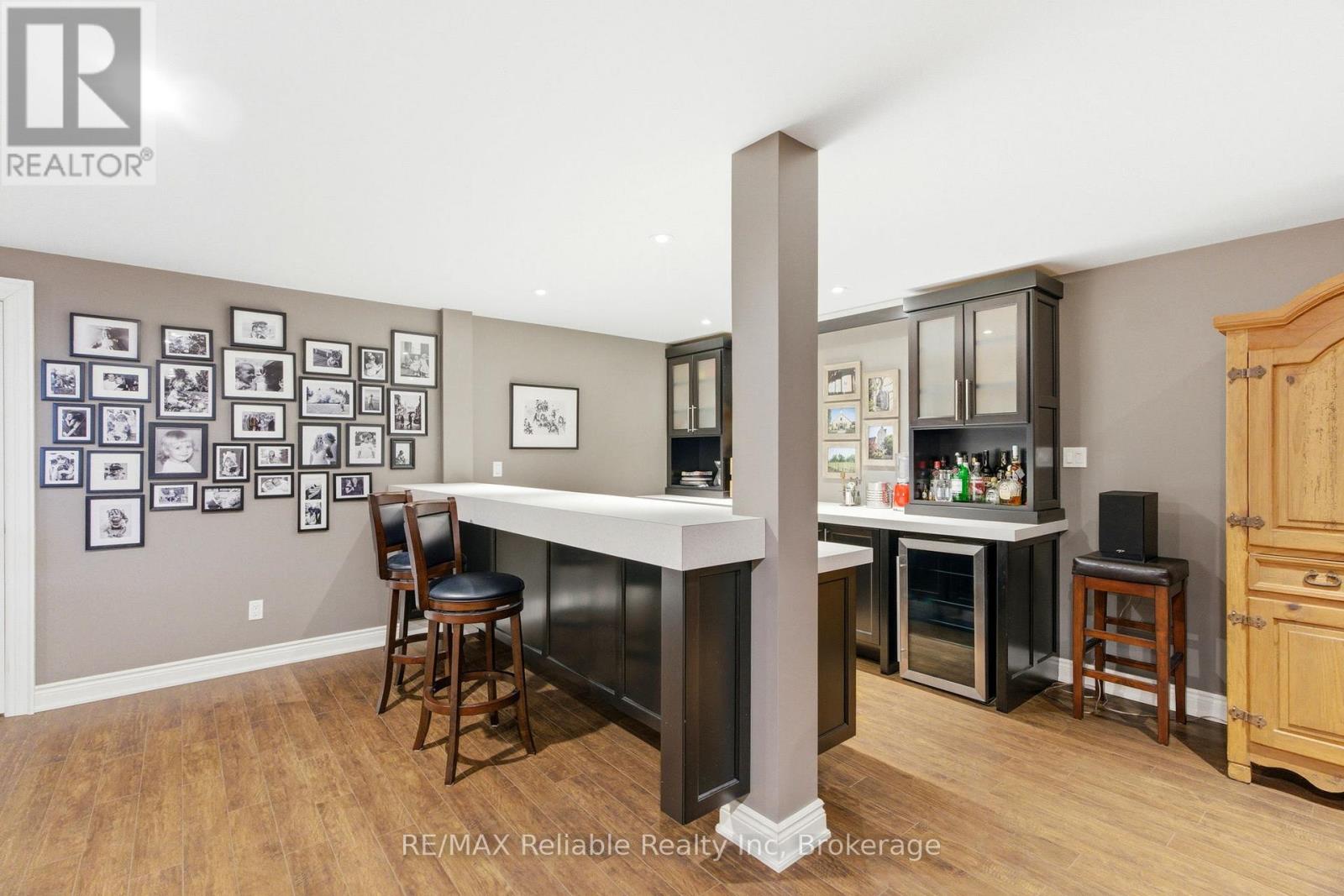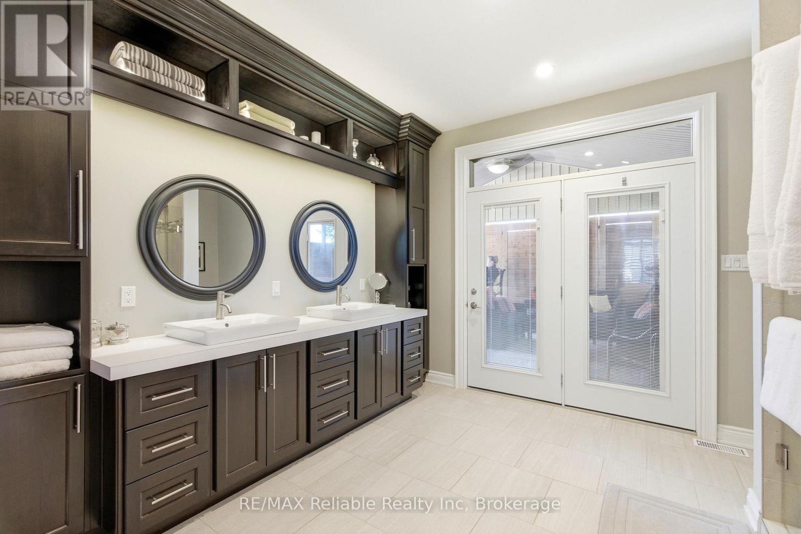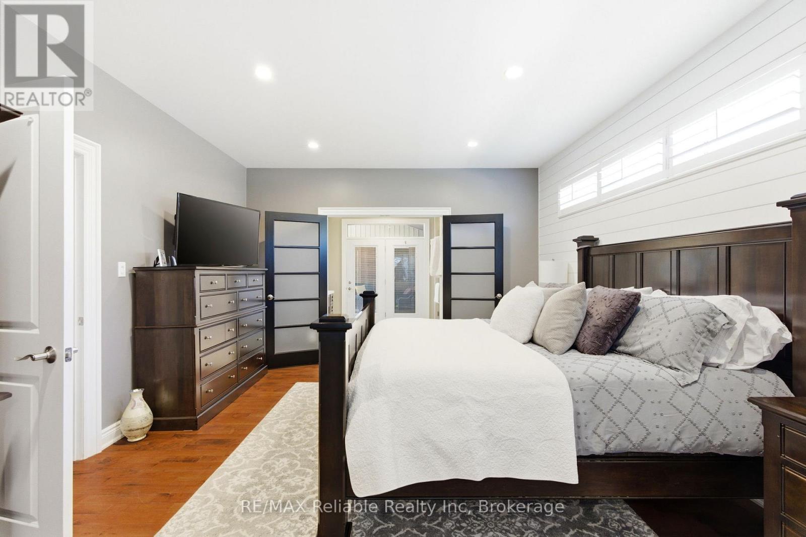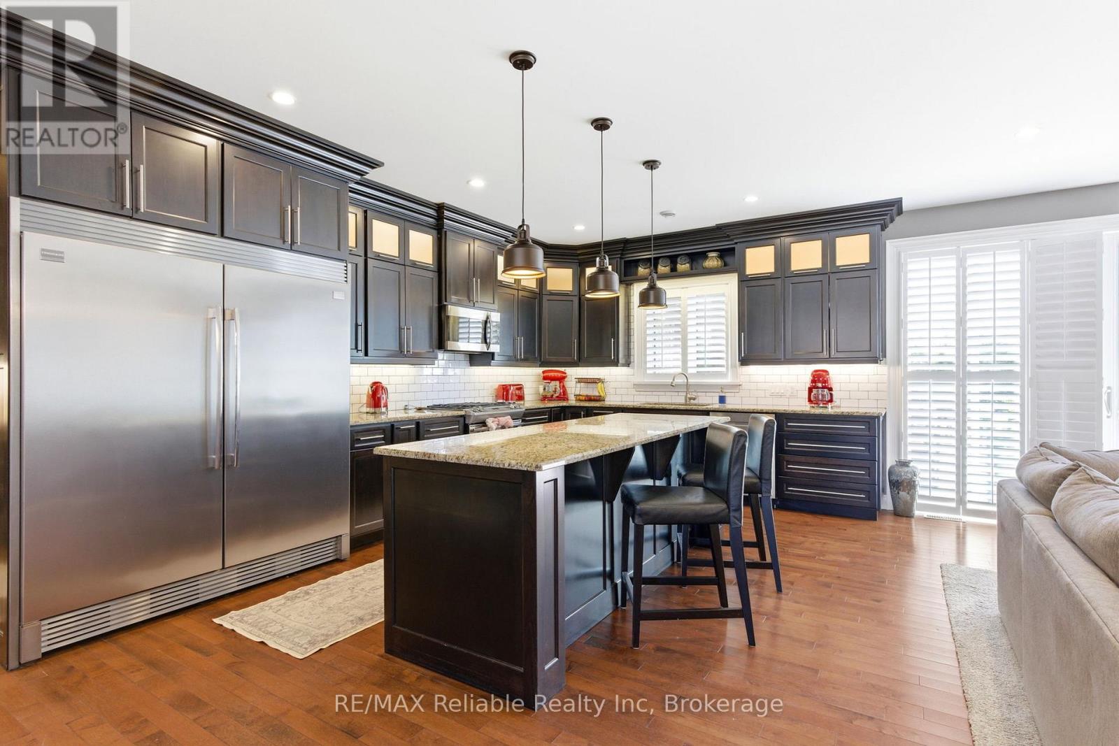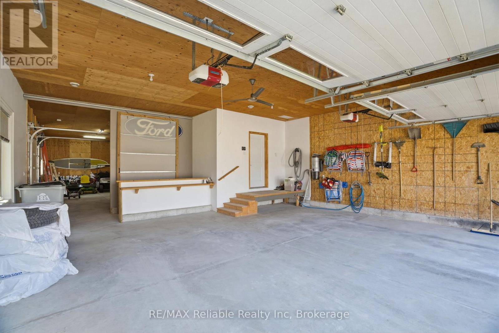 ABSOLUTELY STUNNING HOME LOCATED BETWEEN BAYFIELD & GRAND BEND! Nestled in a desirable lakeside subdivision, this exceptional 2013-built home offers approximatelly 2000 sq. ft. of beautifully designed main floor living space. Featuring a practical open-concept layout with hardwood flooring, nine-foot ceilings, and California shutters throughout, this home blends comfort and style seamlessly.The stunning kitchen is a chef's dream with abundant cabinetry, granite countertops, a large island, and oversized stainless steel appliances. The cozy dining area is perfect for entertaining and flows into the inviting living room, complete with a gas fireplace and terrace doors leading to the backyard.The spacious primary suite is a true retreat, offering a large walk-in closet, luxurious ensuite, and access to a private covered deck. The main floor also includes (2) bathrooms plus a generous laundry room with direct access to the garage.The fully finished lower level features in-floor heating, a custom bar area, expansive family and games room with pool table, two additional bedrooms, a bathroom, and an exercise room. Additional features include natural gas heating, central air, central vacuum, fibre internet, municipal water, municipal road access, and a natural gas standby generator.The charming stone exterior is complemented by impeccable landscaping with mature trees, black fencing, an interlock driveway, covered front porch, and rear decking ideal for outdoor entertaining. An attached double garage plus "man-cave" area for your collector cars & toys. Enjoy a short walk through the woods to a wide sandy beach & some of the best sunsets in the world. Short drive to Bayfield's shops, restaurants, golf courses, wineries, and craft breweries. High standards and modern luxury living near the beach! (id:43681)