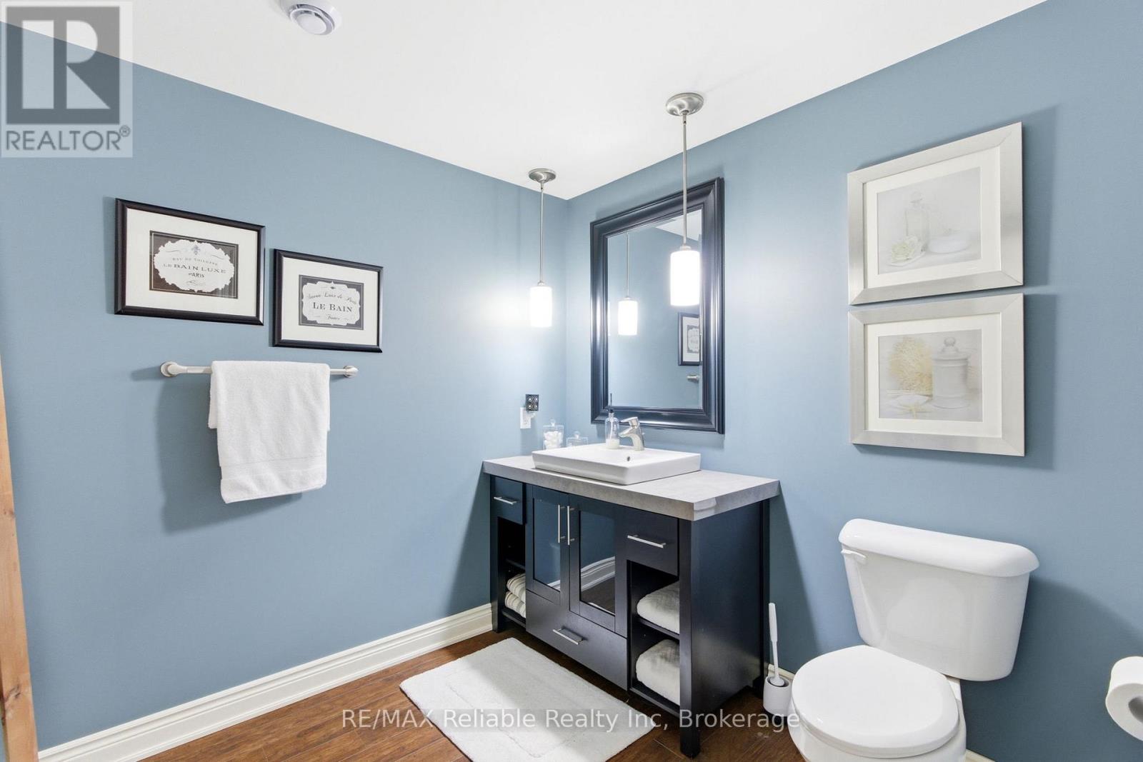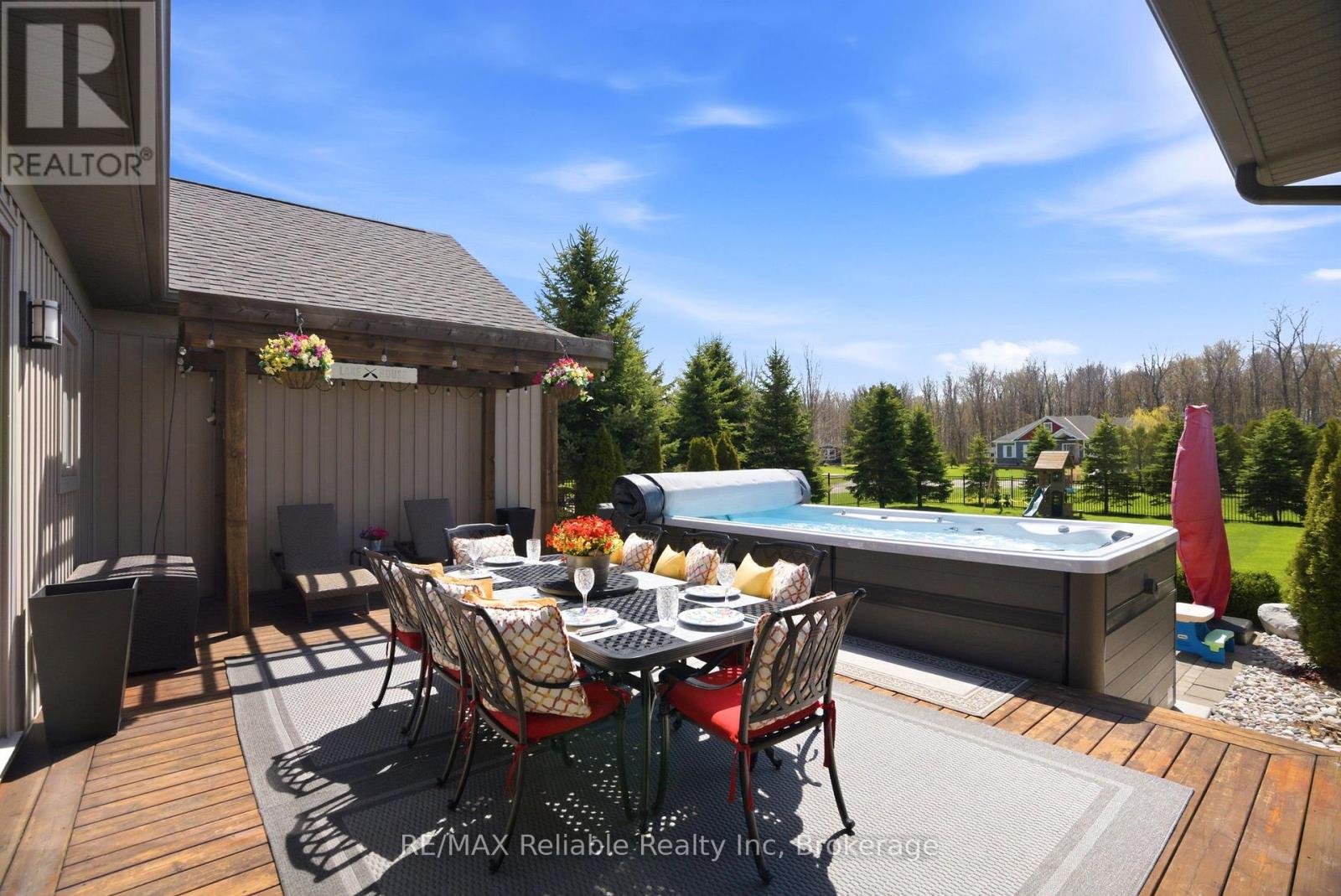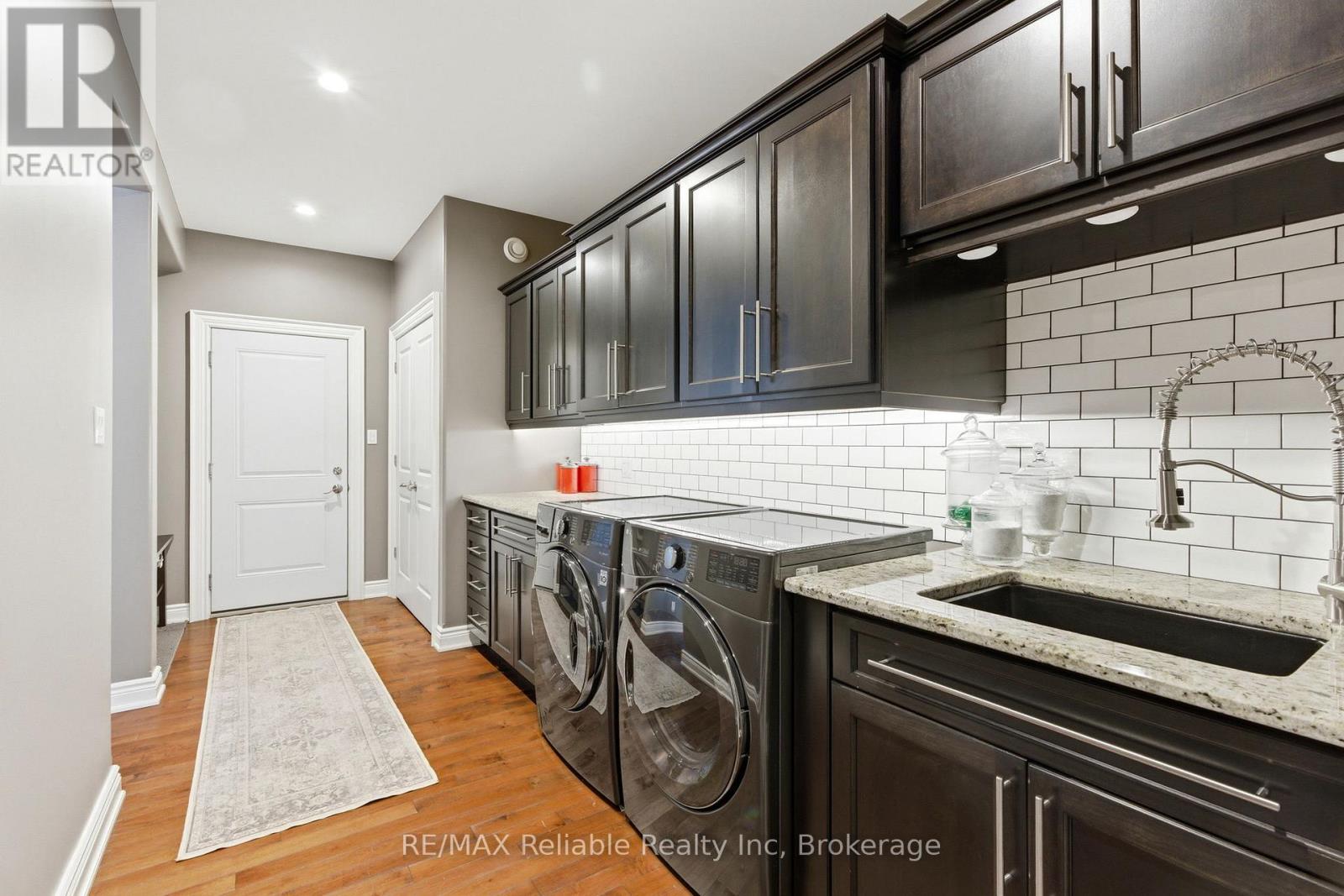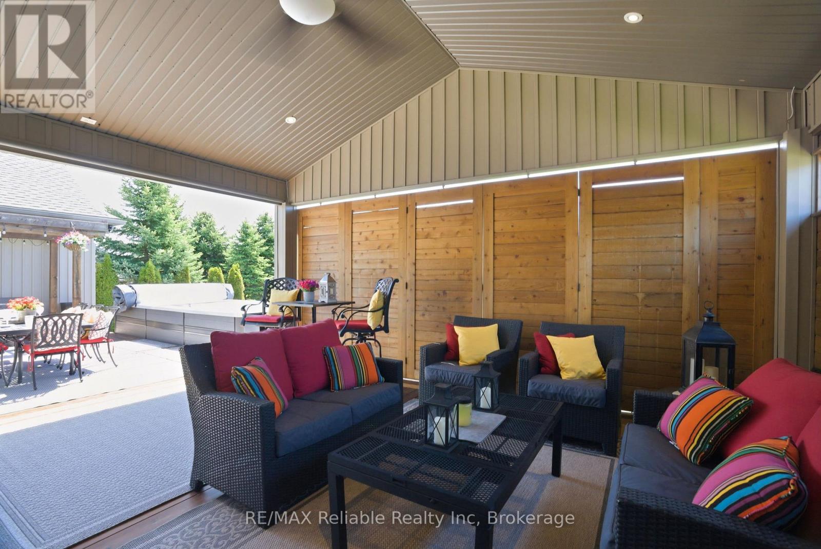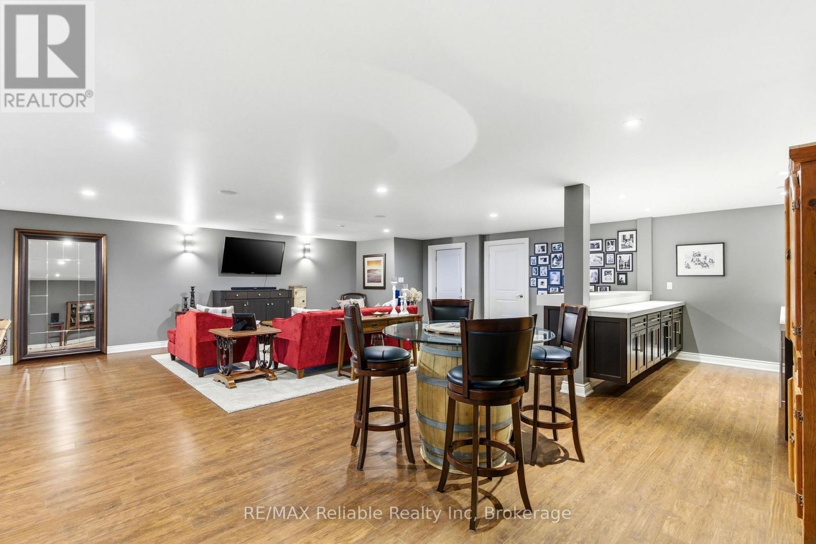 ABSOLUTELY STUNNING HOME LOCATED BETWEEN BAYFIELD & GRAND BEND! Nestled in a desirable lakeside subdivision, this exceptional 2013-built home offers approximatelly 2000 sq. ft. of beautifully designed main floor living space. Featuring a practical open-concept layout with hardwood flooring, nine-foot ceilings, and California shutters throughout, this home blends comfort and style seamlessly.The stunning kitchen is a chef's dream with abundant cabinetry, granite countertops, a large island, and oversized stainless steel appliances. The cozy dining area is perfect for entertaining and flows into the inviting living room, complete with a gas fireplace and terrace doors leading to the backyard.The spacious primary suite is a true retreat, offering a large walk-in closet, luxurious ensuite, and access to a private covered deck. The main floor also includes (2) bathrooms plus a generous laundry room with direct access to the garage.The fully finished lower level features in-floor heating, a custom bar area, expansive family and games room with pool table, two additional bedrooms, a bathroom, and an exercise room. Additional features include natural gas heating, central air, central vacuum, fibre internet, municipal water, municipal road access, and a natural gas standby generator.The charming stone exterior is complemented by impeccable landscaping with mature trees, black fencing, an interlock driveway, covered front porch, and rear decking ideal for outdoor entertaining. An attached double garage plus "man-cave" area for your collector cars & toys. Enjoy a short walk through the woods to a wide sandy beach & some of the best sunsets in the world. Short drive to Bayfield's shops, restaurants, golf courses, wineries, and craft breweries. High standards and modern luxury living near the beach! (id:43681)