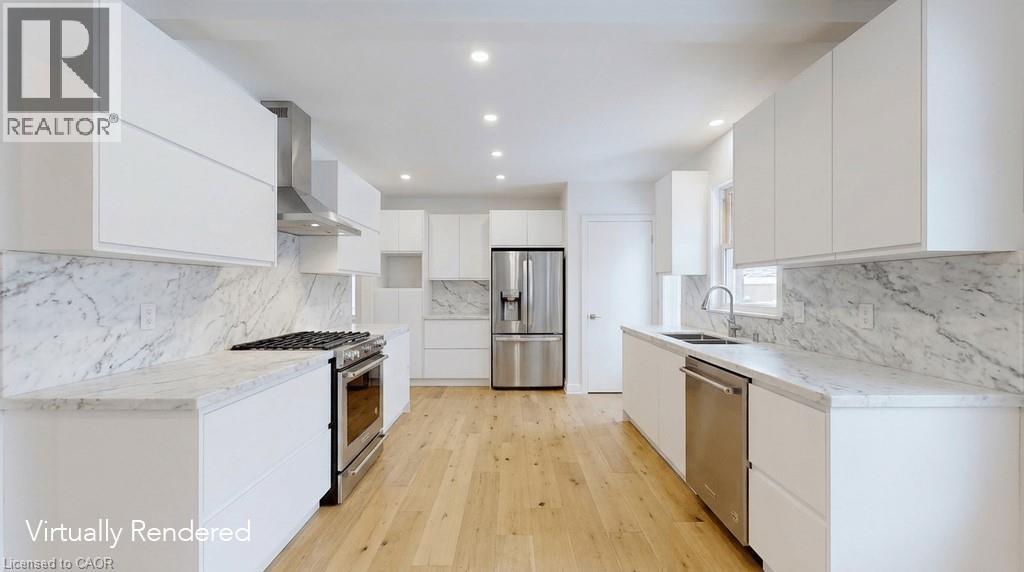 Create your dream home in the prestigious Aldershot neighbourhood! This exceptional 90x175 ft lot is nestled on one of the most sought-after streets, surrounded by luxurious custom-built homes. Located just minutes from downtown, a short stroll to the lake, this 3 bedroom, 3 bathroom bungaloft offers a rare opportunity to create or rejuvenate your ideal residence in an unbeatable location. The mainfloor features 2 bedrooms, a 4pc bathroom, large living room with wood fireplace, oversized kitchen with walkout to covered porch complemented by the bonus loft with bedroom, private 2pc ensuite and his/hers closets above the single car garage. The lower-level features multiple storage/utility rooms, large recreation room, cold room, 2pc bathroom and versatile family/exercise room with built-ins. Set back from the street, there is an abundance of parking while still providing an amazing backyard with mature trees and large workshop/outbuilding which could be restored to become the perfect space for a hobbyist. Bring your creativity and visions to recreate this existing home or start fresh with a new custom build. With its generous lot size and prime location, this property provides endless potential for builders or investors. Create your own piece of paradise and join one of the most vibrant and prestigious communities in the area! PROPERTY IS BEING SOLD AS IS WHERE IS. (id:43681)