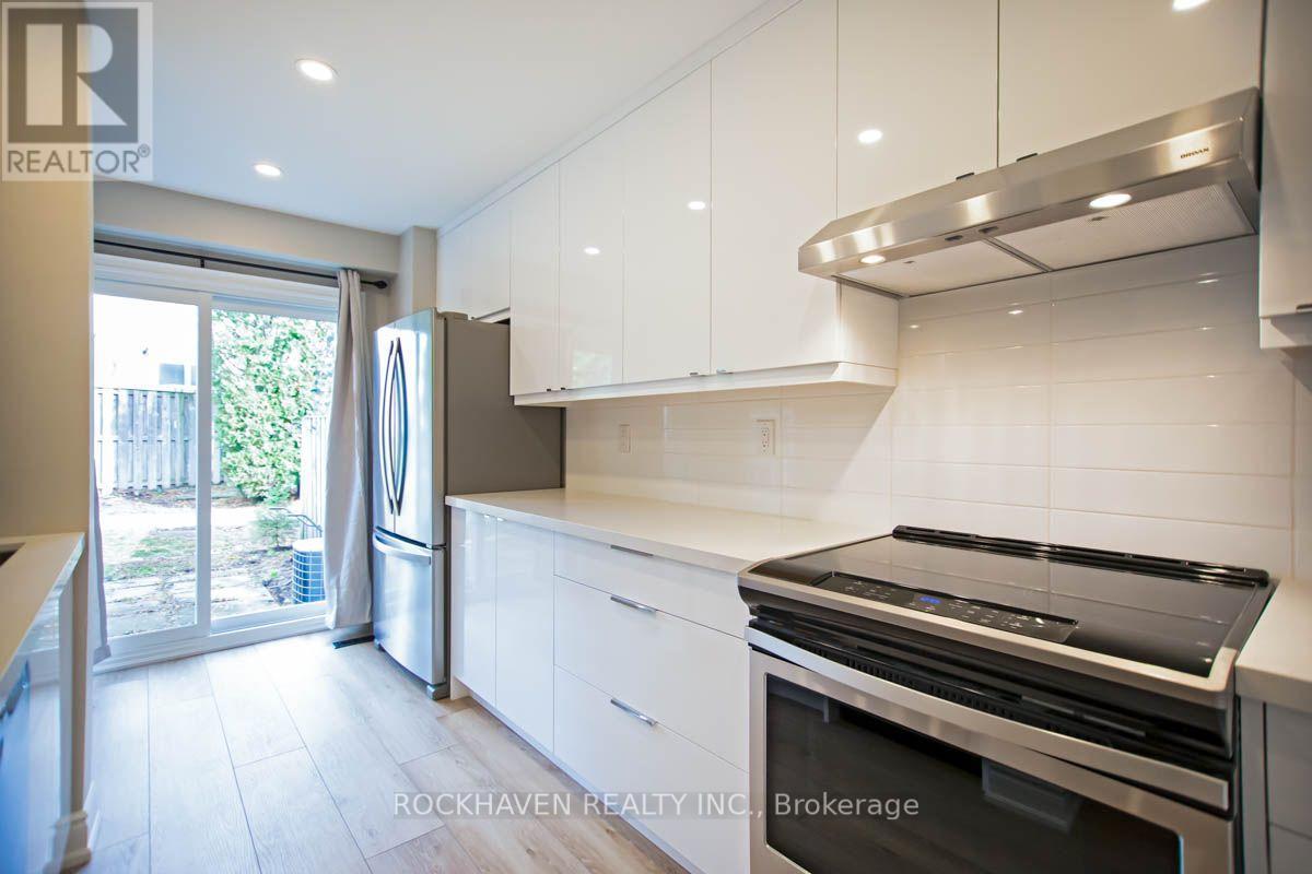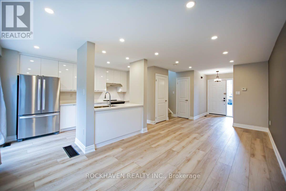 Welcome to 2350 Grand Ravine, Unit 78 - a beautifully renovated townhome in one of Oakville's most desirable neighbourhoods. This home blends modern finishes with a functional layout that truly works for everyday living. The main floor features wide plank flooring, smooth ceilings with pot lights, and a bright open-concept layout. The fully updated kitchen offers sleek white cabinetry, quartz countertops, stainless steel appliances, and a large peninsula with seating and an undermount sink - perfect for entertaining or casual family meals. The living and dining area flows seamlessly to the private backyard through sliding doors, creating an easy indoor-outdoor connection. Upstairs, you'll find well-proportioned bedrooms with updated flooring and ample closet space. The bathrooms have been stylishly renovated with clean, modern finishes. The finished basement adds valuable additional living space - ideal for a rec room, home office, gym, or guest area - along with a beautifully updated bathroom featuring a glass shower. Located in a fantastic neighbourhood close to parks, schools, shopping, transit, and major highways, this home offers both convenience and lifestyle. Move-in ready and beautifully updated throughout. (id:43681)