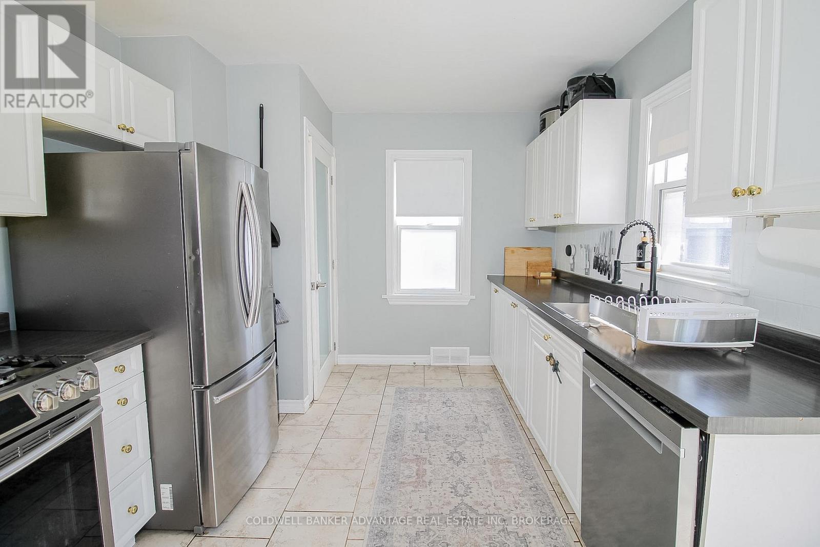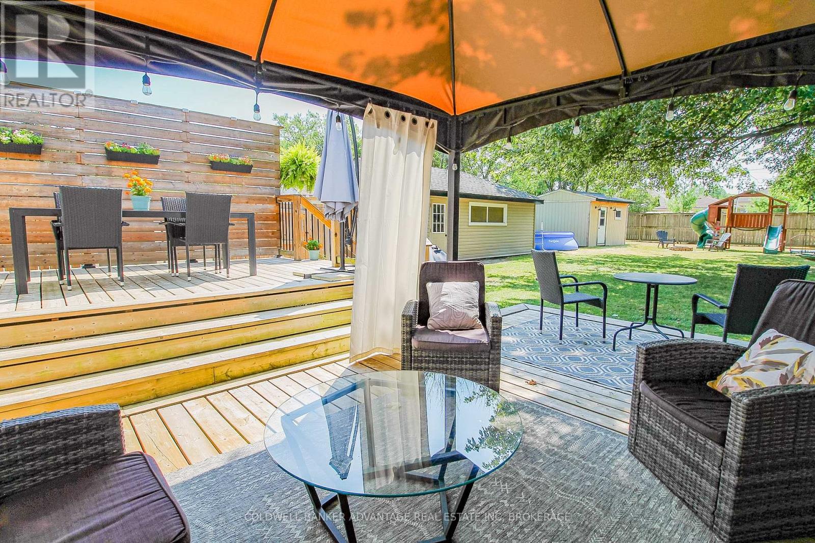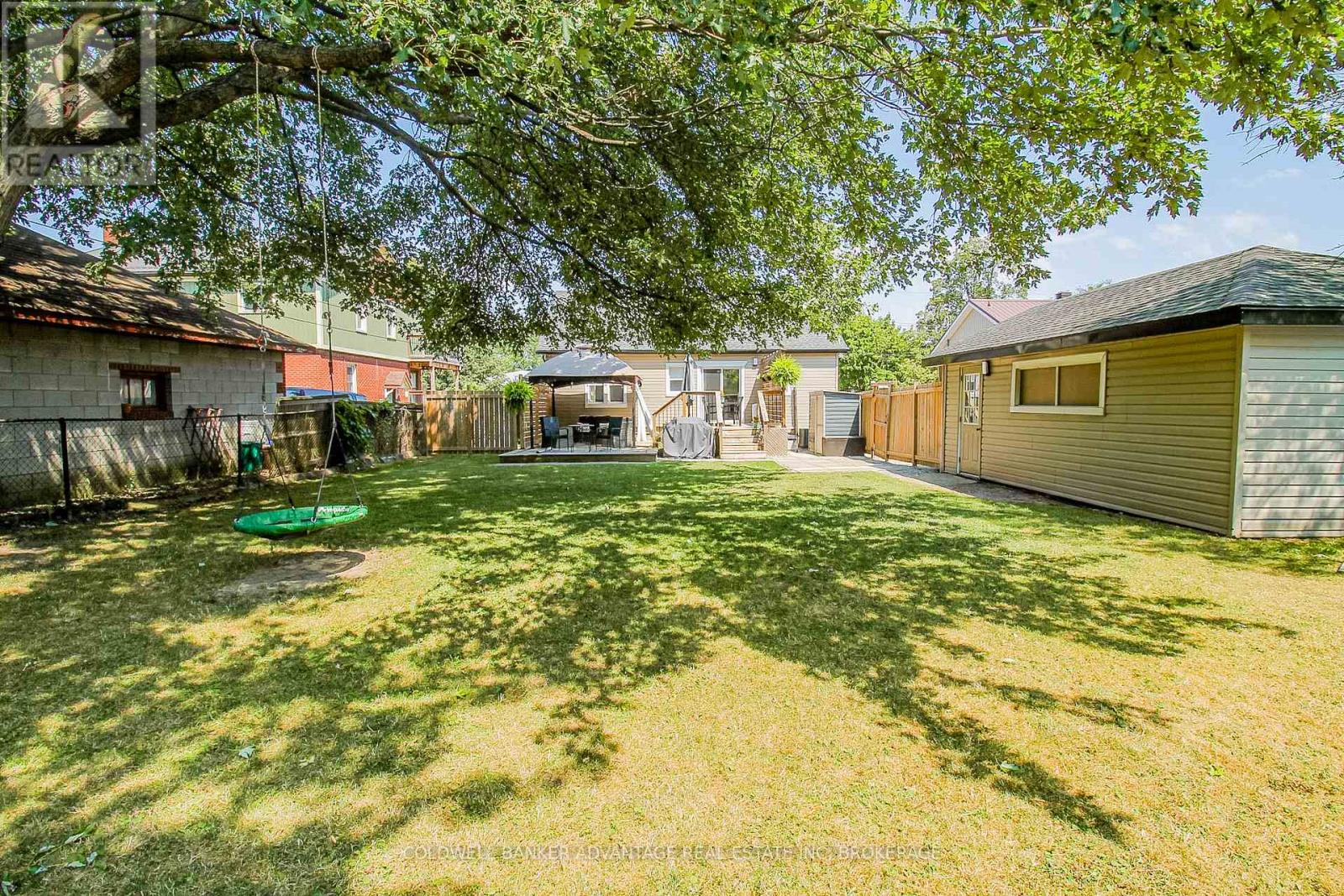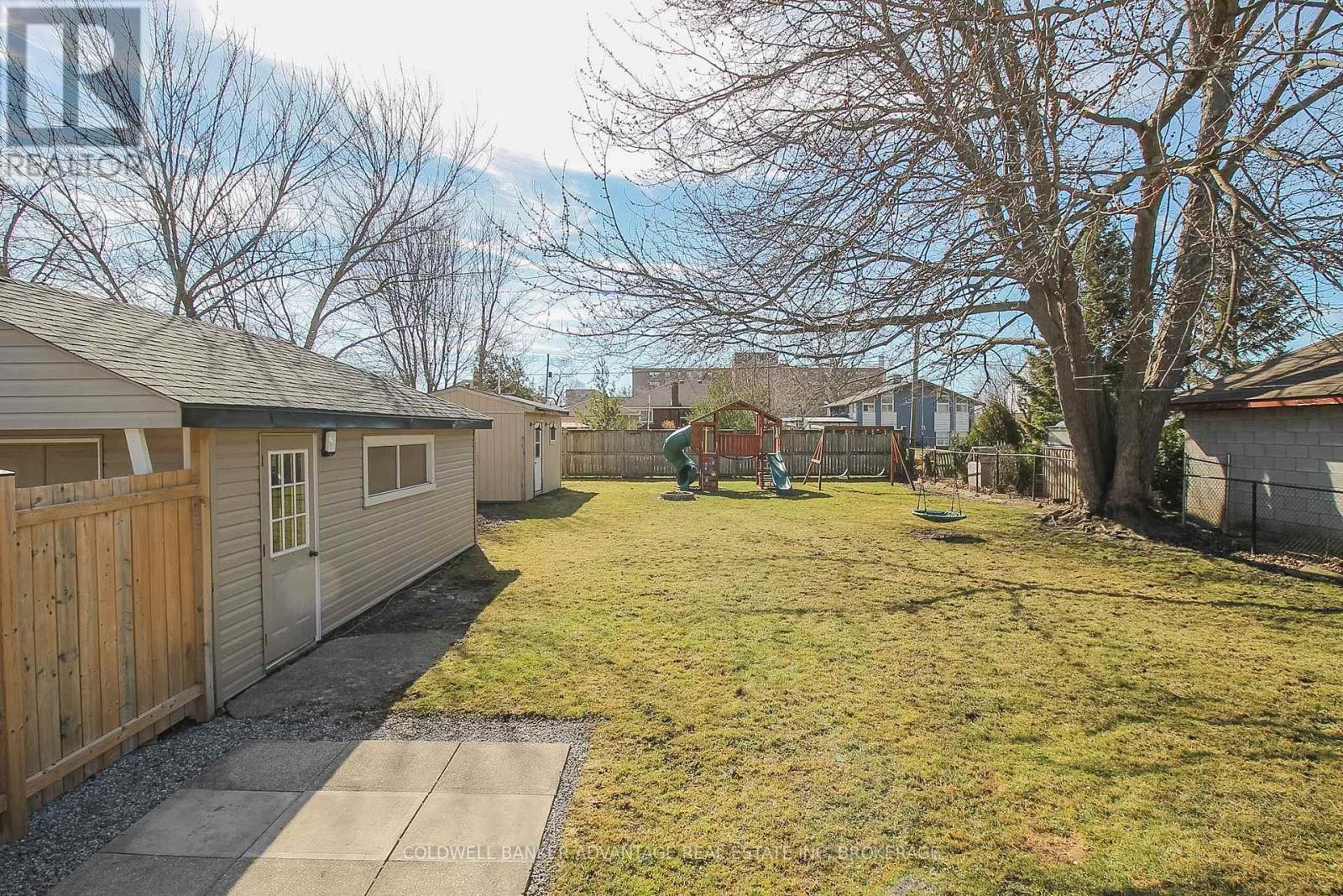 Updated bungalow with fully finished basement is MOVE-IN READY! This 2+2 bedroom, 2 bathroom, bungalow has a cozy and functional design, perfect for a couple or small family. Sitting on an oversized lot, accompanied with a detached garage, powered shed, 2-tier private back deck, playground area, all shaded from the sun by a mature maple tree. Walk through the front door to a bright living room with refinished hardwood floors. All new modern white kitchen with stainless steel applications (fridge, B/I dishwasher, gas stove, and micro-range). Patio doors lead directly to the back deck. Bonus space in the kitchen for eat-in functionality. Main floor bathroom updated as well with a beautifully tiled bathtub/shower matching the floors. The 2 bedrooms on the main floor are very large in size, feature good size windows and their own closets. Down the stairs to the basement (with separate entrance side door off the driveway) leads to a refinished family room. Bright windows and new pod-lights create a warm space for the family to gather and relax all year around. A newly renovated 3-piece bathroom for added convenience. Basement laundry room. There are 2 additional bedrooms in the basement with egress windows. Bonus cold room storage under the porch. Forced air gas furnace & central air. 100AMP breakers. Private 3 car asphalt driveway leads to a detached garage with power & remote openers. Solid concrete garage, with side door entrance in the fully fenced backyard. Bonus shed behind the garage also has power - make it your own! This property is conveniently located one block away from the Welland Hospital, Welland Library, Plymouth Public school, and the Welland Canal Walking Trails. Such a great centralized location with easy access from the highway, school bus routes and public transit. Lots of value for first time home buyers, retirees, or investors! In-law suite capability with potential for a separate basement unit. Come take a look to see for yourself! (id:43681)