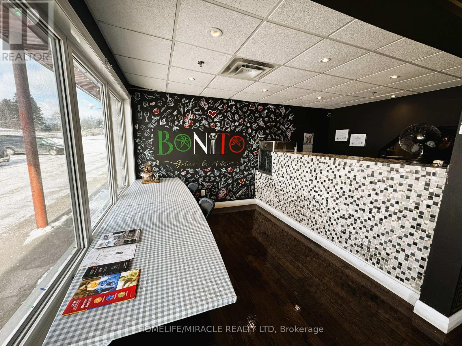 Excellent opportunity to own a fully equipped take-out food business in the growing community of Erin, Ontario. Located in a busy plaza with Tim Hortons, pharmacy, walk-in clinic, pizza and other high-traffic businesses. Surrounded by new residential subdivisions with 1,200+ homes under development and within walking distance to downtown Erin. Specializing in authentic Italian, Greek, Middle Eastern cuisine and signature pizzas. Approx. monthly sales $18,000-$22,000. Rent $1,990 + HST + TMI ($468.47). Includes all chattels, fixtures and equipment. Seller willing to assist with transition. Strong location with excellent growth potential. (id:43681)