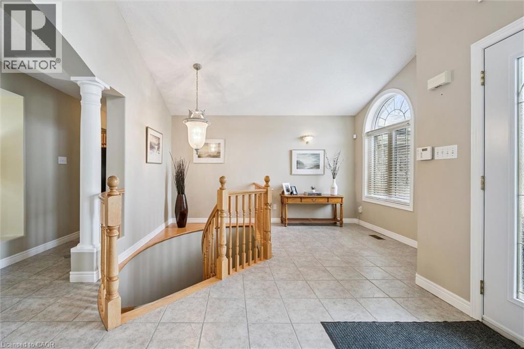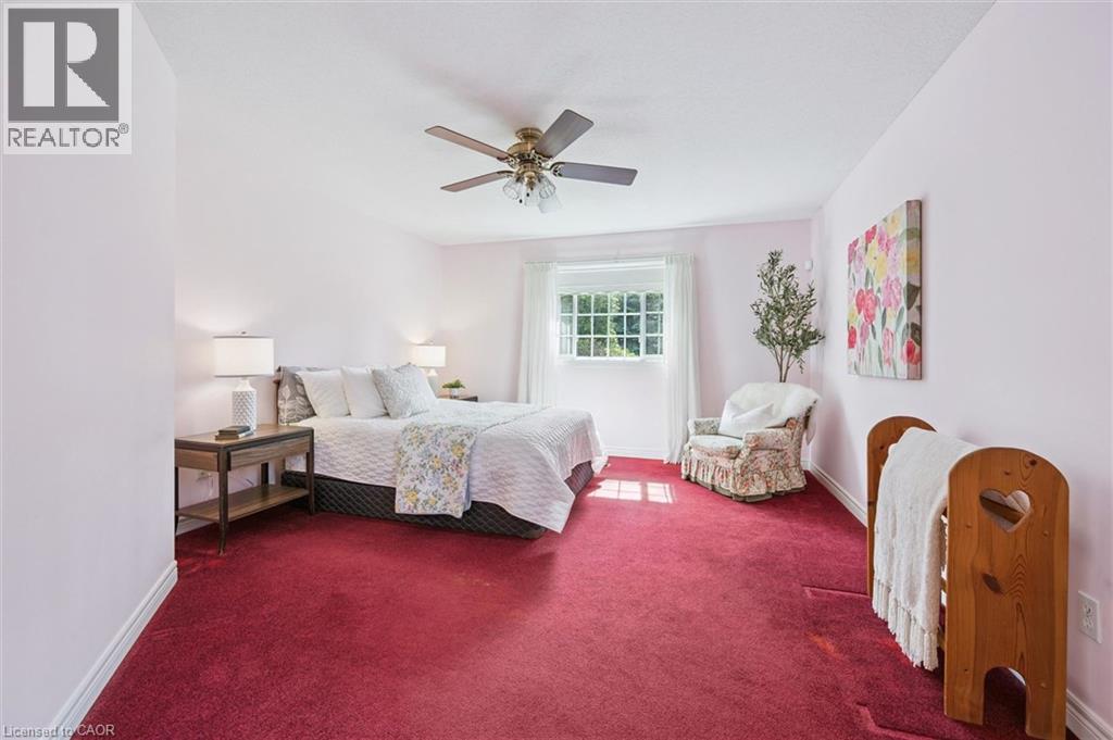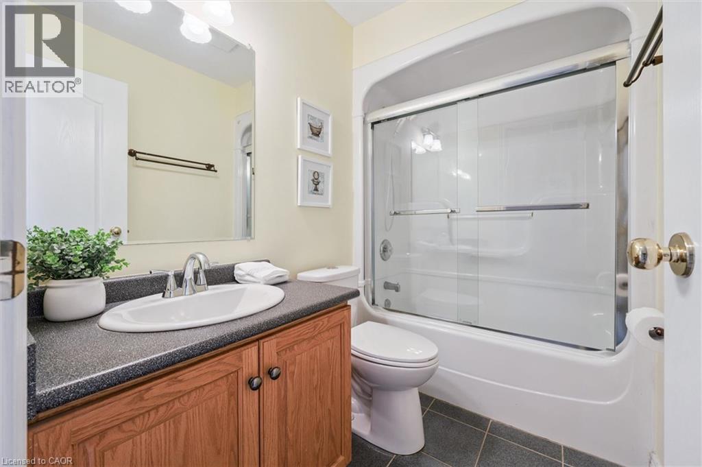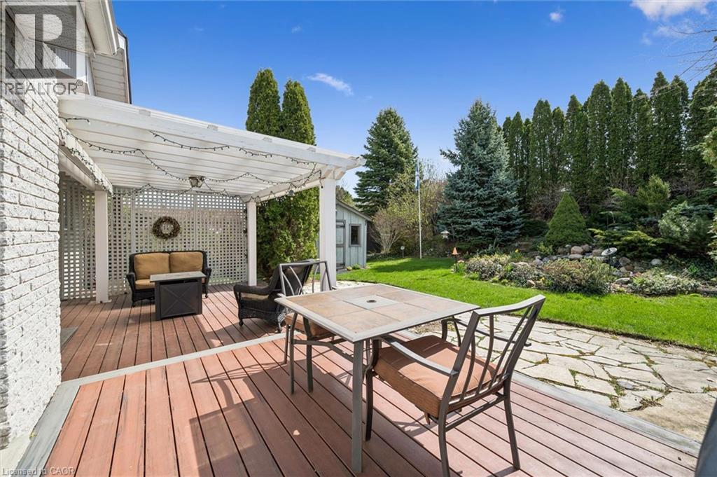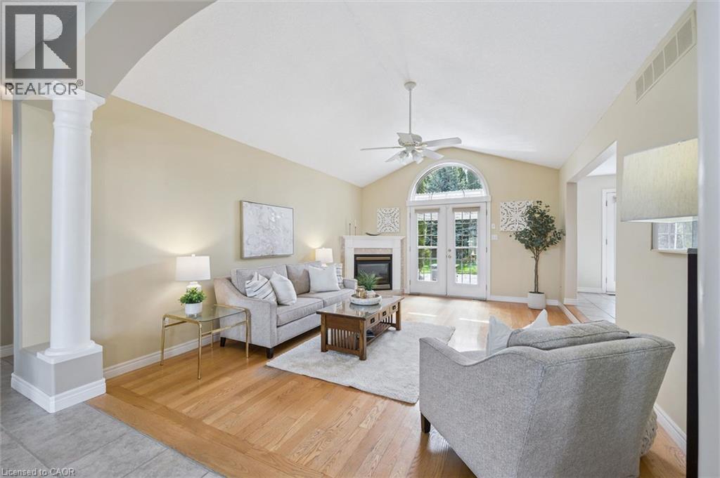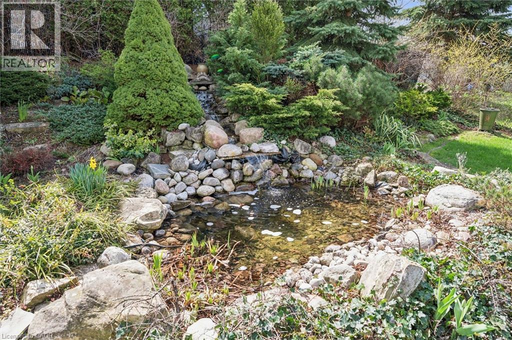 Beautifully finished bungalow offering over 2,800 sq. ft. of exceptional living space, located close to excellent schools, scenic walking trails, wonderful amenities, and just minutes to Highway 401. Situated on a large, beautifully manicured lot, this home boasts outstanding curb appeal with its stone front and welcoming presence. Step into the spacious foyer that opens into a bright and inviting great room, featuring hardwood flooring and a cozy corner gas fireplace. Garden doors create seamless indoor-outdoor living, leading to your own private backyard oasis, complete with a tranquil waterfall and pond, covered gazebo, composite decking and an additional walkout from the kitchen. The fully fenced backyard is surrounded by lush mature gardens, enhanced by a sprinkler system, offering both beauty and privacy. The main floor features a spacious, well-appointed kitchen with quartz countertops, abundant cabinetry, a bonus walk-in pantry, and a bright eat-in area perfect for family gatherings. There are three generous bedrooms on the main level, including a large primary suite with a newly renovated 4-piece ensuite and convenient laundry area in the suite. A second 4-piece bathroom completes the main level. The fully finished lower level provides incredible additional living space with a large recreation room featuring a second gas fireplace, games area, 3-piece bathroom, separate laundry area, fourth bedroom, office space that could be a 5th bedroom and plenty of storage. This exceptional home truly has it all—style, comfort, space, and an unbeatable location. A rare offering that won’t last long! (id:43681)