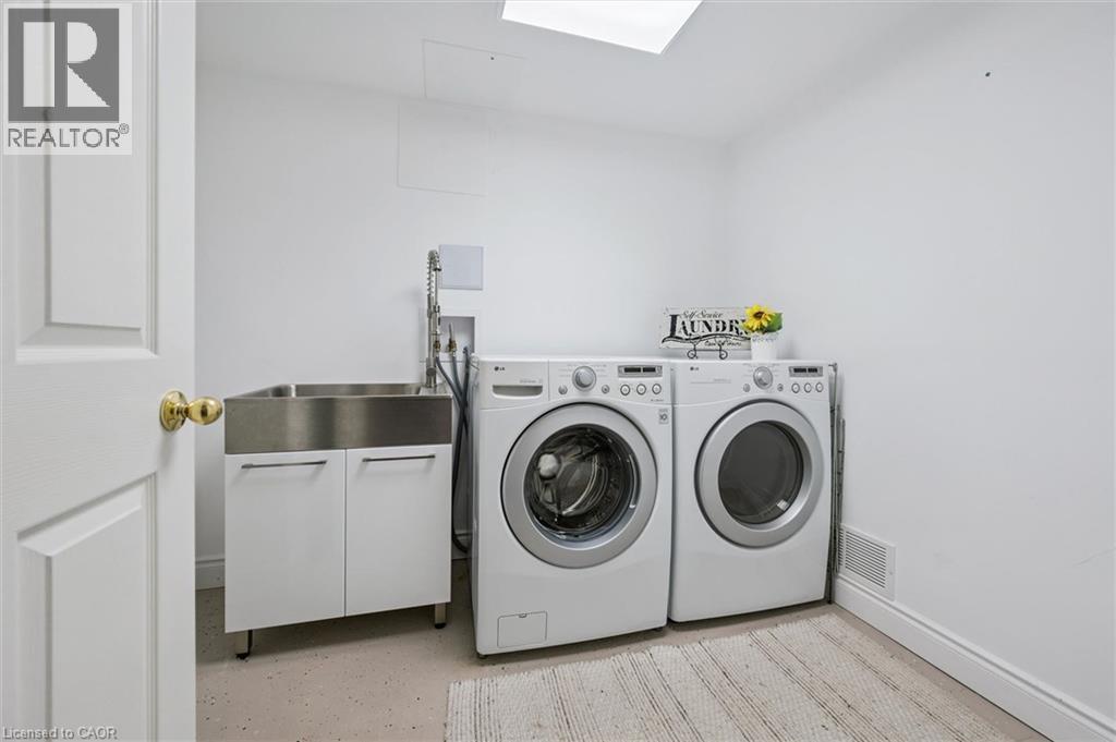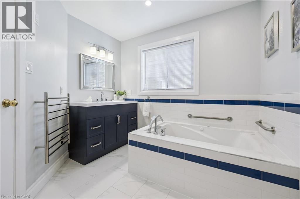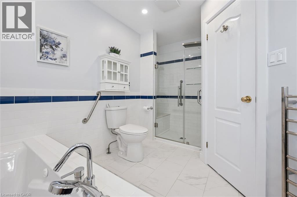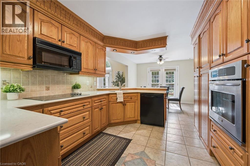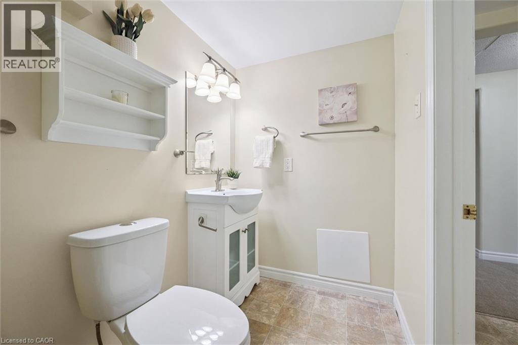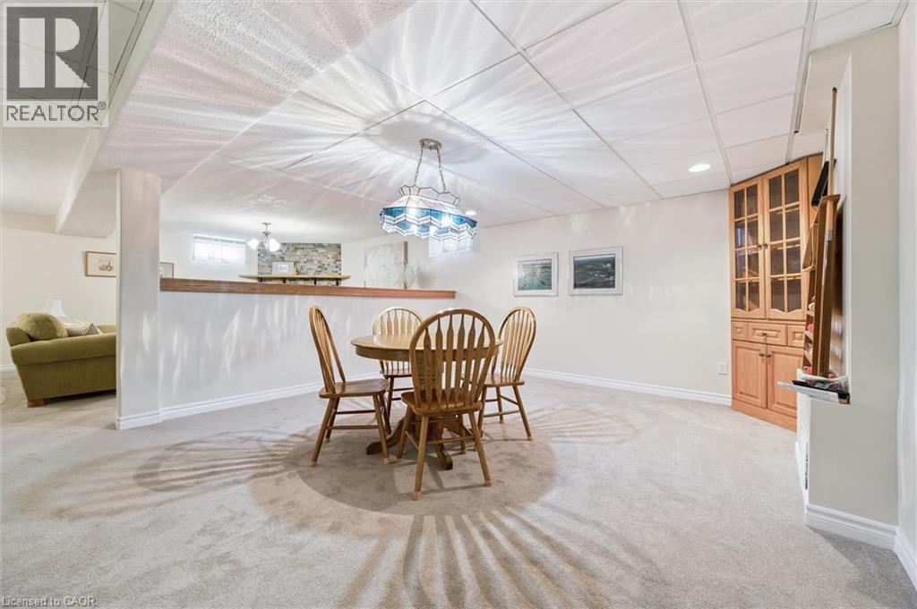 Beautifully finished bungalow offering over 2,800 sq. ft. of exceptional living space, located close to excellent schools, scenic walking trails, wonderful amenities, and just minutes to Highway 401. Situated on a large, beautifully manicured lot, this home boasts outstanding curb appeal with its stone front and welcoming presence. Step into the spacious foyer that opens into a bright and inviting great room, featuring hardwood flooring and a cozy corner gas fireplace. Garden doors create seamless indoor-outdoor living, leading to your own private backyard oasis, complete with a tranquil waterfall and pond, covered gazebo, composite decking and an additional walkout from the kitchen. The fully fenced backyard is surrounded by lush mature gardens, enhanced by a sprinkler system, offering both beauty and privacy. The main floor features a spacious, well-appointed kitchen with quartz countertops, abundant cabinetry, a bonus walk-in pantry, and a bright eat-in area perfect for family gatherings. There are three generous bedrooms on the main level, including a large primary suite with a newly renovated 4-piece ensuite and convenient laundry area in the suite. A second 4-piece bathroom completes the main level. The fully finished lower level provides incredible additional living space with a large recreation room featuring a second gas fireplace, games area, 3-piece bathroom, separate laundry area, fourth bedroom, office space that could be a 5th bedroom and plenty of storage. This exceptional home truly has it all—style, comfort, space, and an unbeatable location. A rare offering that won’t last long! (id:43681)