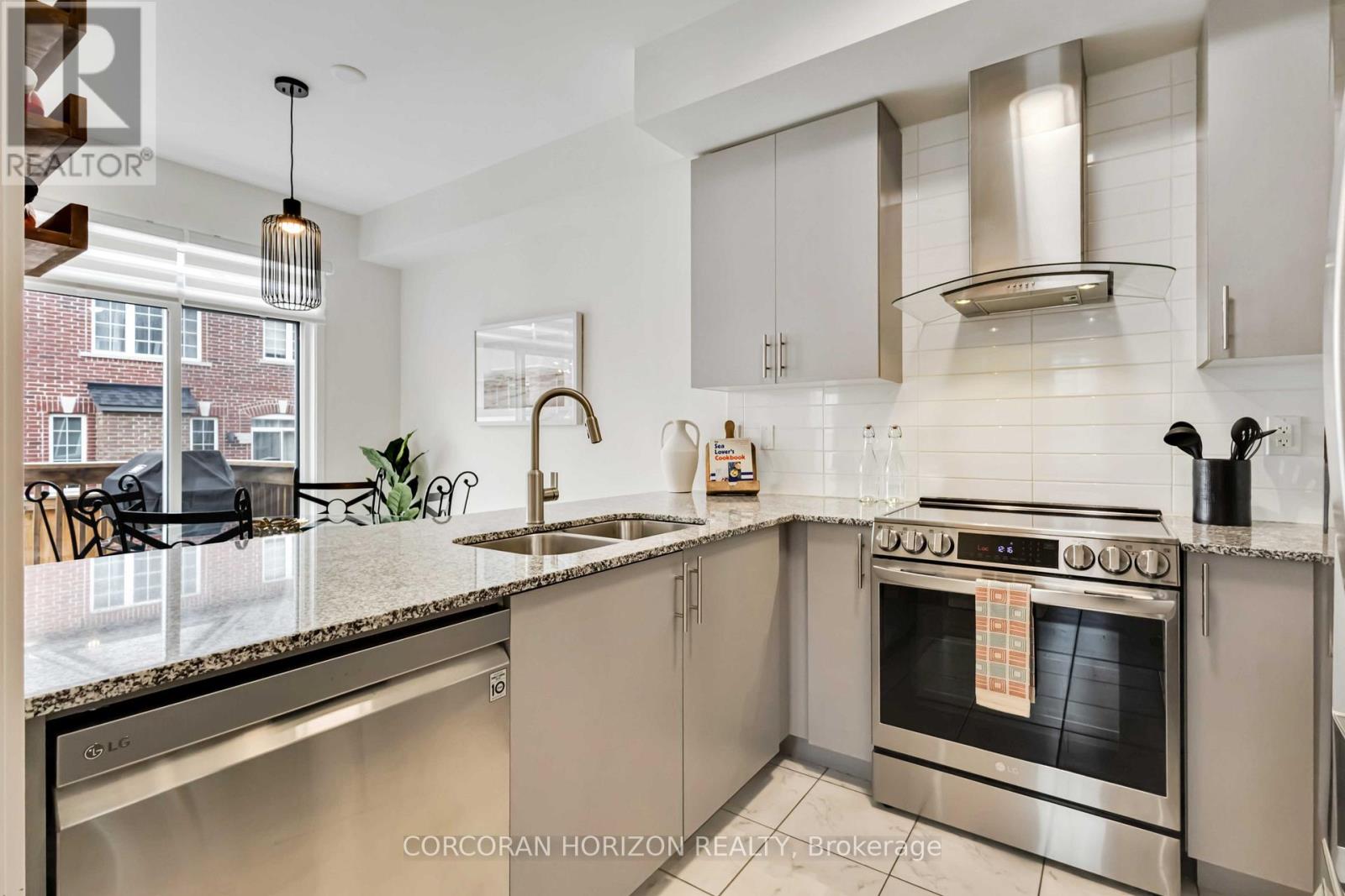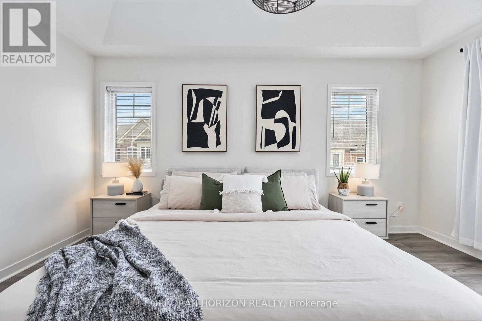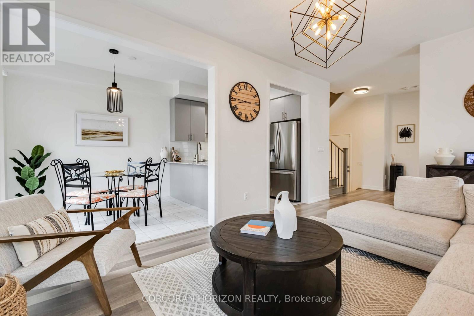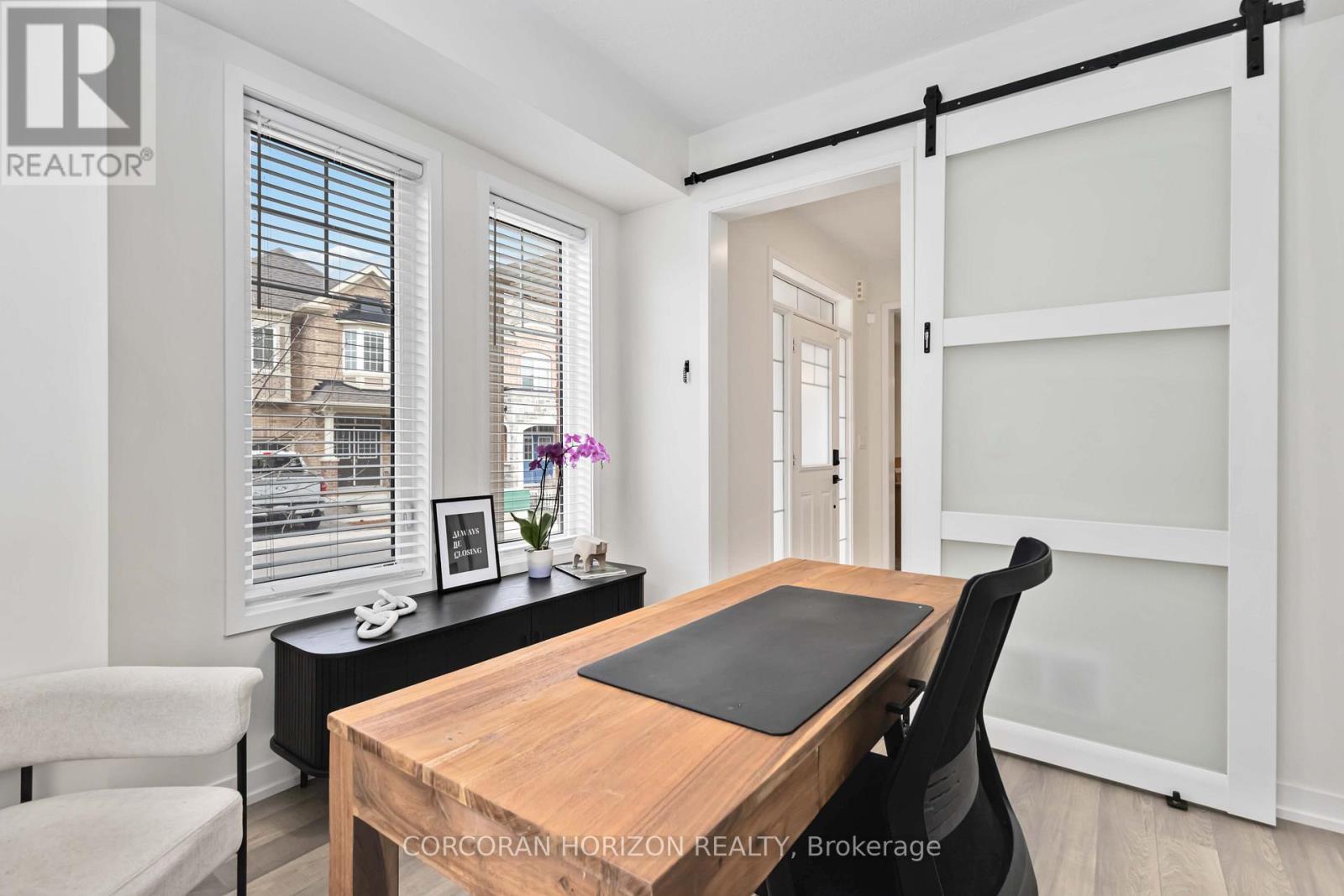 Stunning Freehold Corner Townhome - Like a Semi! Perfect for growing families or downsizers alike -without compromising space or functionality. Flooded with natural light this 4-bedroom home features a main floor office, and it blends style and function effortlessly. Nearly 2,000 sq.ft. featuring unobstructed sunset views from both the living room and primary bedroom. The exterior has been fully upgraded with $50K in interlocking, a grand wrap-around entrance, landscaped gardens, and 2 side-by-side parking spots. Inside, enjoy carpet-free living with upgraded hardware throughout, professionally designed custom paneling and closets, chic light fixtures, and newer upgraded stainless steel appliances. The convenient second-floor laundry room adds extra functionality. The fully fenced backyard is designed for balance--half inter locked, half green space--perfect for entertaining or relaxing. The basement offers in-law suite or rental income potential, adding long-term value. **Location, location, location.**Steps to top-rated schools, community centre, trails, parks, and all amenities including Upper Canada Mall, Costco, the GO Station, and both HWYs 400 and 404! (id:43681)