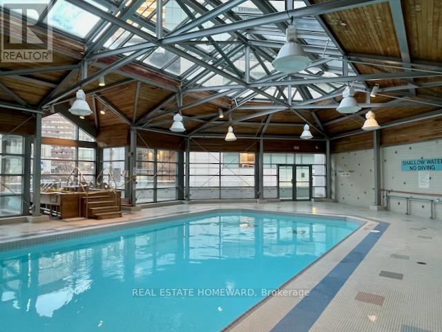 Incredible space and functionality for downtown Toronto at Bay & Gerrard at The Liberties! This landmark building was built with space in mind, both with the 1,096 sq.ft. suite interior as well as the extensive array of amenities throughout this condo residence. Unheard of convenience and options with an indoor saltwater pool, Jacuzzi, dry saunas, weights and cardio gym, running track, rooftop deck, library/book share zone, party room, board room, 24 hour concierge, visitor parking, underground car wash facility, underground P1 level access to Aura shopping and 777 Bay Street, and more to discover in the immediate surrounding neighbourhood! The suite itself has plenty of closet space with two double closets in the primary bedroom, a double closet in the second bedroom, a very generous linen closet and broom closet in the hallway, and a double mirrored-door closet in the foyer. The kitchen features a practical u-shape design with cupboards surrounding the entire space, and a handy pass-through window into the dining room. An open-concept combined living and dining room creates flexibility for layout options within the suite, while the den is a separate room with glass panels adjacent to the living room, with north views overlooking the park and green space. The principal bedroom provides so much room for even a king bed with additional furniture space, and is linked to an ensuite bathroom with a shower and tub, separate shower stall, and elongated bathroom vanity. The second bedroom continues with generously-sized proportions for equal king-sized bed possibilities. The main bathroom off of the hallway comes equipped with a shower stall and vanity storage. Private and conveniently laid out with both north and south window exposures. Parking and locker storage space included too! (id:43681)