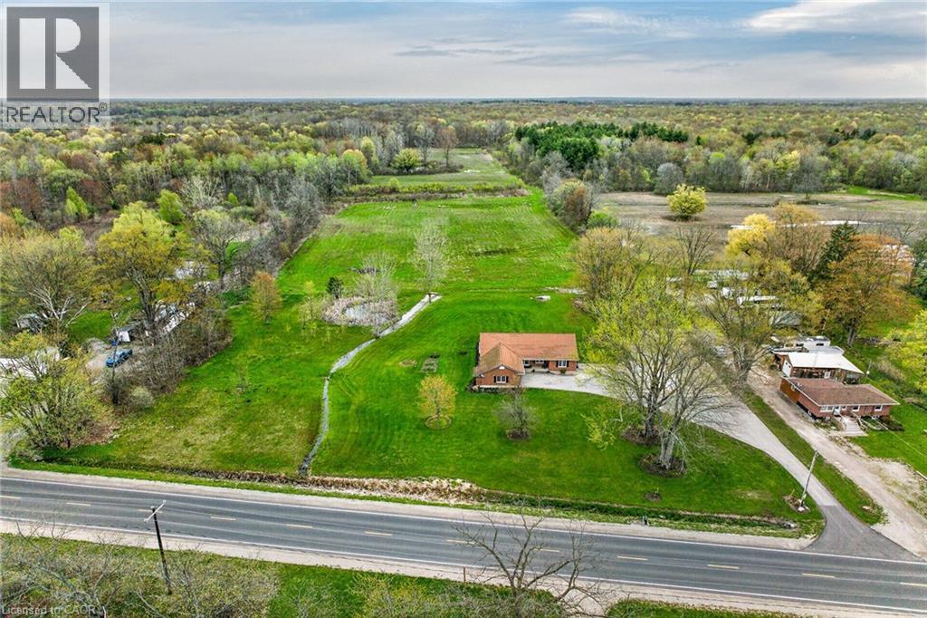 Impressive 34.56ac multi-purpose property offering something for entire family. This beautiful country package is located mins west of Dunnville near Grand River - incs well maintained 2006 built brick bungalow introducing 1,767sf of tastefully presented living space, 1,756sf unspoiled basement level & 569sf attached heated double car garage ftrs freshly painted interior & desired basement walk-down staircase, 7ac of fertile, sandy loam garden soil - ideal for growing vegetables - or perfect site for greenhouse operation + 26ac of mature forest - perfect for walking, hiking, moto-crossing or ATVing - surrounding natural pond - a wildlife haven - imagine waking up & seeing deer or wild turkeys frolicking in rear yard. Follow gentle winding driveway to magical setting where solid “DeHaan” built home is nestled under mature hardwoods incs front walkway accessing covered porch providing entry to inviting foyer leads to retro-style sunken living room boasting new carpeting & n/g fireplace - design flows to fully equipped kitchen sporting an abundance of oak cabinetry & adjacent dining room enjoying patio door WO to 12'x31' private entertainment deck. Roomy hallway corridor continues past 4pc bath to sizeable primary suite incs 4pc bath & walk-in closet - completed w/2 additional bedrooms & convenient main floor laundry w/direct garage entry. Endless potential to double living space as you admire the massive unblemished basement level - this blank canvas allows to create a floor plan/finish of your choice - future multi-generational possibilities. Extras inc - metal roof, vinyl windows, n/g furnace, AC, carpeting-2026, all appliances inc new range hood & stove, hi-end auto blinds, 200 amp hydro, battery back-up sump pump, 6000 gal water cistern, oversized septic system (up to 12 people). Relaxing 35-40 min commute to Hamilton & QEW - 15 mins southeast of Binbrook & Cayuga. Experience Home on the Range - at this magnificent rural venue exuding “Diversity & Versatility”! (id:43681)
