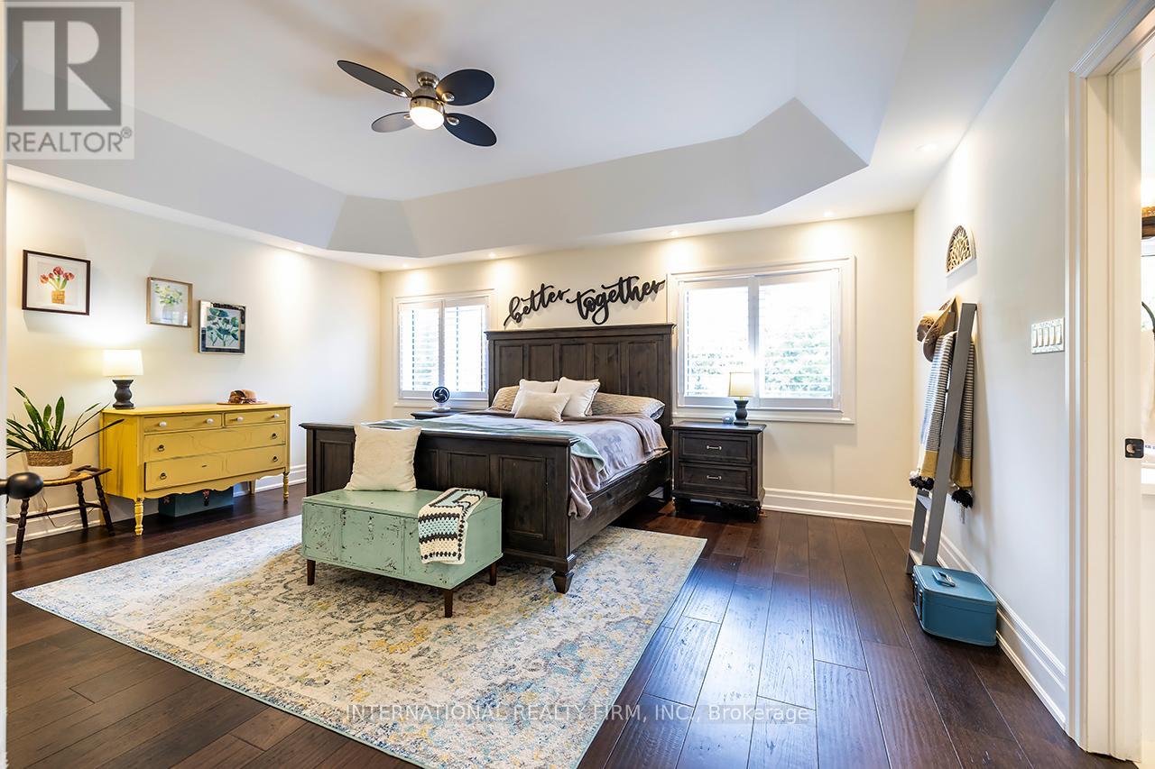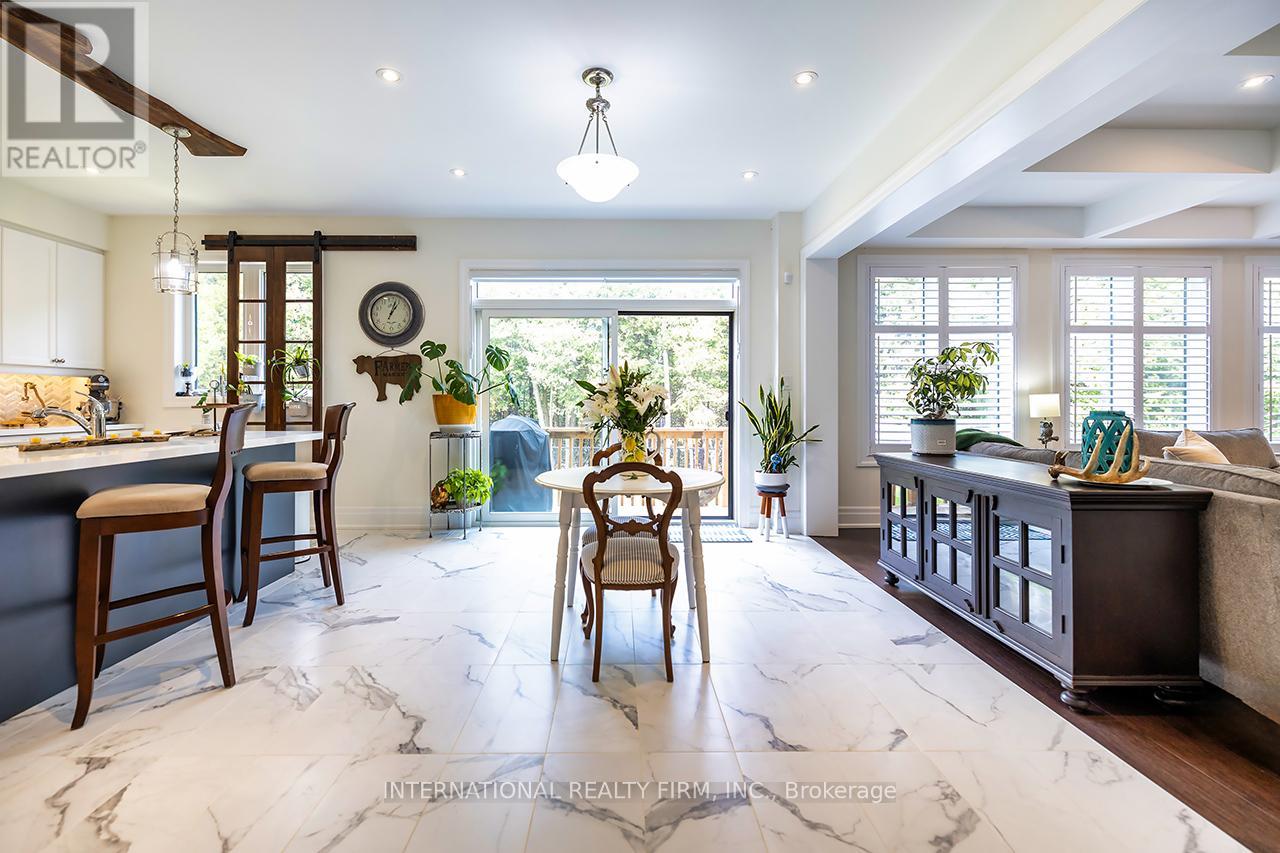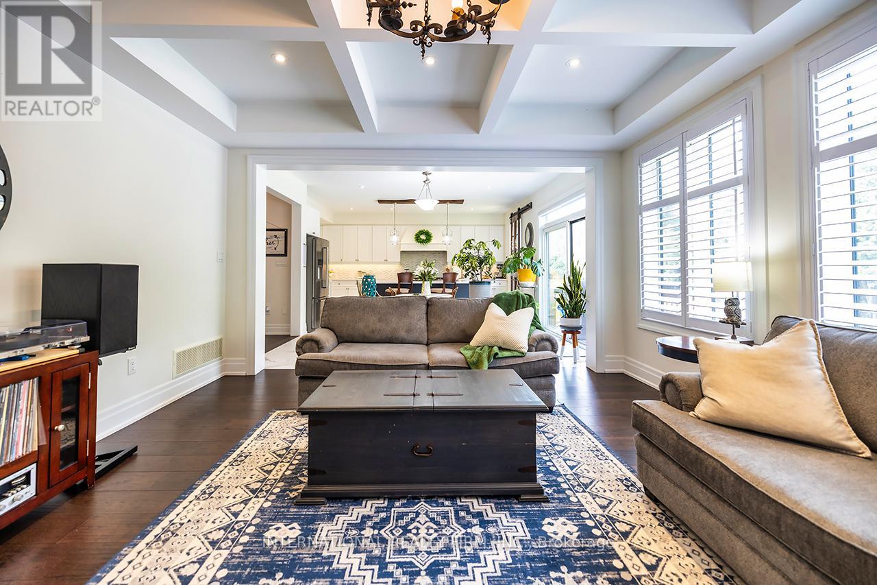 Welcome to 82 Hennessey Crescent, an executive residence in the family-oriented neighbourhood of Ravines of Lindsay. Built in 2022 and ideally positioned on a premium ravine lot backing onto Jennings Creek, this home offers 3,110 sq ft of refined living space and seemlessly blends thoughtful design with upscale finishes throughout. The main level showcases a seamless open-concept layout, highlighted by wide-plank hardwood flooring, a gas fireplace with stone surround and walnut mantle, and expansive windows that frame the private ravine setting. The kitchen is both stylish and functional, featuring quartz countertops, a marble backsplash, and upgraded appliances, ideal for everyday living and effortless entertaining. Upstairs, four generously sized bedrooms each enjoy access to a bathroom. The primary suite offers a tray ceiling, dual walk-in closets, and a well-appointed 5-piece ensuite. A second-floor laundry room adds convenience to the home's practical layout. Additional features include California shutters, a custom tray ceiling in the great room, wrought iron door inserts, and an extra-long driveway with no sidewalk. The fully fenced backyard provides a private outdoor retreat, complete with a hot tub, garden shed, and ample space to bring future plans to life. A polished, move-in ready home offering comfort, privacy, and a quiet connection to nature. (id:43681)