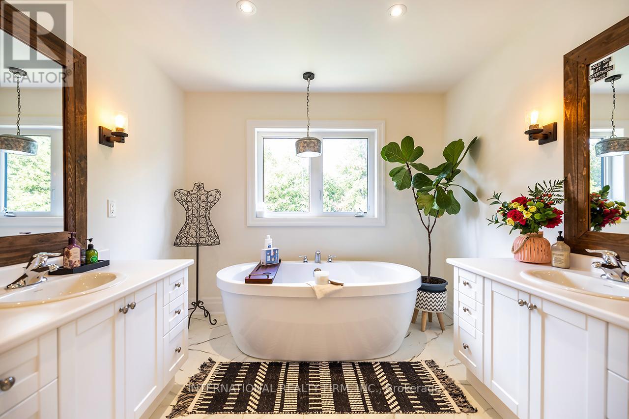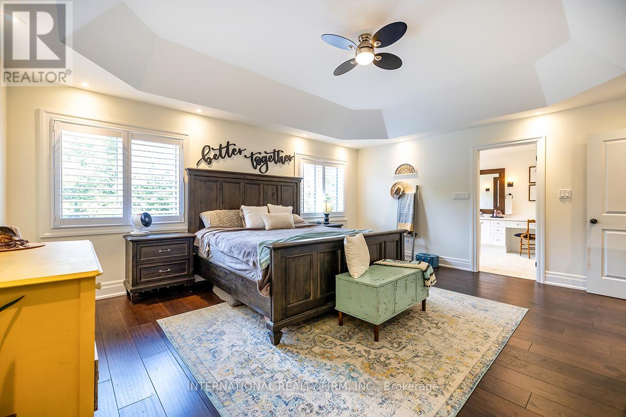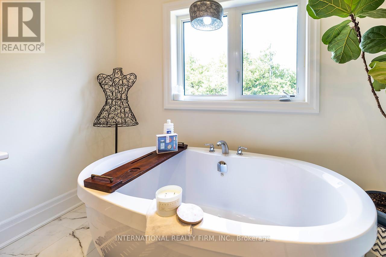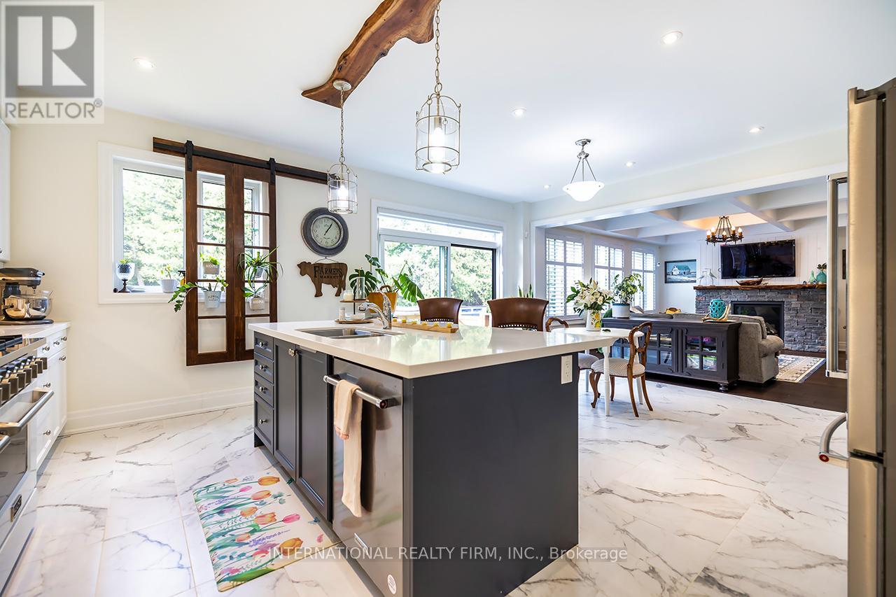 Welcome to 82 Hennessey Crescent, an executive residence in the family-oriented neighbourhood of Ravines of Lindsay. Built in 2022 and ideally positioned on a premium ravine lot backing onto Jennings Creek, this home offers 3,110 sq ft of refined living space and seemlessly blends thoughtful design with upscale finishes throughout. The main level showcases a seamless open-concept layout, highlighted by wide-plank hardwood flooring, a gas fireplace with stone surround and walnut mantle, and expansive windows that frame the private ravine setting. The kitchen is both stylish and functional, featuring quartz countertops, a marble backsplash, and upgraded appliances, ideal for everyday living and effortless entertaining. Upstairs, four generously sized bedrooms each enjoy access to a bathroom. The primary suite offers a tray ceiling, dual walk-in closets, and a well-appointed 5-piece ensuite. A second-floor laundry room adds convenience to the home's practical layout. Additional features include California shutters, a custom tray ceiling in the great room, wrought iron door inserts, and an extra-long driveway with no sidewalk. The fully fenced backyard provides a private outdoor retreat, complete with a hot tub, garden shed, and ample space to bring future plans to life. A polished, move-in ready home offering comfort, privacy, and a quiet connection to nature. (id:43681)