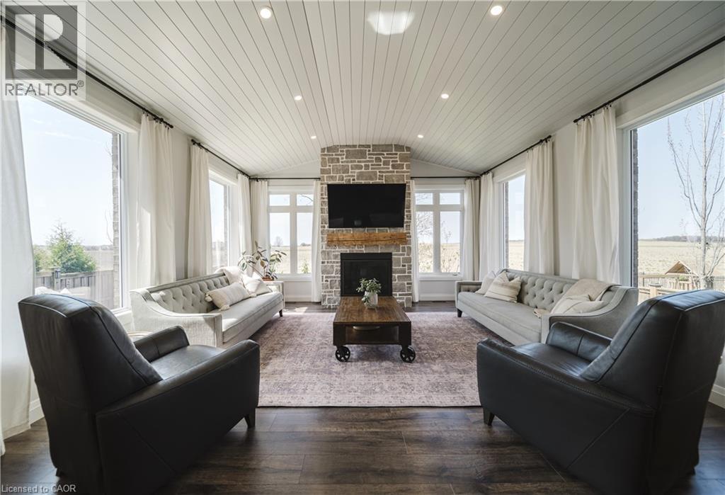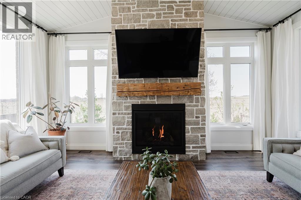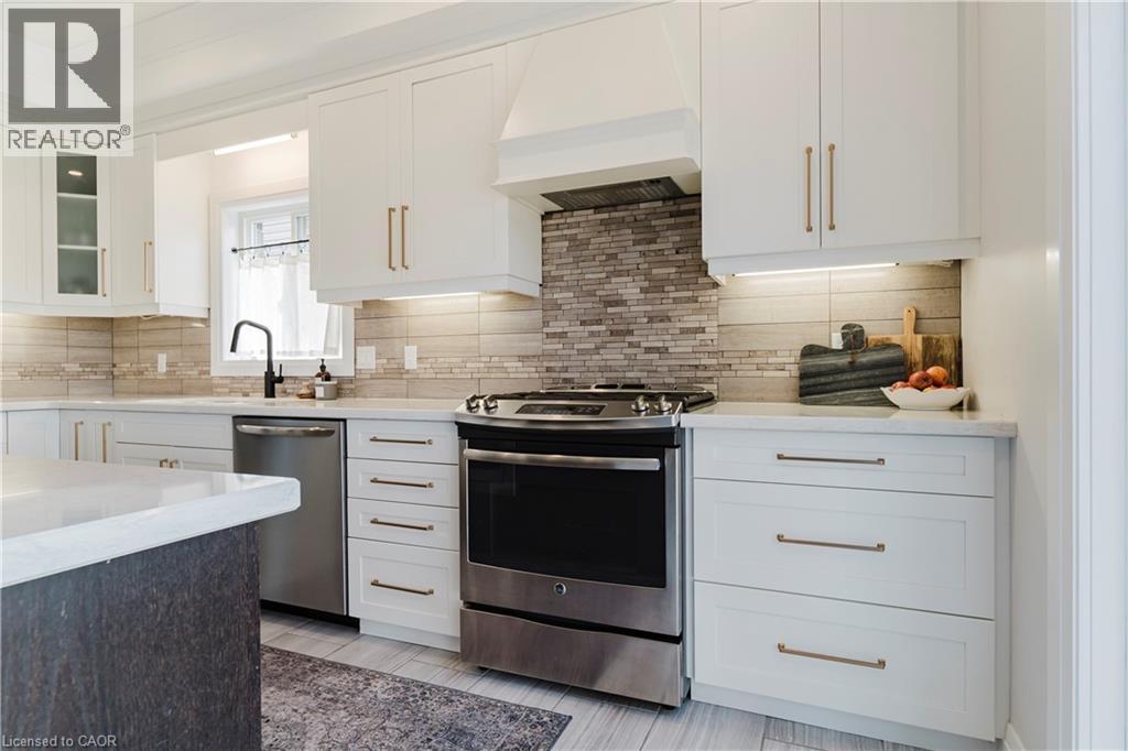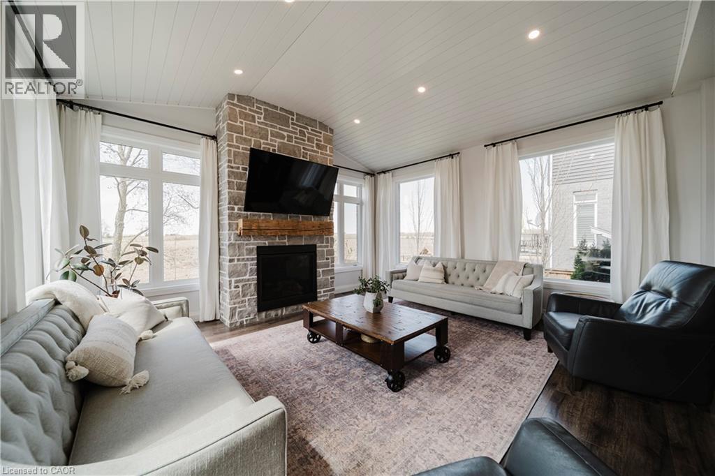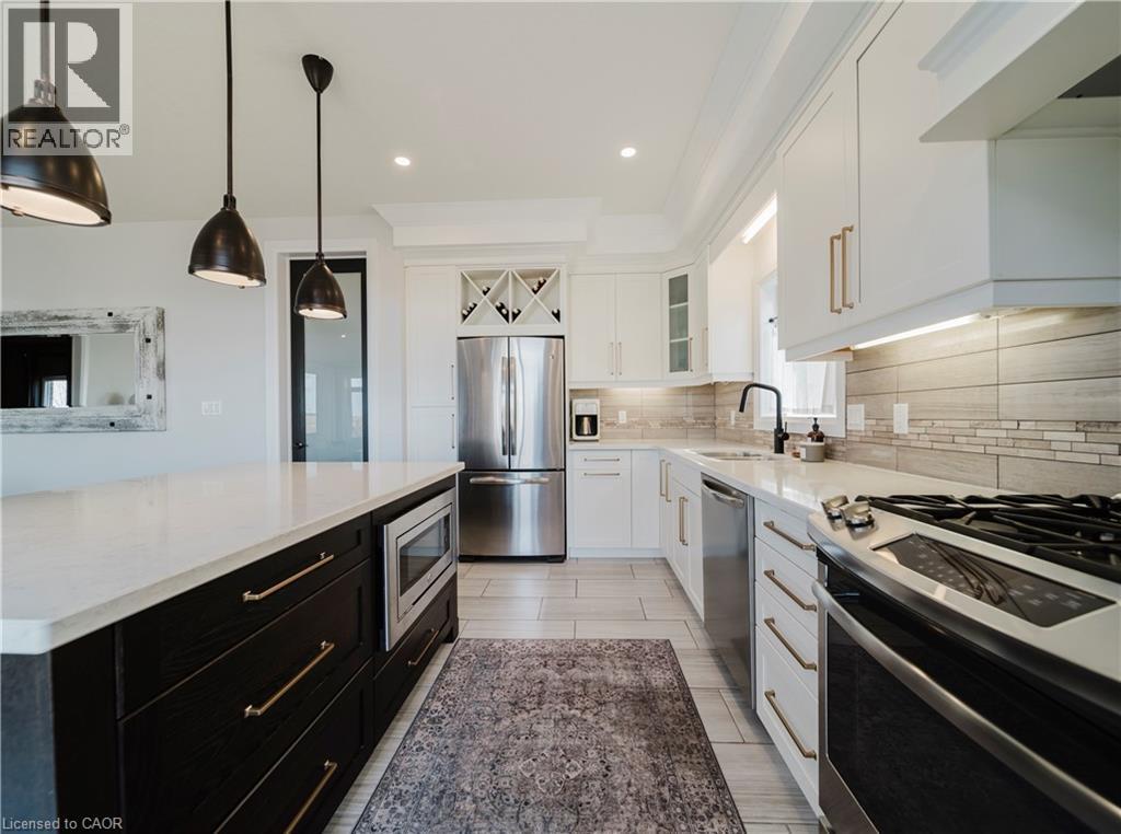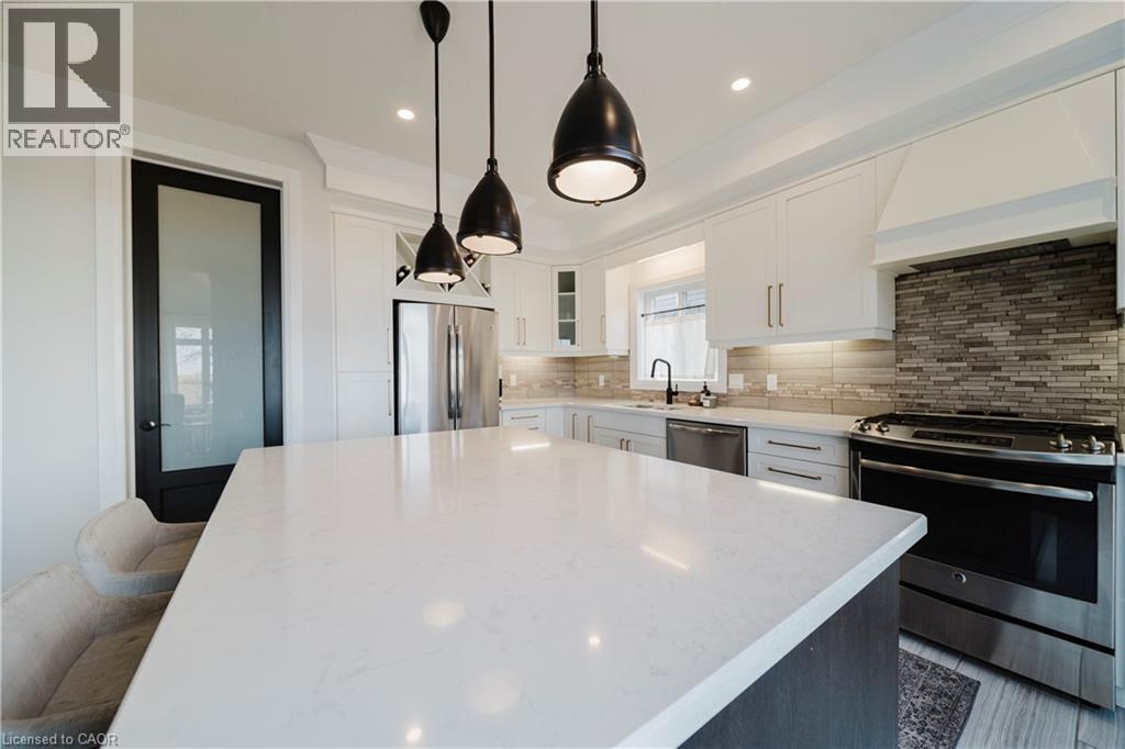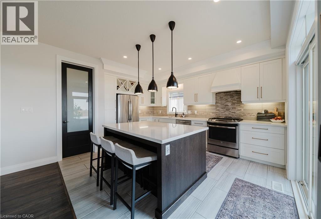 This custom-built home offers an impressive blend of thoughtful design, refined finishes, and generous living space—ideal for both everyday comfort and elevated entertaining. Filled with natural light thanks to its desirable southern exposure, the home features a bright and spacious great room anchored by a gas fireplace, a beautifully designed kitchen with timeless quartz surfaces, and a versatile loft that creates an additional family retreat. The finished basement extends the living space even further, complete with a stylish bar area—perfect for hosting or unwinding at the end of the day. Attention to detail is evident throughout, with designer-inspired elements like a shiplap ceiling, warm and cohesive finishes, and a seamless flow between indoor and outdoor living. The private rear deck and backyard offer a rare combination of sun-filled spaces and peaceful retreat, while the home’s overall layout provides both functionality and flexibility—including future-ready features like a dedicated hot tub electrical setup. Set within a welcoming, family-oriented neighbourhood just minutes from Kitchener-Waterloo, this is a well-appointed home that delivers on space, style, and long-term livability. (id:43681)