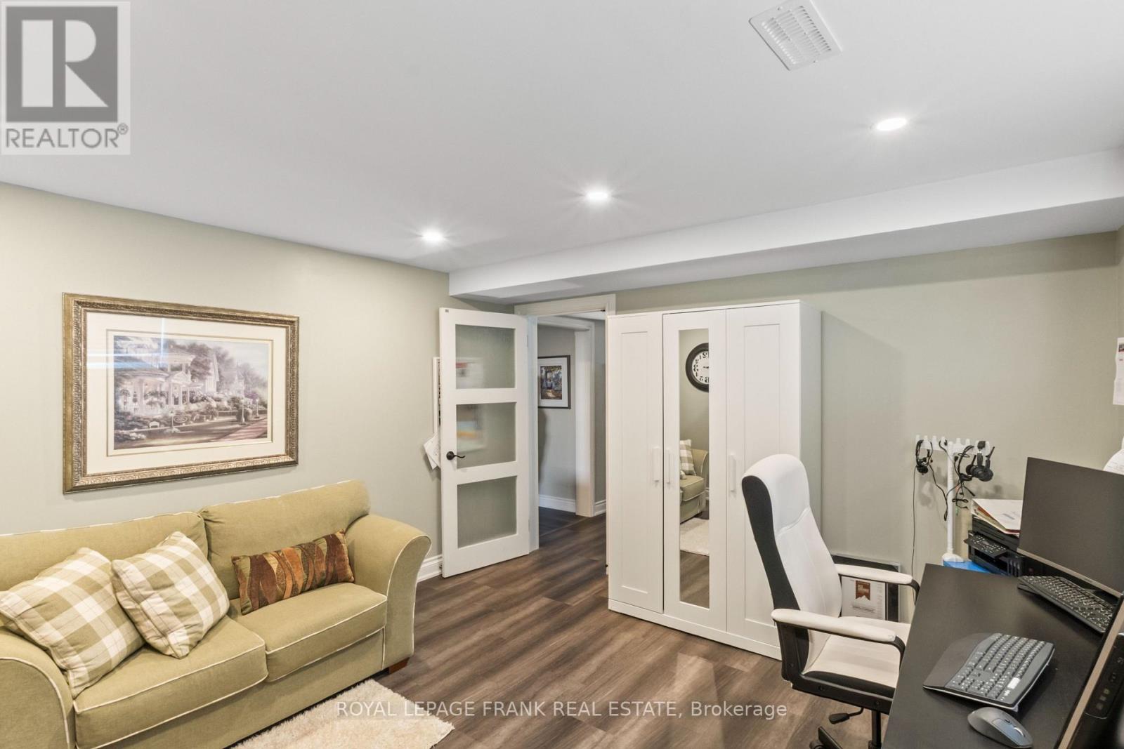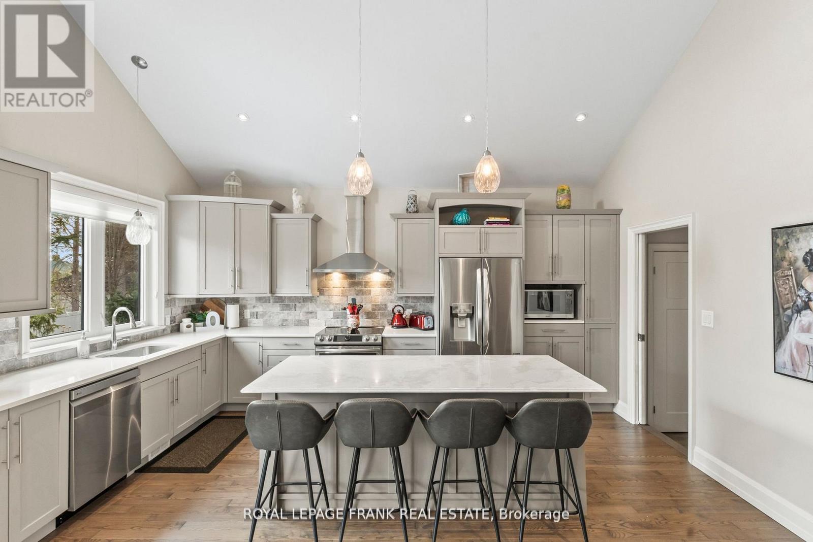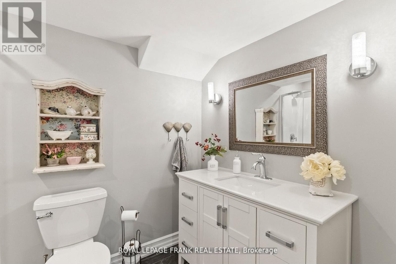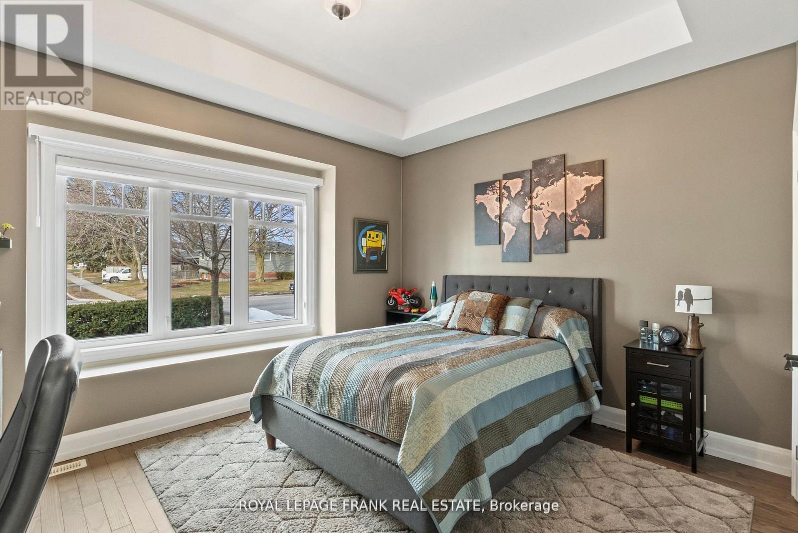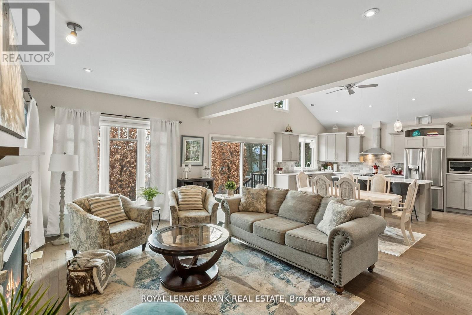 Shows Like a Model Home! Inspired Custom Bungalow - Ideal for Families & Multigenerational Living. Exceptional custom bungalow showcasing high-end finishes and impeccable pride of ownership. Bright, open-concept layout with designer kitchen featuring cathedral ceilings, quartz countertops, centre island, and ample storage-open to a spacious dining area ideal for entertaining. Elegant great room with hardwood floors and cultured stone gas fireplace. Walk out through 8-ft custom doors to a private backyard oasis. The primary suite is a luxurious retreat, complete with a custom finished spacious walk-in closet and spa-like 5-piece ensuite bath featuring freestanding tub and separate glass shower. Professionally finished lower level with vinyl plank flooring and large above-grade windows offering abundant natural light. Includes 2 additional bedrooms, expansive games room with fireplace, recreation room, and custom 3-piece bath-perfect for extended family or guests. Over $100K invested in premium exterior upgrades including stone driveway, walkways, patios, and wrought iron fencing-delivering exceptional curb appeal and outdoor living. A rare opportunity offering style, space, and versatility-shows to perfection! (id:43681)