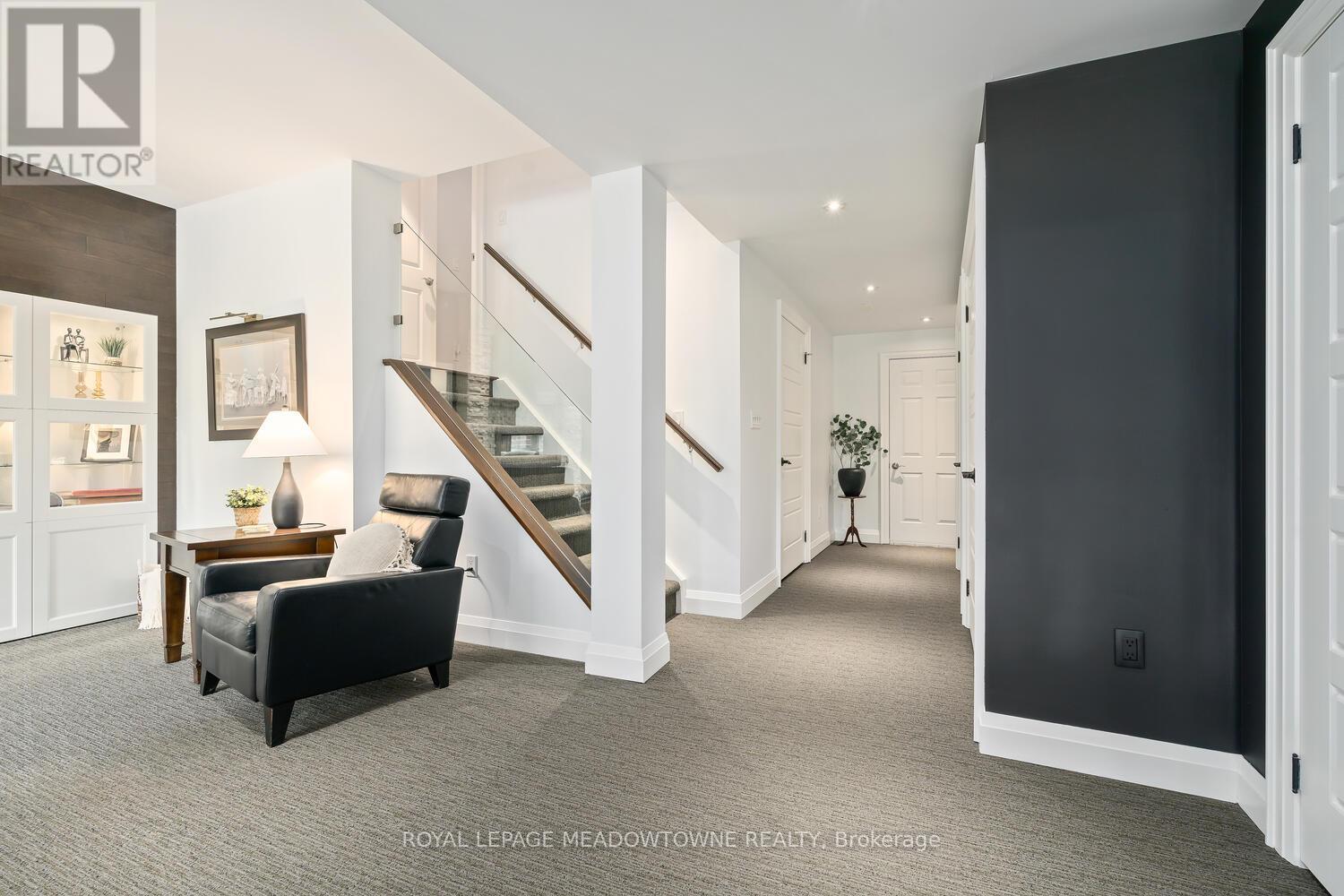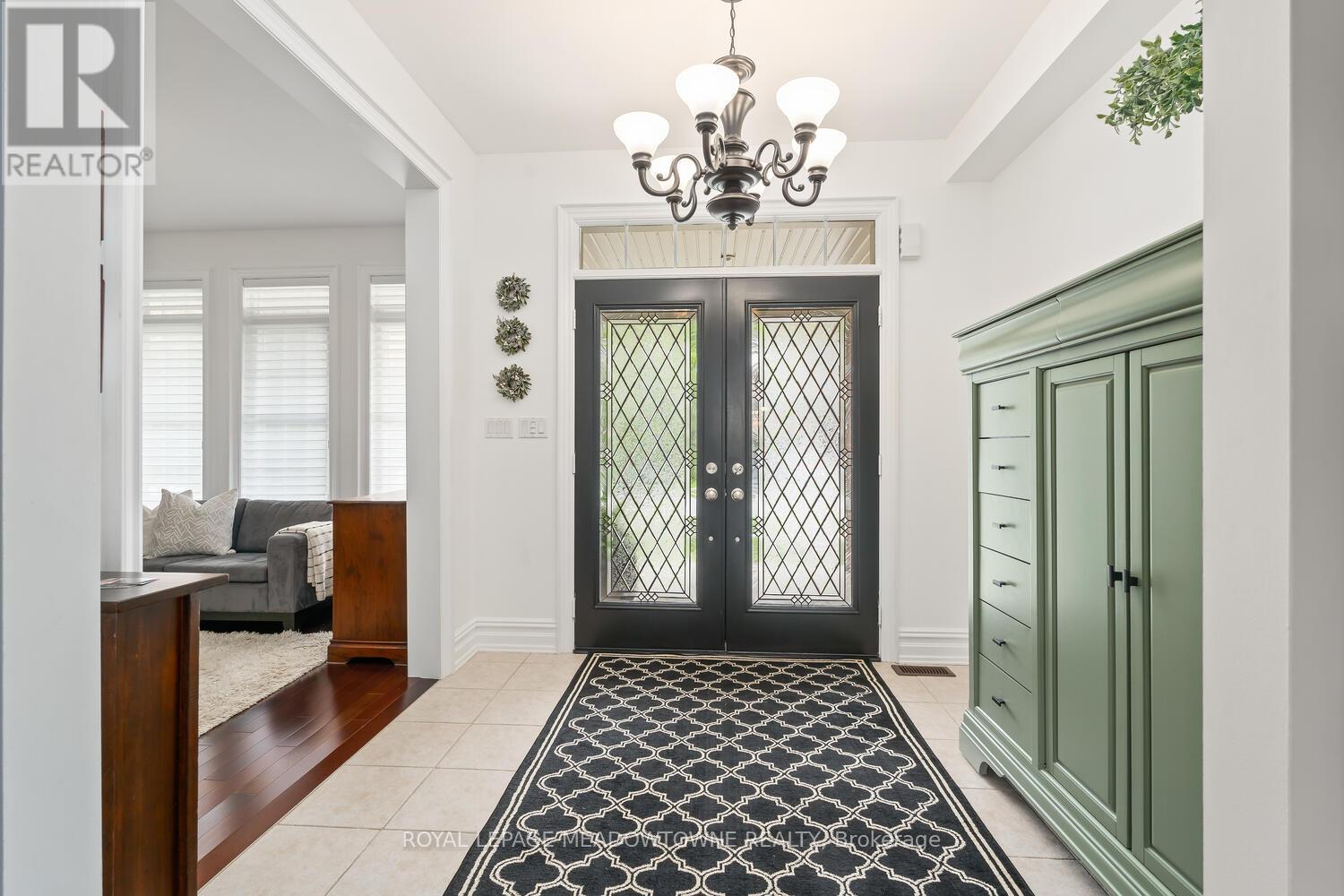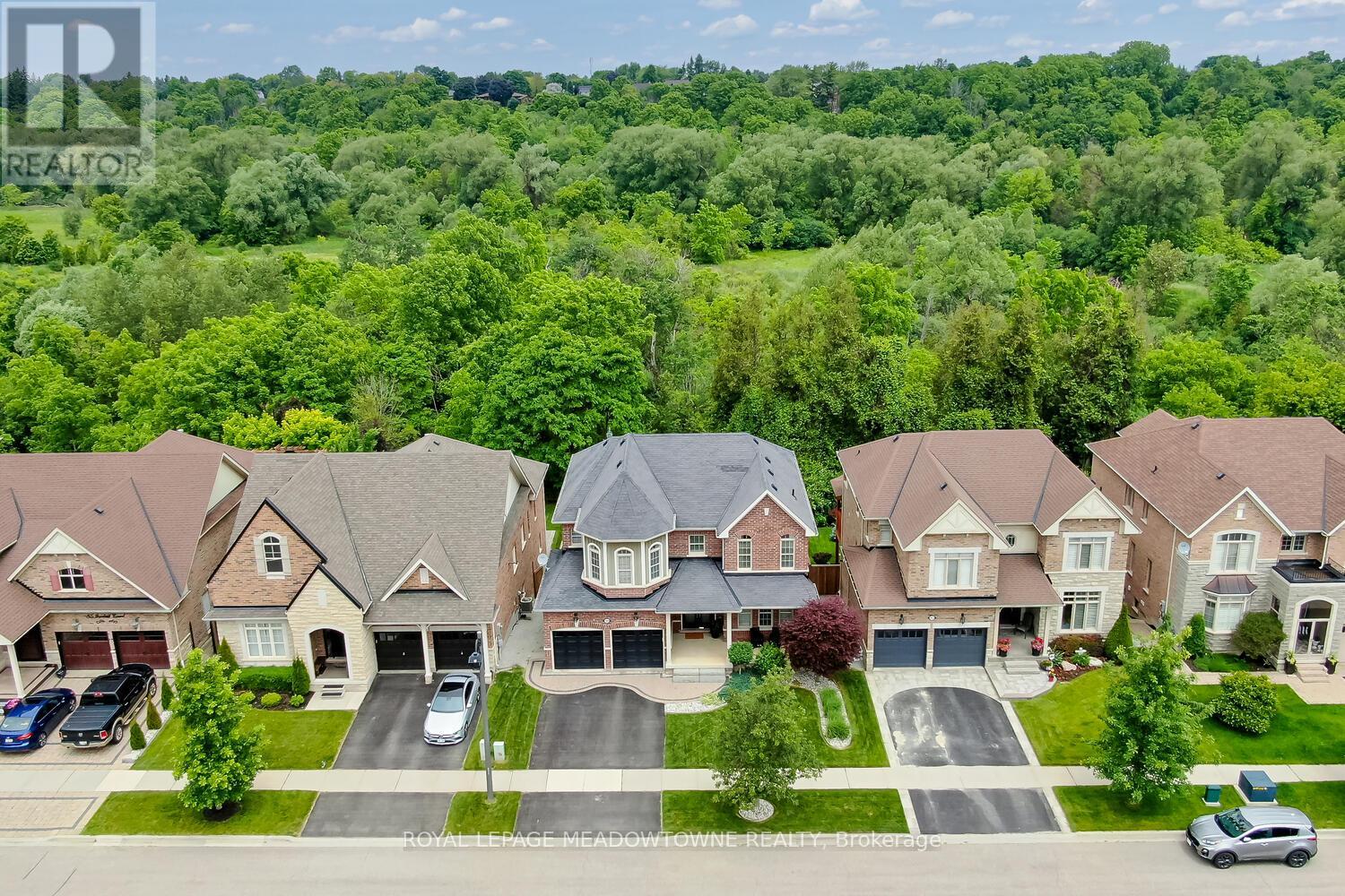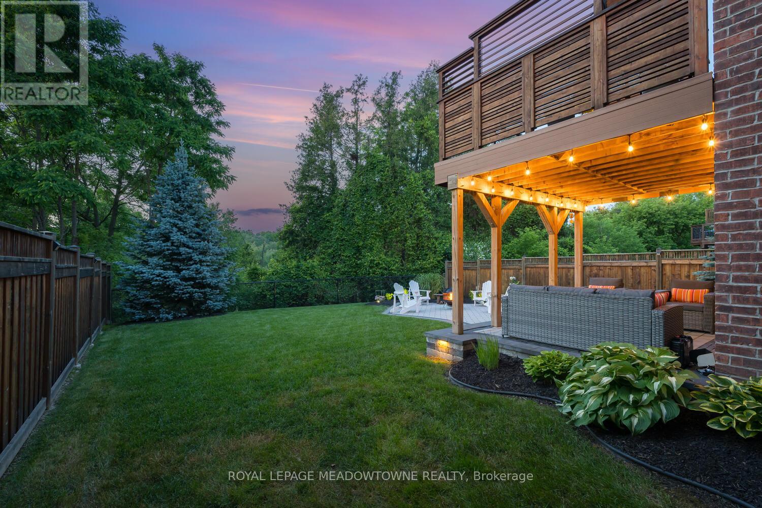 This elegant Energy Star Certified home sits on a premium 50-foot lot backing onto a serene ravine, offering exceptional privacy and scenic views. Surrounded by walking trails, parks, and top-rated schools, and just a short walk to Downtown Georgetown, it also features a pool-sized backyard. The grand foyer with chandelier leads to a versatile office that can serve as a main floor bedroom. With 4,359 sq ft of finished living space, this traditionally designed home includes a fully finished walk-out basement with an additional kitchen and bedroom-ideal for extended family. The main floor living room features 18-foot ceilings, a gas fireplace, hardwood floors, built-ins, and large windows overlooking the ravine. The gourmet Barzotti eat-in kitchen offers granite countertops, stainless steel appliances, a large island, 9-foot ceilings, and a walk-out to the deck, complemented by a formal dining room with coffered ceilings and wainscotting. A powder room and laundry complete the main level. Upstairs, the primary suite offers ravine views, his and hers walk-in closets, and a luxurious 5-piece ensuite. Three additional bedrooms, a 4-piece bathroom, and an open-concept office overlooking the living room complete the upper level. The walk-out basement features a cozy family room with a stone gas fireplace, built-ins, backyard access, a kitchen/bar area that can easily be converted into a kitchen, 4-piece bath with in-floor heating, ample storage, and a cantina. A perfect blend of elegance, space, and functionality in a sought-after executive neighbourhood. (id:43681)