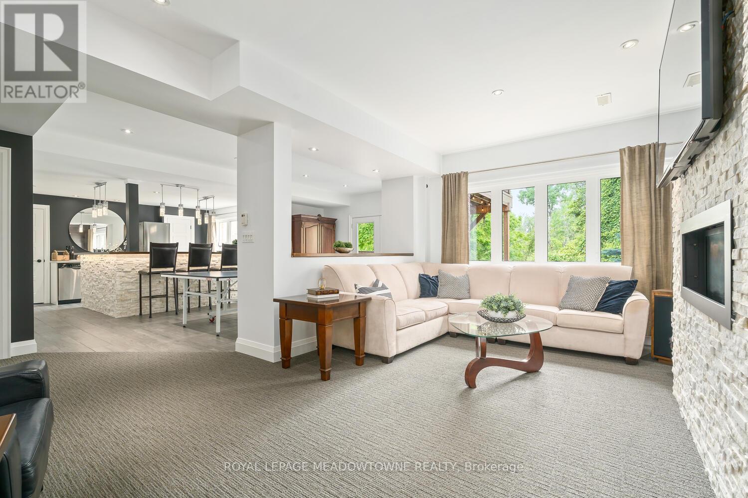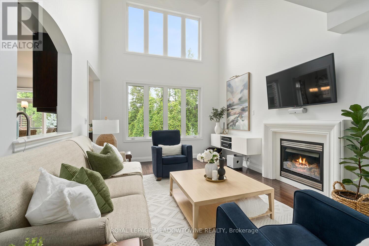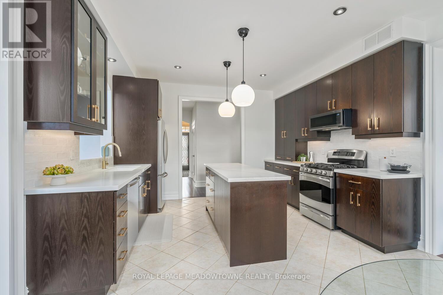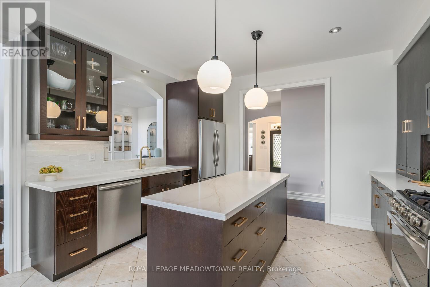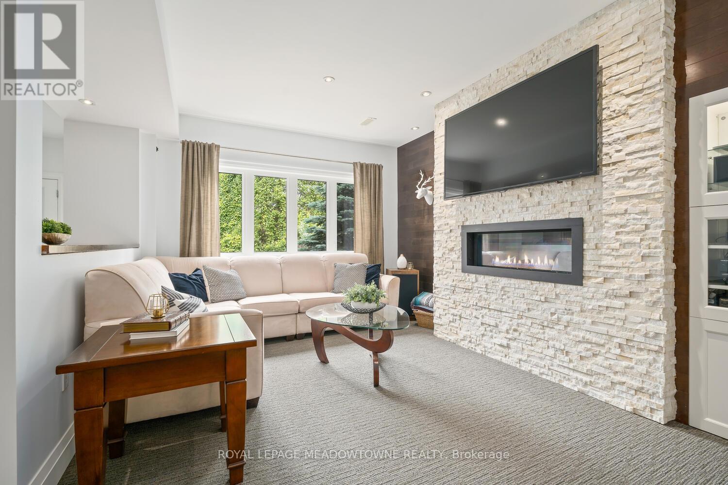 This elegant Energy Star Certified home sits on a premium 50-foot lot backing onto a serene ravine, offering exceptional privacy and scenic views. Surrounded by walking trails, parks, and top-rated schools, and just a short walk to Downtown Georgetown, it also features a pool-sized backyard. The grand foyer with chandelier leads to a versatile office that can serve as a main floor bedroom. With 4,359 sq ft of finished living space, this traditionally designed home includes a fully finished walk-out basement with an additional kitchen and bedroom-ideal for extended family. The main floor living room features 18-foot ceilings, a gas fireplace, hardwood floors, built-ins, and large windows overlooking the ravine. The gourmet Barzotti eat-in kitchen offers granite countertops, stainless steel appliances, a large island, 9-foot ceilings, and a walk-out to the deck, complemented by a formal dining room with coffered ceilings and wainscotting. A powder room and laundry complete the main level. Upstairs, the primary suite offers ravine views, his and hers walk-in closets, and a luxurious 5-piece ensuite. Three additional bedrooms, a 4-piece bathroom, and an open-concept office overlooking the living room complete the upper level. The walk-out basement features a cozy family room with a stone gas fireplace, built-ins, backyard access, a kitchen/bar area that can easily be converted into a kitchen, 4-piece bath with in-floor heating, ample storage, and a cantina. A perfect blend of elegance, space, and functionality in a sought-after executive neighbourhood. (id:43681)