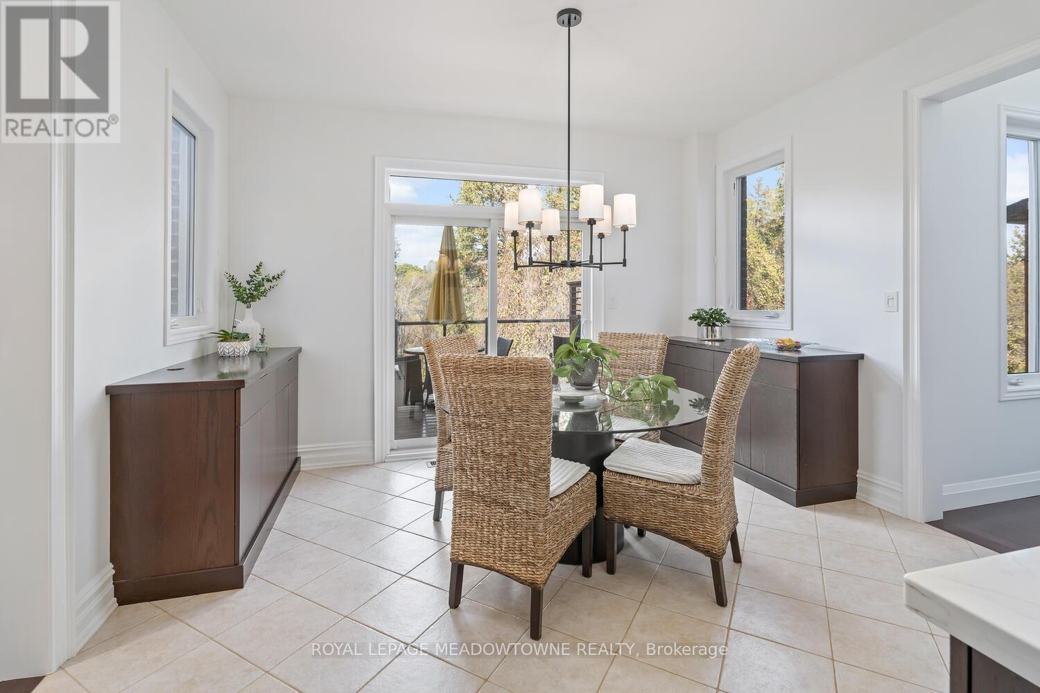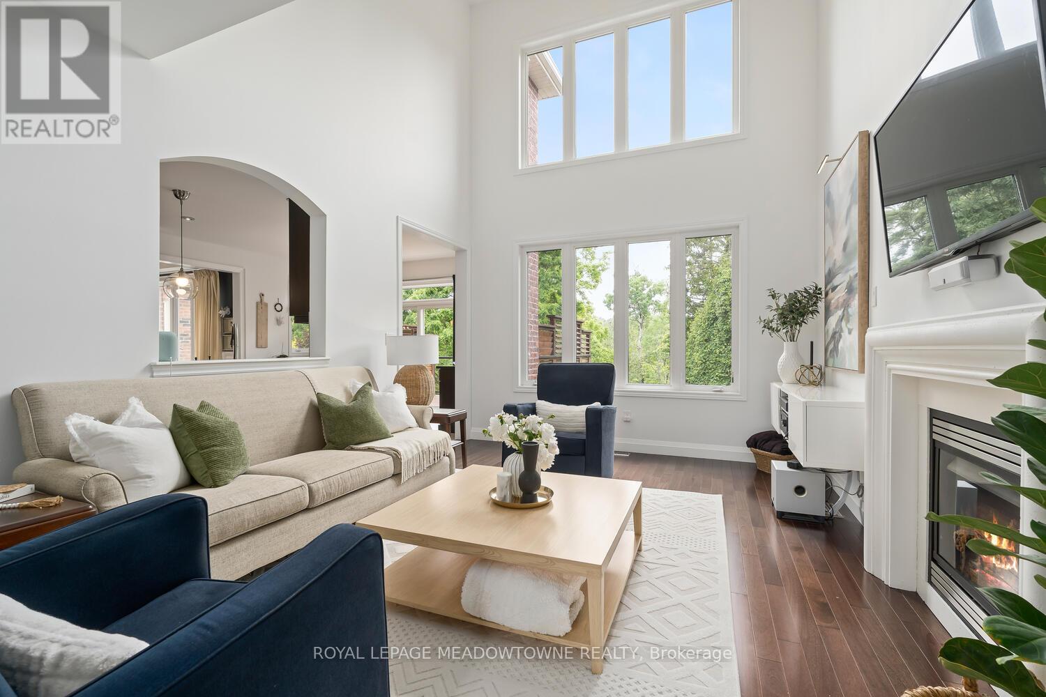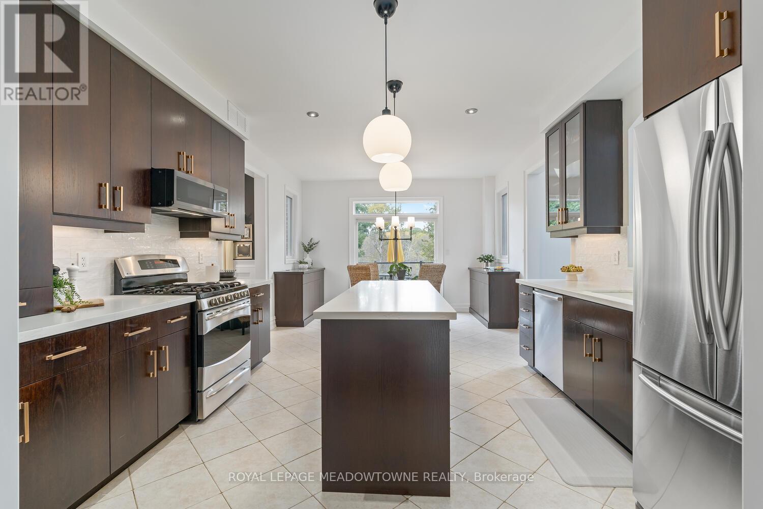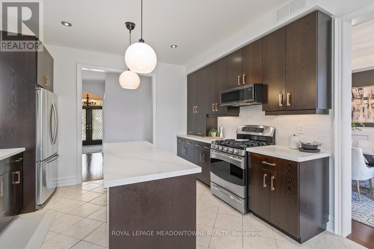 This elegant Energy Star Certified home sits on a premium 50-foot lot backing onto a serene ravine, offering exceptional privacy and scenic views. Surrounded by walking trails, parks, and top-rated schools, and just a short walk to Downtown Georgetown, it also features a pool-sized backyard. The grand foyer with chandelier leads to a versatile office that can serve as a main floor bedroom. With 4,359 sq ft of finished living space, this traditionally designed home includes a fully finished walk-out basement with an additional kitchen and bedroom-ideal for extended family. The main floor living room features 18-foot ceilings, a gas fireplace, hardwood floors, built-ins, and large windows overlooking the ravine. The gourmet Barzotti eat-in kitchen offers granite countertops, stainless steel appliances, a large island, 9-foot ceilings, and a walk-out to the deck, complemented by a formal dining room with coffered ceilings and wainscotting. A powder room and laundry complete the main level. Upstairs, the primary suite offers ravine views, his and hers walk-in closets, and a luxurious 5-piece ensuite. Three additional bedrooms, a 4-piece bathroom, and an open-concept office overlooking the living room complete the upper level. The walk-out basement features a cozy family room with a stone gas fireplace, built-ins, backyard access, a kitchen/bar area that can easily be converted into a kitchen, 4-piece bath with in-floor heating, ample storage, and a cantina. A perfect blend of elegance, space, and functionality in a sought-after executive neighbourhood. (id:43681)