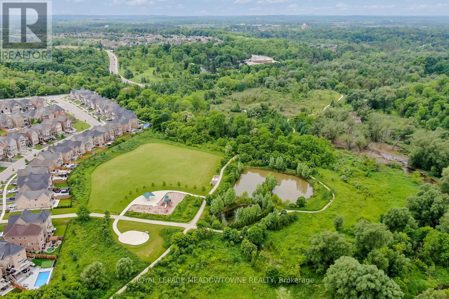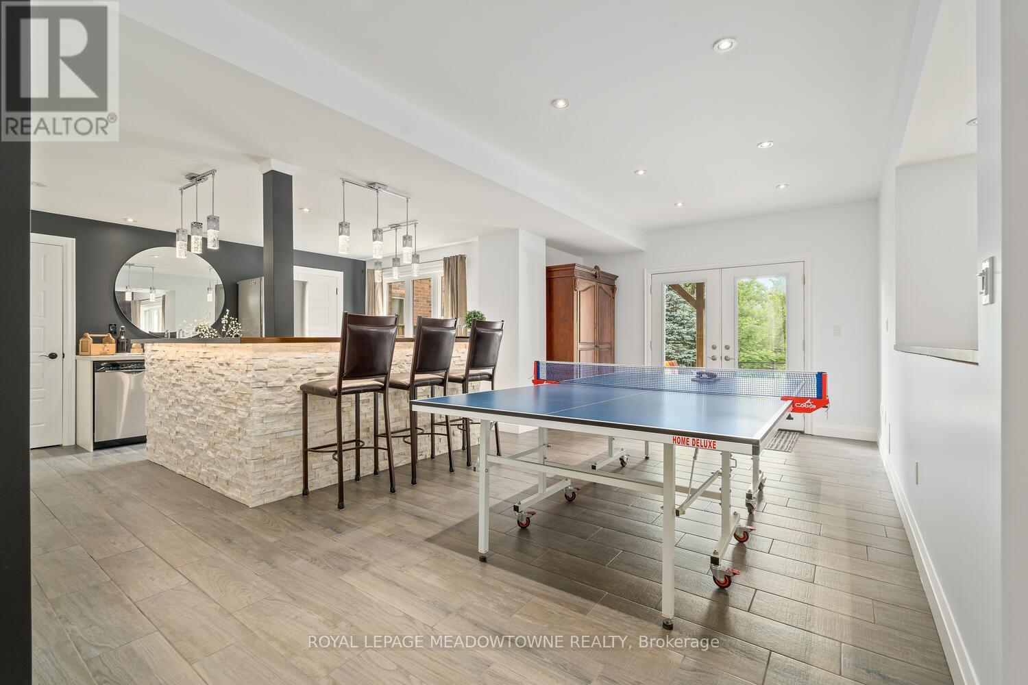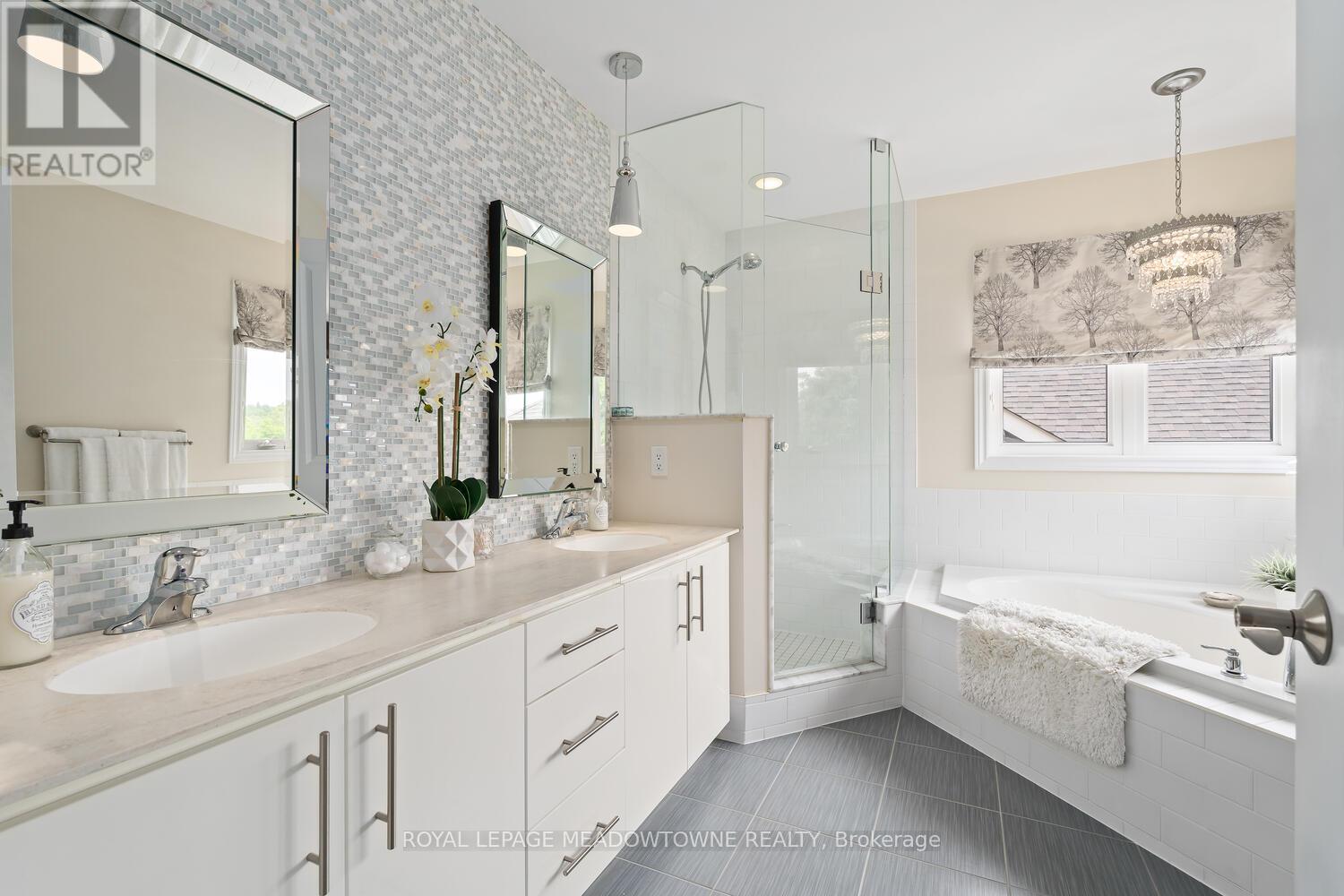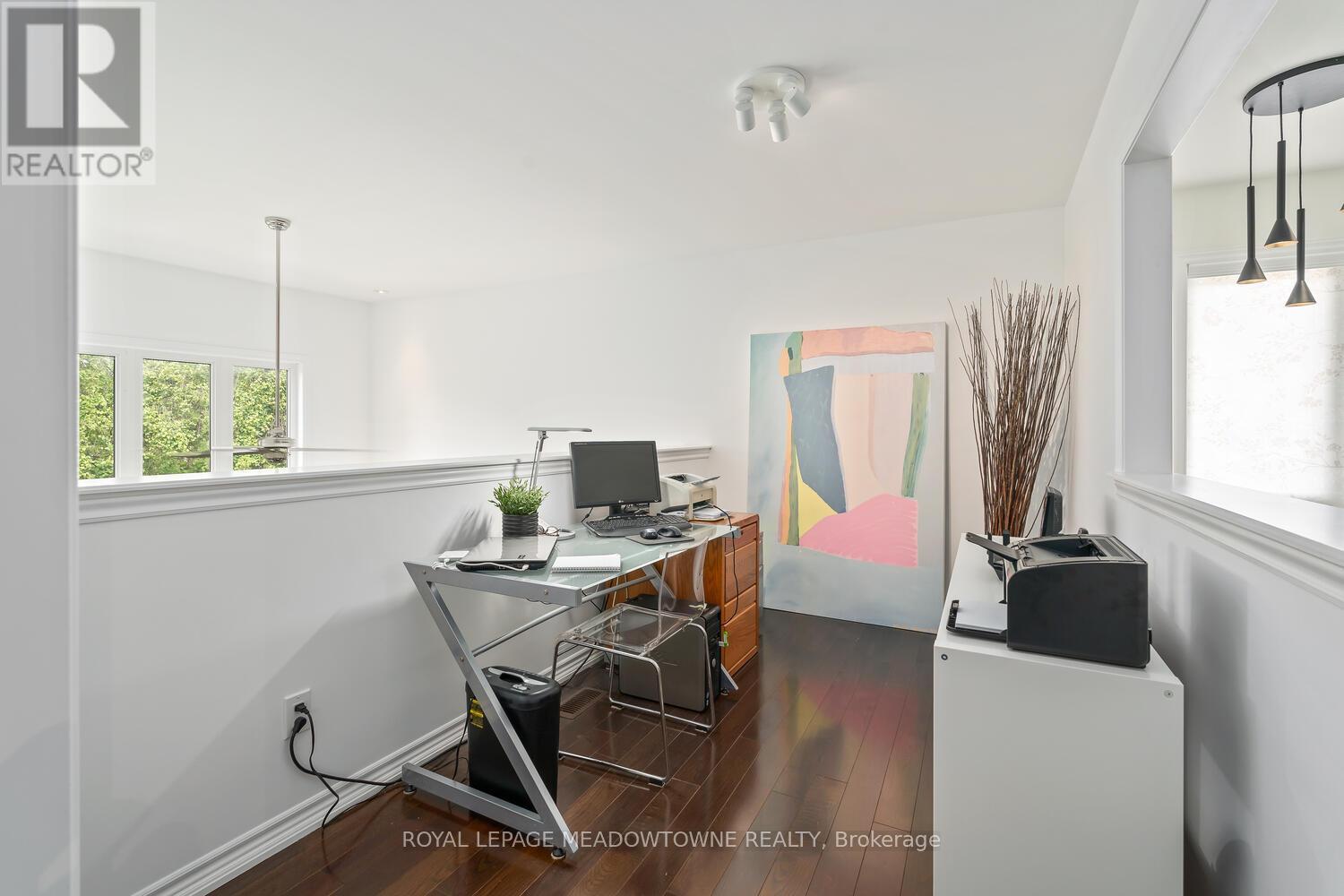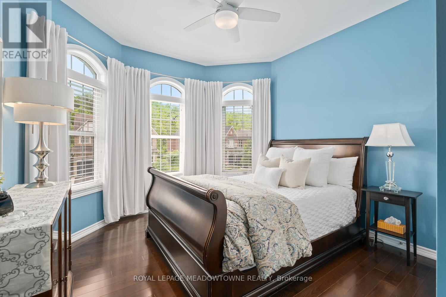 This elegant Energy Star Certified home sits on a premium 50-foot lot backing onto a serene ravine, offering exceptional privacy and scenic views. Surrounded by walking trails, parks, and top-rated schools, and just a short walk to Downtown Georgetown, it also features a pool-sized backyard. The grand foyer with chandelier leads to a versatile office that can serve as a main floor bedroom. With 4,359 sq ft of finished living space, this traditionally designed home includes a fully finished walk-out basement with an additional kitchen and bedroom-ideal for extended family. The main floor living room features 18-foot ceilings, a gas fireplace, hardwood floors, built-ins, and large windows overlooking the ravine. The gourmet Barzotti eat-in kitchen offers granite countertops, stainless steel appliances, a large island, 9-foot ceilings, and a walk-out to the deck, complemented by a formal dining room with coffered ceilings and wainscotting. A powder room and laundry complete the main level. Upstairs, the primary suite offers ravine views, his and hers walk-in closets, and a luxurious 5-piece ensuite. Three additional bedrooms, a 4-piece bathroom, and an open-concept office overlooking the living room complete the upper level. The walk-out basement features a cozy family room with a stone gas fireplace, built-ins, backyard access, a kitchen/bar area that can easily be converted into a kitchen, 4-piece bath with in-floor heating, ample storage, and a cantina. A perfect blend of elegance, space, and functionality in a sought-after executive neighbourhood. (id:43681)
