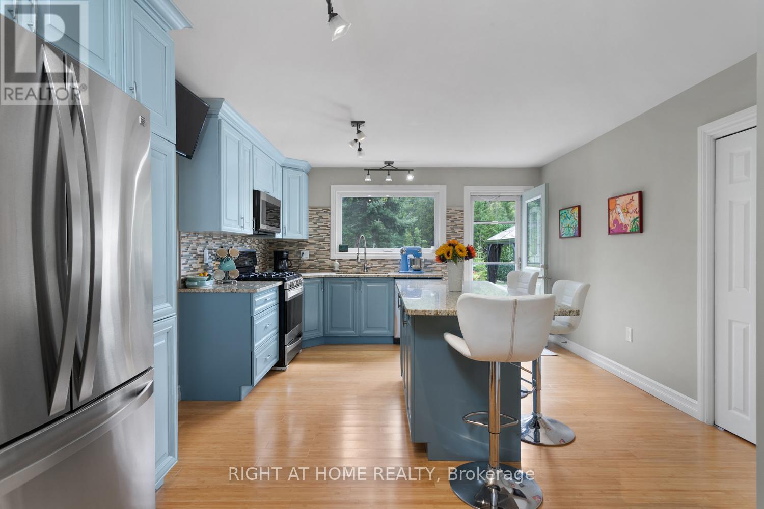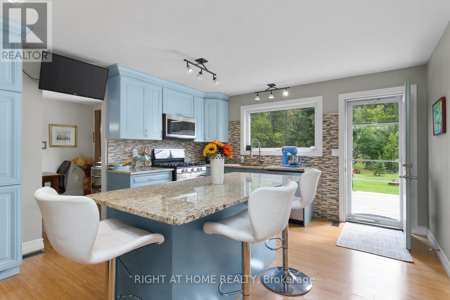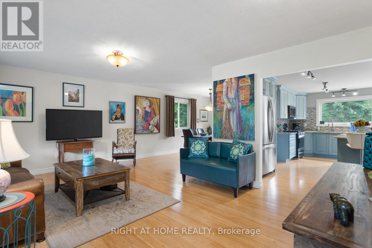 Hit the breaks, stop the car and check out this property offering a lifestyle you will absolutely love! Just steps from the Burnt River, on a four season road and near ATV and snowmobile trails, you will find this spacious and updated bungalow. Sitting on just over an acre, bursting with mature trees and an abundance of privacy, this year round home features a large and bright living room, open to the spacious dining room with large openings to the custom kitchen. The primary bedroom boasts a 4 piece ensuite bath and walk-in closet. In addition, this home affords two further bedrooms and a second four piece bathroom. Walk out from the kitchen to the full width two-tiered deck and enjoy this private retreat. Having guests over? They will love the separate 16' x 12' studio/bunkie with its own basement, pony panel, heat pump, metal roof and amazing loft with glass railing, adding a ton of extra livable space. You will also appreciate the 12' x 16' workshop with metal roof because you can never have too much storage! So many updates throughout: triple glazed windows, heat pumps, studio/bunkie, shed, two gazebos, canoe rack and more! Sit back and watch the video to see all this incredible property has to offer! (id:43681)