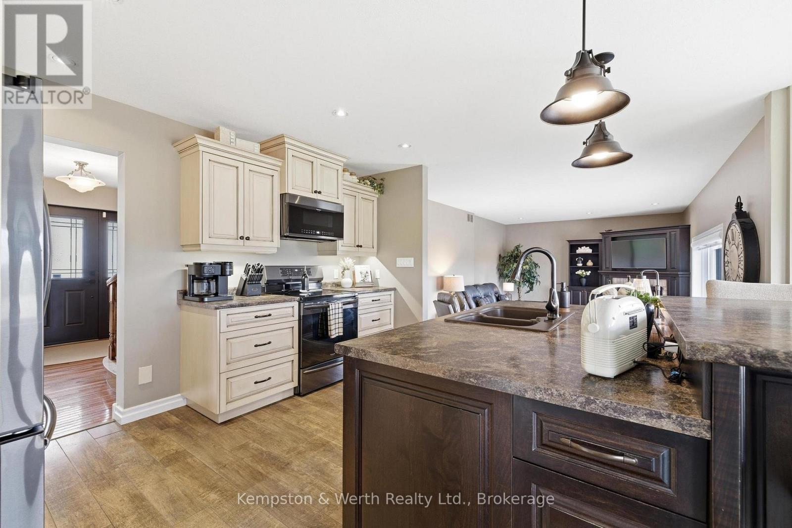 Welcome to 890 Perkin Crescent in Listowel, where timeless charm meets thoughtful updates in one of the area's most established, family-friendly neighbourhoods. This is the kind of street that feels like a throwback, quiet, connected, and full of life-where neighbours know each other and kids play freely, creating a true sense of community that's increasingly hard to find. Built in 1984 and meticulously cared for by the same owners for over 20 years, this home offers peace of mind with an extensive list of upgrades. Recent improvements include a new roof, and concrete driveway (2021), full electrical upgrade and attic insulation (R55) (2020), new siding and eavestroughs (2024), plus key updates in 2025 including a high-efficiency 3-ton furnace with heat pump, main floor windows, kitchen appliances, water softener, hot water tank, and fireplace, making this a truly move in ready home with major systems already taken care of. Step inside to a bright and welcoming sitting room with a bay window that fills the space with natural light, flowing seamlessly into the dining area and open-concept kitchen with island and abundant cabinetry, all overlooking a private backyard ideal for both relaxing and entertaining.The main floor also features a convenient powder room, laundry, and access to a fully heated 2.5-car garage. Upstairs offers four generously sized bedrooms, including a primary suite with walk-in closet and updated ensuite, plus a second five-piece bathroom designed with family living in mind.The lower level presents a blank canvas with endless potential-whether you envision a cozy rec room, home gym, or additional living space, the opportunity is yours to create.This is more than just a house, it's a home that has been thoughtfully updated, carefully maintained, and designed for real life. From the welcoming curb appeal to the private backyard and family focused layout, 890 Perkin Crescent is the kind of property that doesn't come along often. (id:43681)