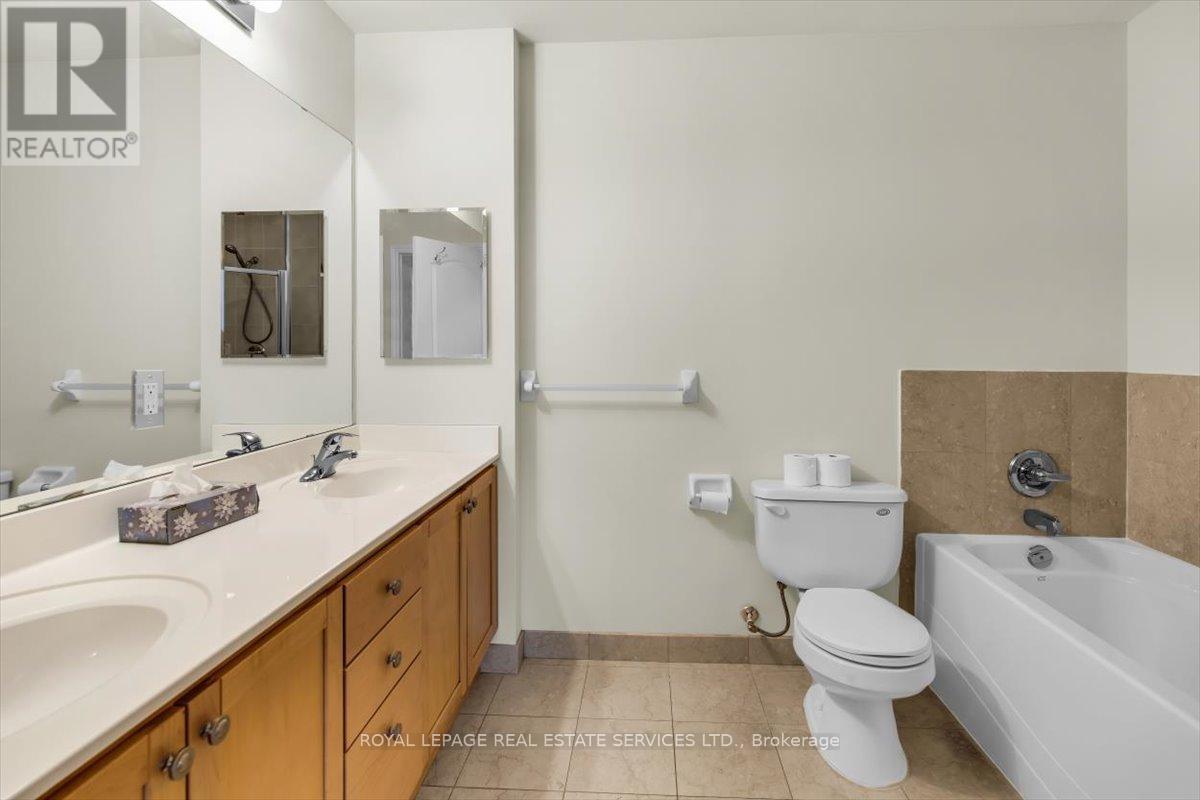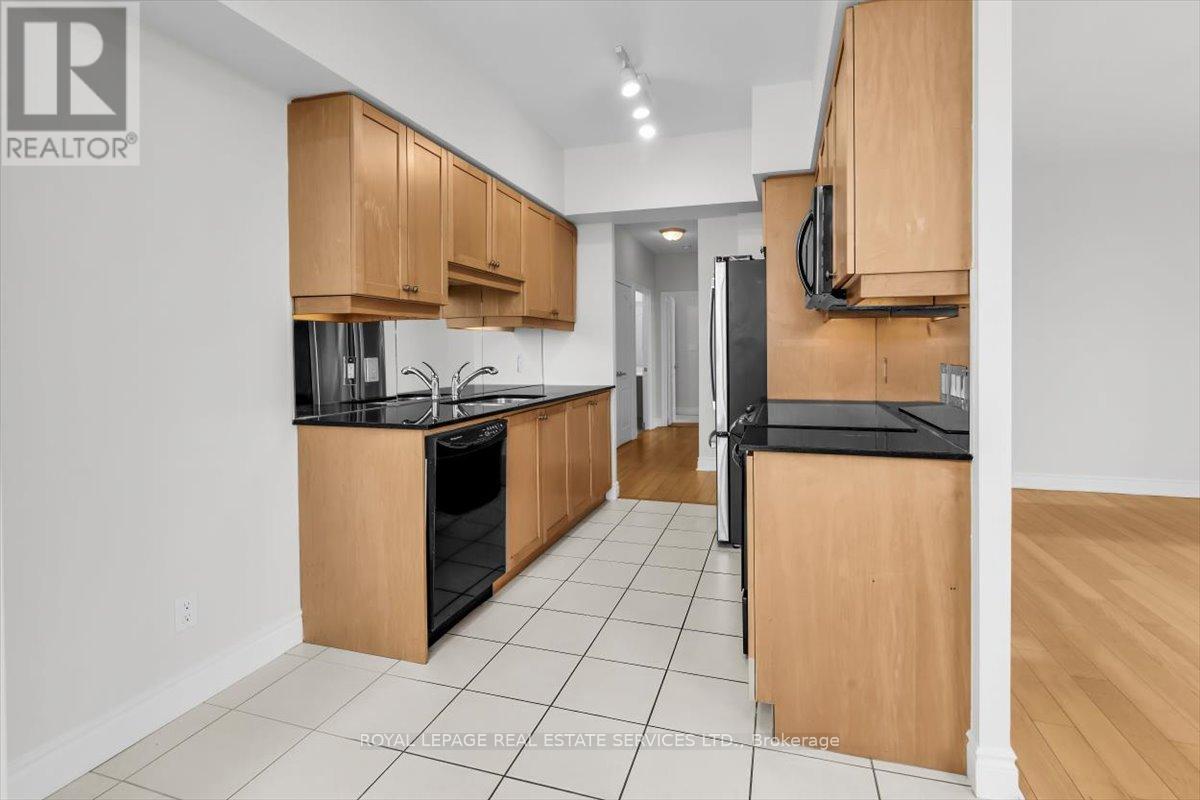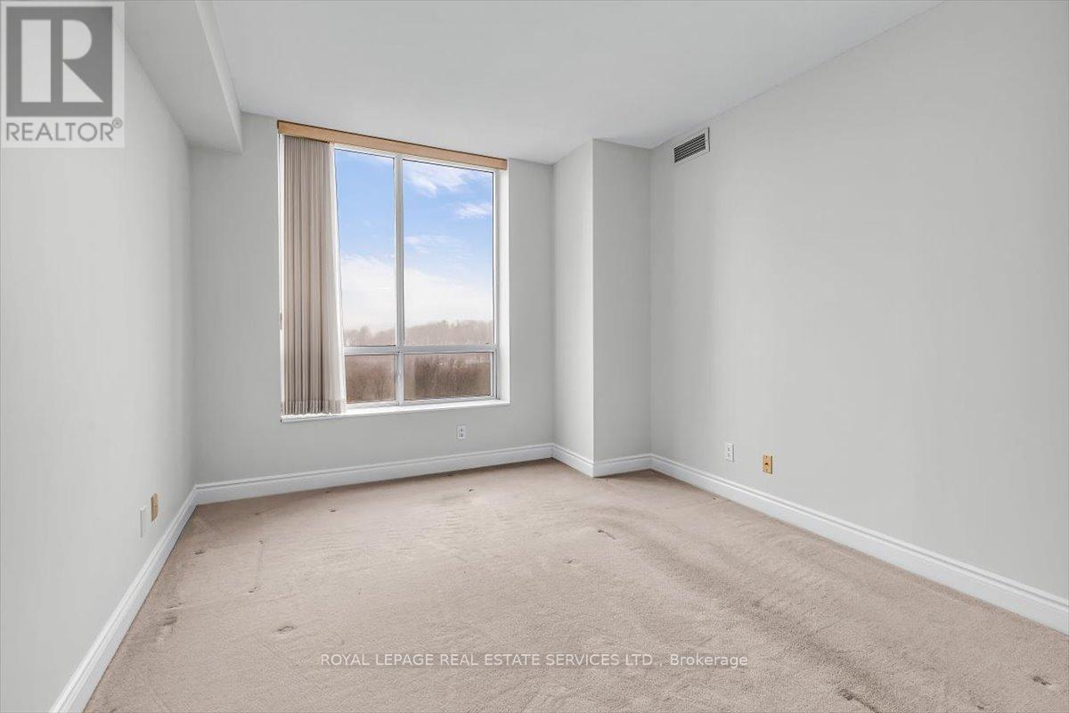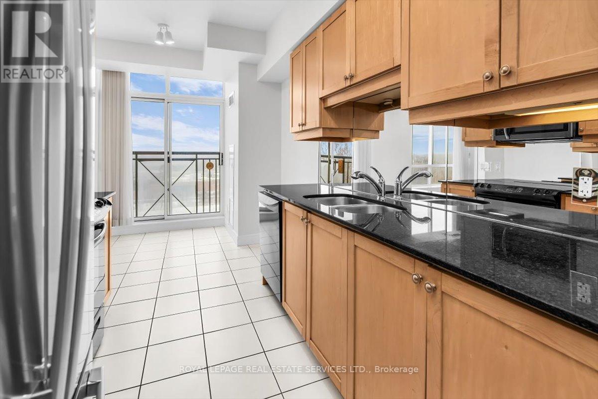 Welcome to Suite 906 at 1105 Leslie Street, a spacious and well-designed condominium offering approximately 1,350 square feet of comfortable living space in a peaceful North York setting. Ideally located near the Don Valley Parkway, this address provides quick access to downtown Toronto while being surrounded by green space, parks, and the scenic Don Valley trail system. Residents also enjoy convenient access to the Shops at Don Mills, grocery stores, cafés, and public transit. Inside, the suite offers a thoughtfully planned layout that balances generous living areas with comfortable private spaces. The expansive living and dining room is filled with natural light from large windows and provides walk-out access to an impressive 30-foot balcony, a wonderful extension of the living space and ideal for relaxing or entertaining while enjoying open treetop views. The kitchen is designed in a practical galley style with granite countertops, ample cabinetry, tile flooring, and full-size appliances, providing excellent storage and workspace. The adjacent dining area sits beside large windows and balcony access, creating a bright and inviting space for everyday meals. Two well-proportioned bedrooms provide comfortable retreats within the home. The primary bedroom offers generous proportions, broadloom flooring, a walk-in closet, and a spacious ensuite bathroom with double vanity and glass-enclosed shower. The second bedroom also includes broadloom and a large window bringing in natural light. A separate den enclosed with French doors and finished with laminate flooring provides excellent flexibility as a home office, study, or reading room. Additional conveniences include a second full bathroom with double vanity, in-suite laundry, and generous storage throughout. Residents enjoy a range of building amenities designed for both convenience and recreation, including concierge, gym, sauna, theater room, party & games room, hobby room and beautifully landscaped grounds. (id:43681)