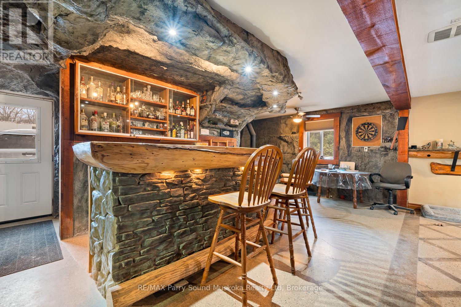 Rare 12.25-acre waterfront package on quiet Murdoch Lake, offering an incredible 915 ft of shoreline just 10 minutes south of Parry Sound. Well-treed and nicely tucked away, the property delivers privacy, space, and beautiful lake views. The main house on the lake is a a solid 2-bedroom home, plus an unfinished half that has been taken back to the studs, ready for whatever direction you want to take it. The standout feature is the massive 4,400+ sq ft detached shop/studio with in-floor heat, multiple access points, office space, a finished upper level, and a picturesque "man-cave". Ideal for contractors, hobbyists, or home-based businesses, with plenty of functional space and flexibility throughout the property. Property also includes a second detached double garage. A rare, versatile waterfront offering with strong residential, recreational, or workspace potential. Use it as-is, complete the remaining finishes, or reimagine it to suit your needs. (id:43681)