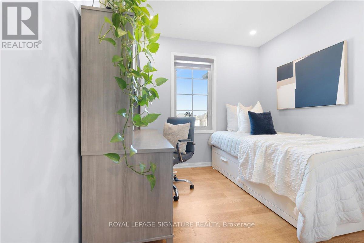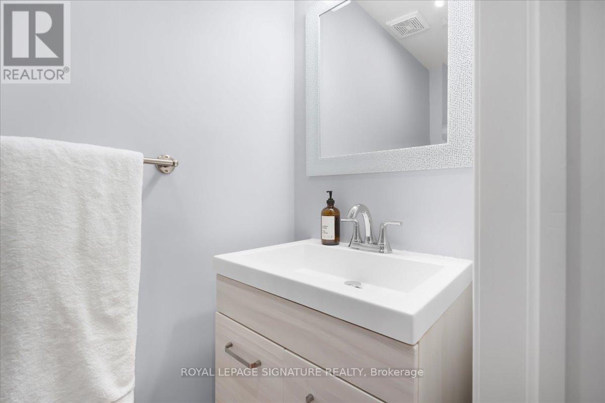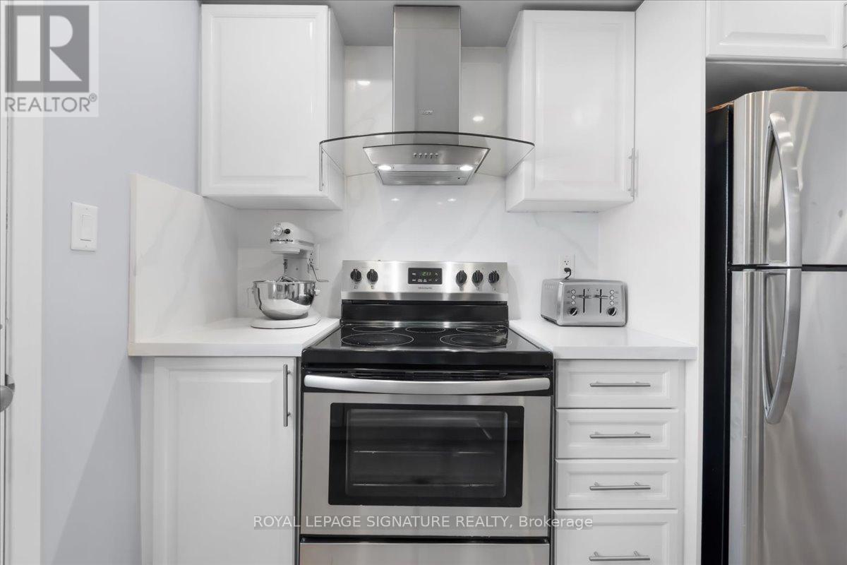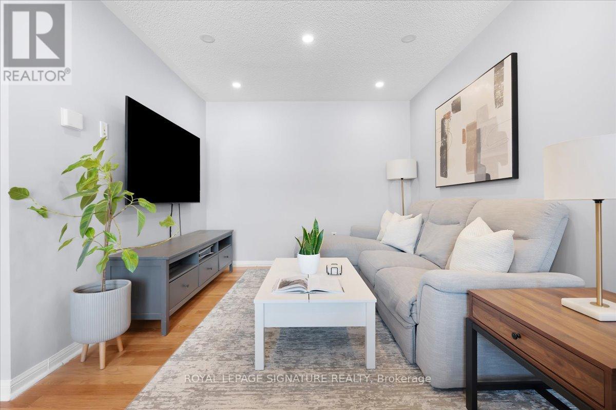 Welcome to this beautifully updated freehold townhome offering the perfect blend of style, function, and location. With over 900 square feet of thoughtfully designed living space, this home is an ideal condo alternative - without the monthly maintenance fees. Featuring 2 spacious bedrooms and 2 fully renovated modern bathrooms, this home has been tastefully updated throughout. The sleek, modern kitchen showcases contemporary finishes, ample cabinetry, and an eat-in breakfast bar that seamlessly connects to the open-concept dining and family room - perfect for entertaining or everyday living. Step out onto your private balcony and enjoy one of this home's most unique features: unobstructed views overlooking scenic trails. Enjoy your morning coffee or evening meal in peaceful privacy - no direct views into neighbouring townhomes, making this a premium unit. Additional highlights include; attached 1-car garage, 2 additional driveway parking spaces, Functional, efficient layout ideal for first-time buyers, downsizers, or investors, Freehold ownership with no condo fees! This is low-maintenance living without compromise - modern updates, generous parking, and a rare setting fronting onto trails, all in one exceptional package. (id:43681)