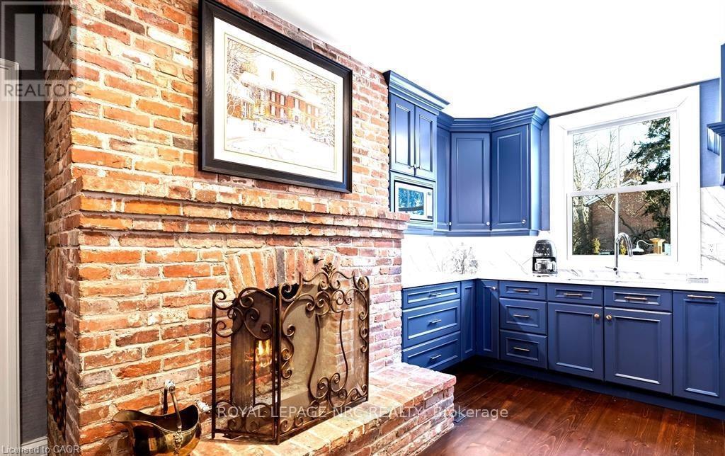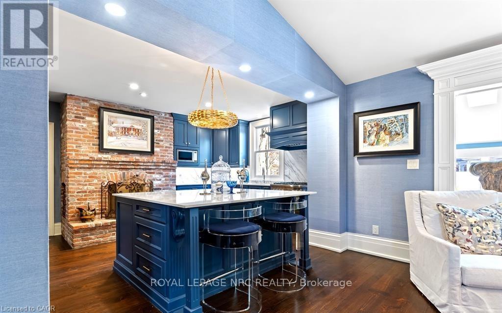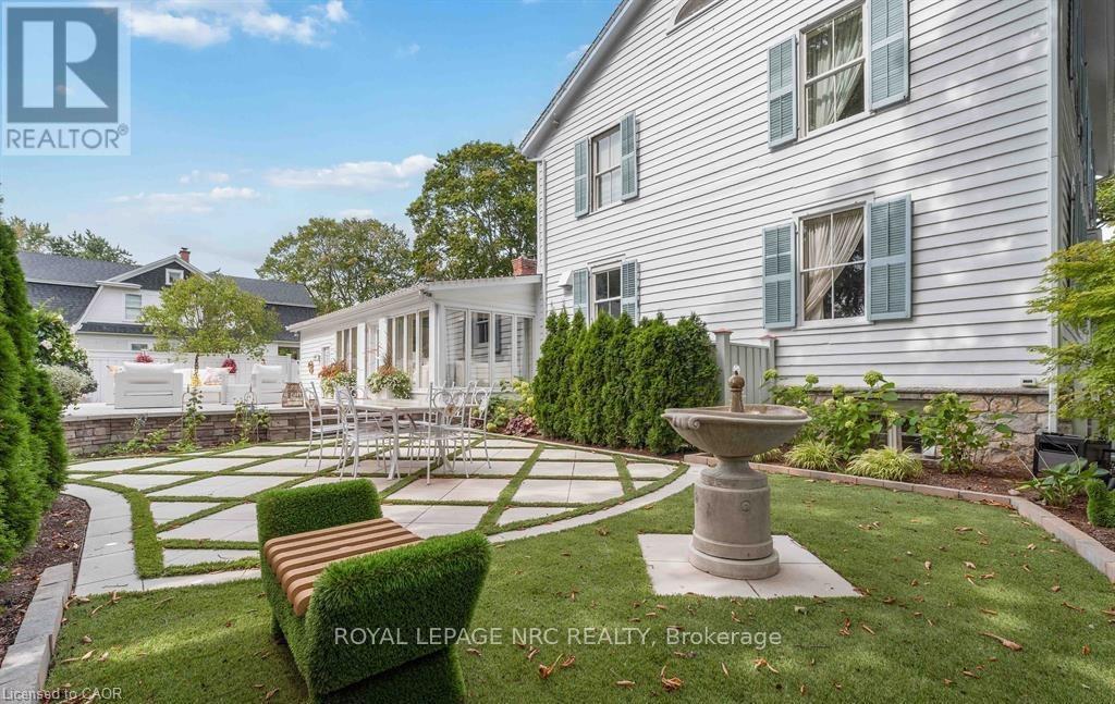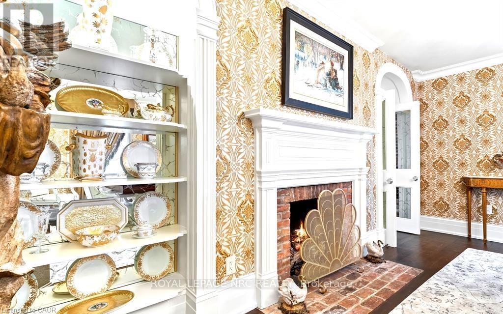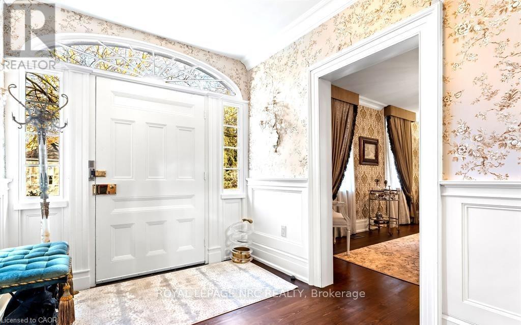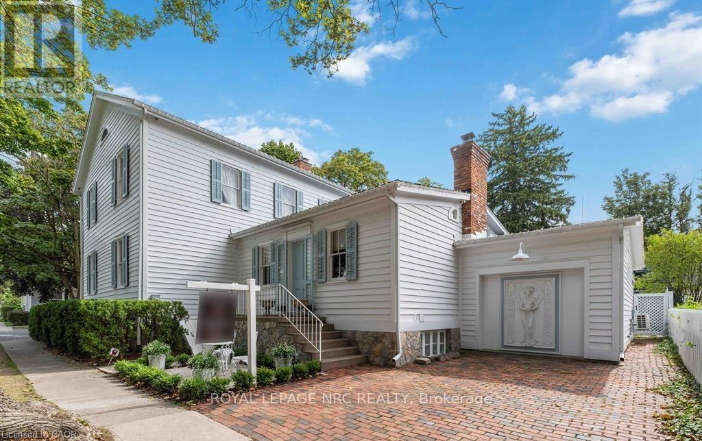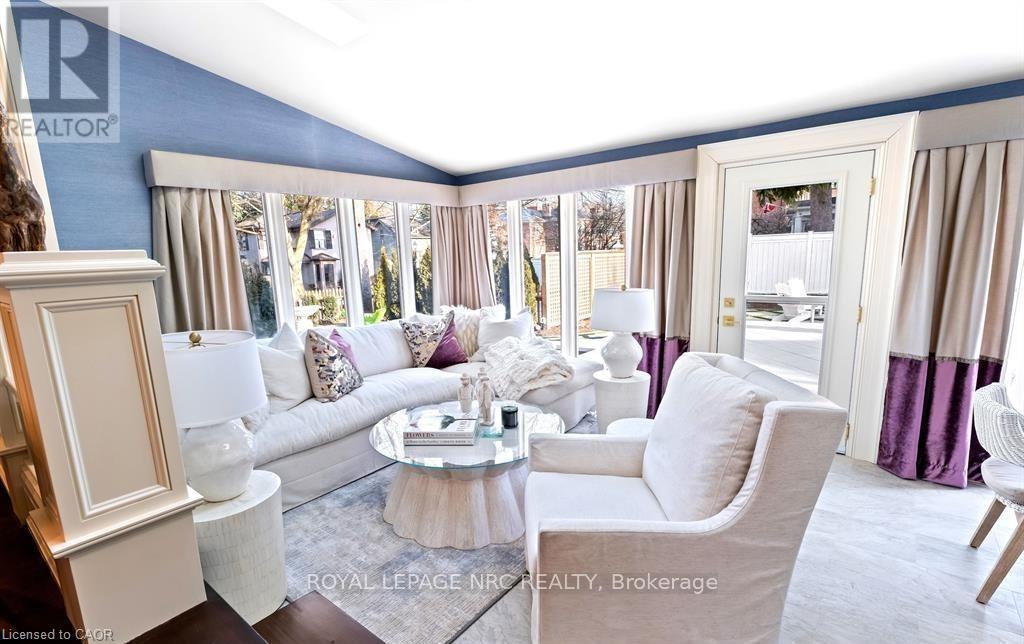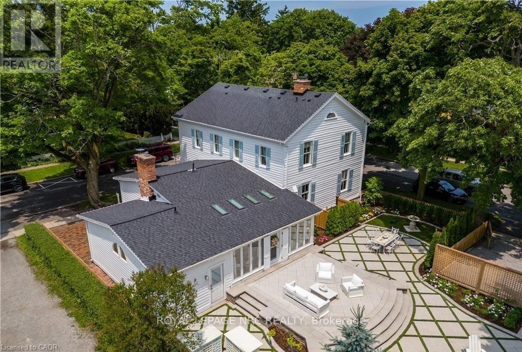 Located in one of the most desirable areas of Old Town, beautiful marriage of old-world charm and modern upgrades. Walk to iconic Queen St. with its boutiques, restaurants and theatres or take a short stroll to the waterfront. Enjoy the serenity of Queen's Royal Park or play a round of golf at Canada's oldest golf course. This home showcases stunning decor such as designer light fixtures, custom drapes, valances and luxurious wall coverings. Enter through the antique door into the elegant front entry with gleaming hardwood floors throughout. The formal dining room is sheer opulence with its antique chandelier set in a plaster ceiling medallion, decorative built-in shelving and fireplace with hand-crafted mantle. The grand living room features a beautiful archway with custom millwork set between coffered ceilings with designer brass fixtures, built-in bookcase and buffet with accent mirrored wall. Bright and airy, the kitchen is definitely the heart of the home with 5 stainless steel appliances, center island, quartz countertops, Nantucket grey cabinetry, heated floors and cozy fireplace. Spacious family room with its comfortable seating centered around a fireplace with hand-crafted mantle and soaring vaulted ceiling with contemporary bubble chandeliers. A gorgeous sunken sunroom which offers floor-to-ceiling windows and 4 skylights overlooking the jaw-dropping two-tiered yard. Main floor guest retreat with ensuite. The Grand Victorian staircase features designer runner and custom wainscotting leading to the elegant and spacious landing. Each of the 3 bedrooms have beautiful hardwood flooring, the Primary bedroom with private water closet and spa-like ensuite bath with heated herringbone tile, sumptuous soaker tub, walk-in glass rain shower. Second and third bedrooms share a bath with heated marble flooring and custom vanity. A cozy rec-room and 2nd kitchen in the lower level completes this charming home. (id:43681)