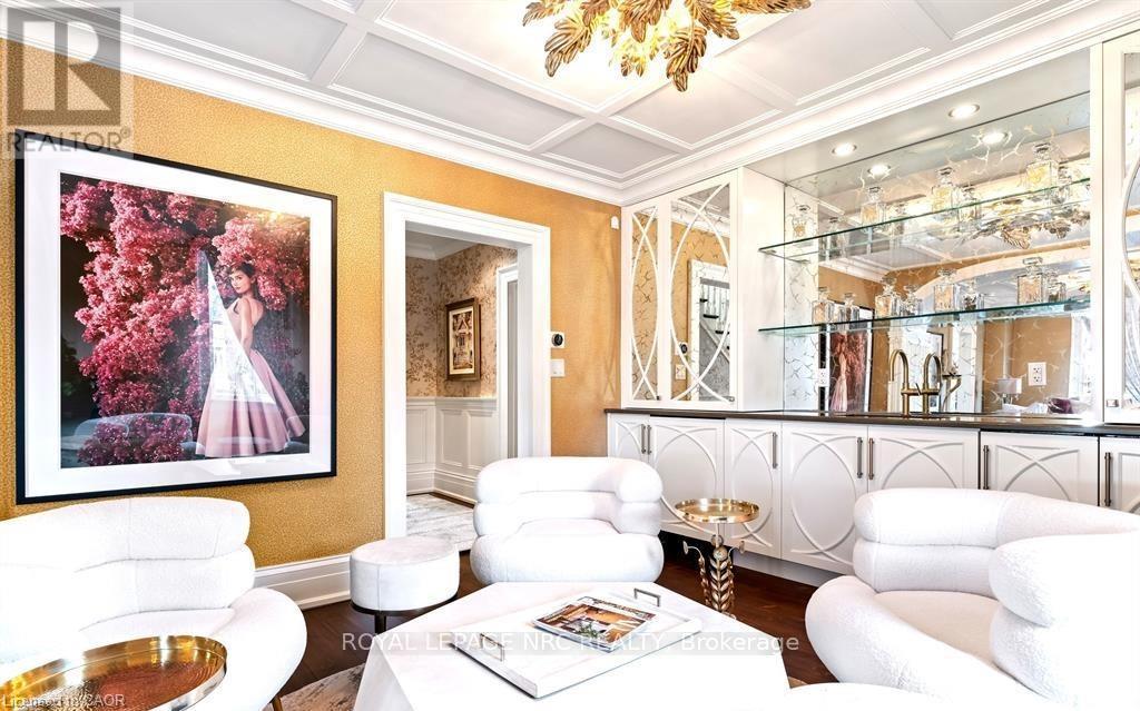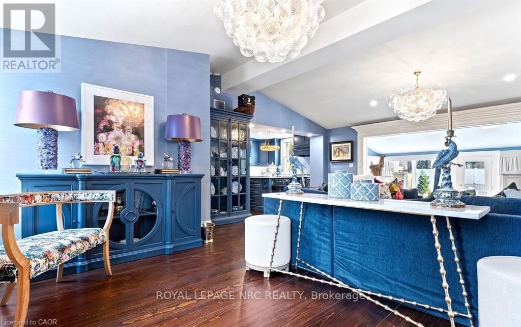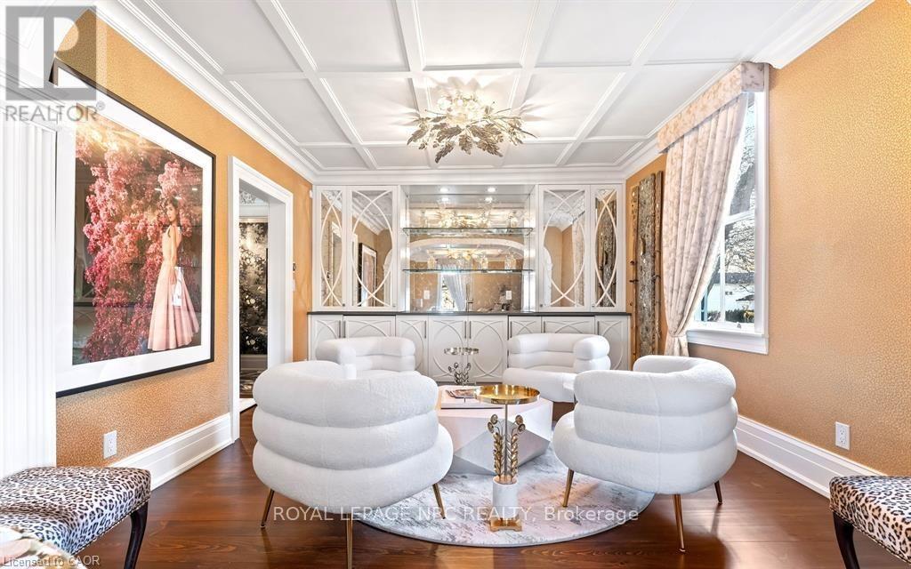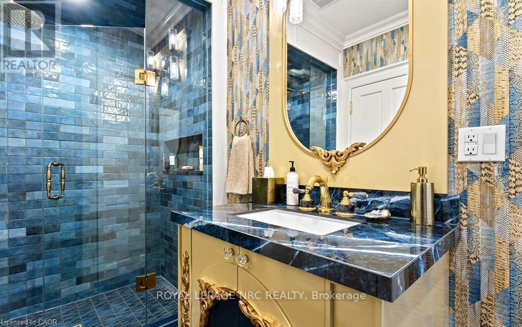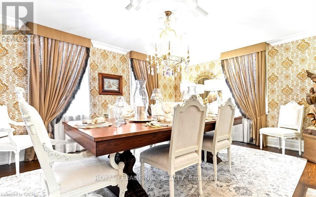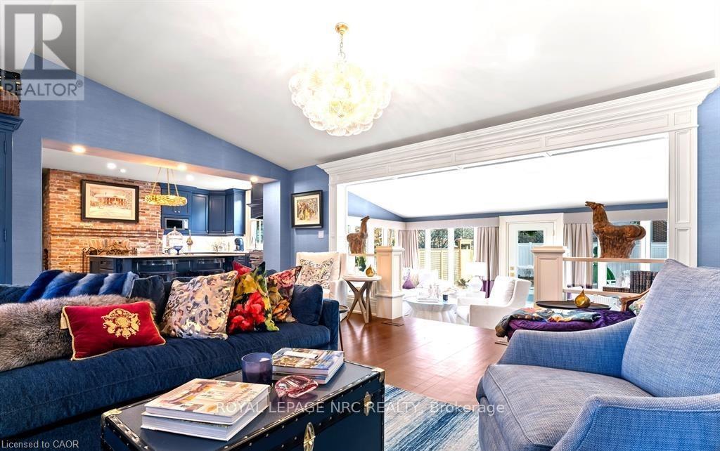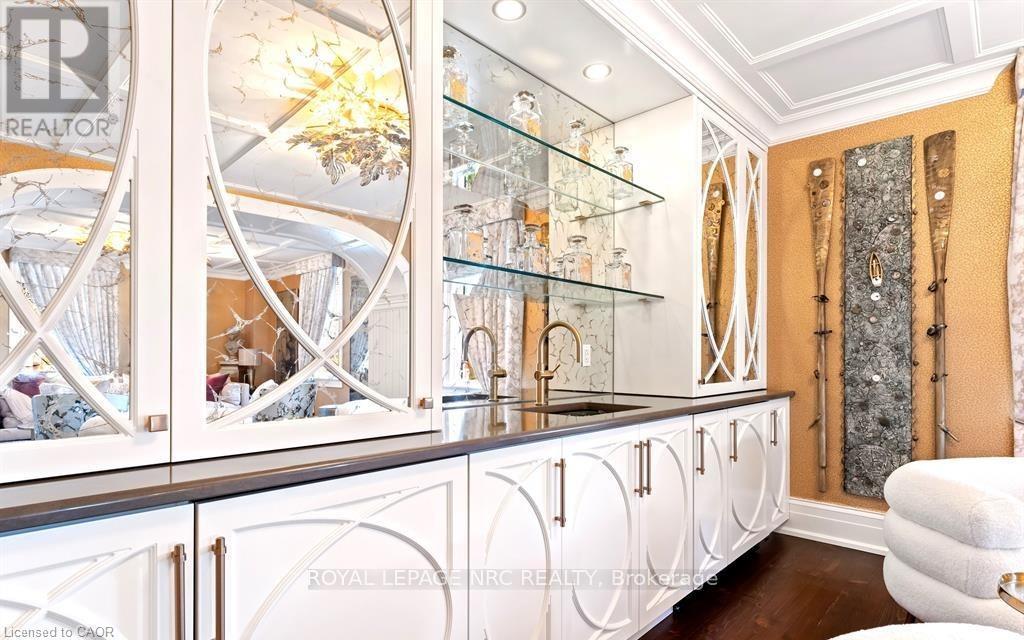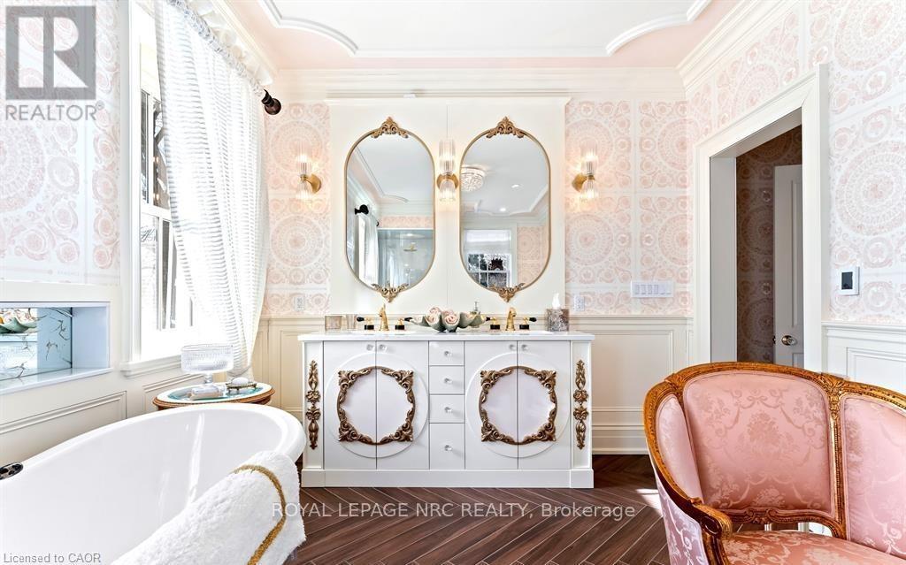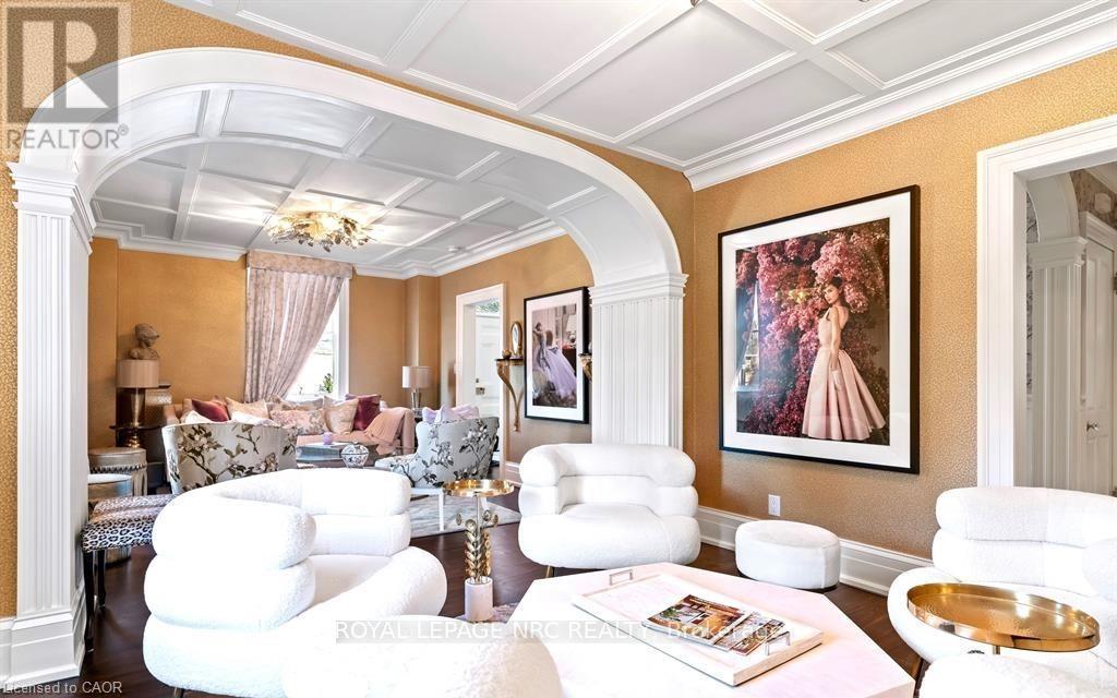 Located in one of the most desirable areas of Old Town, beautiful marriage of old-world charm and modern upgrades. Walk to iconic Queen St. with its boutiques, restaurants and theatres or take a short stroll to the waterfront. Enjoy the serenity of Queen's Royal Park or play a round of golf at Canada's oldest golf course. This home showcases stunning decor such as designer light fixtures, custom drapes, valances and luxurious wall coverings. Enter through the antique door into the elegant front entry with gleaming hardwood floors throughout. The formal dining room is sheer opulence with its antique chandelier set in a plaster ceiling medallion, decorative built-in shelving and fireplace with hand-crafted mantle. The grand living room features a beautiful archway with custom millwork set between coffered ceilings with designer brass fixtures, built-in bookcase and buffet with accent mirrored wall. Bright and airy, the kitchen is definitely the heart of the home with 5 stainless steel appliances, center island, quartz countertops, Nantucket grey cabinetry, heated floors and cozy fireplace. Spacious family room with its comfortable seating centered around a fireplace with hand-crafted mantle and soaring vaulted ceiling with contemporary bubble chandeliers. A gorgeous sunken sunroom which offers floor-to-ceiling windows and 4 skylights overlooking the jaw-dropping two-tiered yard. Main floor guest retreat with ensuite. The Grand Victorian staircase features designer runner and custom wainscotting leading to the elegant and spacious landing. Each of the 3 bedrooms have beautiful hardwood flooring, the Primary bedroom with private water closet and spa-like ensuite bath with heated herringbone tile, sumptuous soaker tub, walk-in glass rain shower. Second and third bedrooms share a bath with heated marble flooring and custom vanity. A cozy rec-room and 2nd kitchen in the lower level completes this charming home. (id:43681)