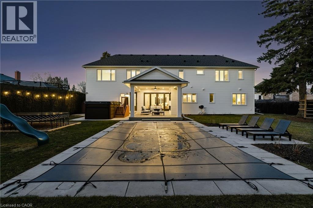 Gorgeous modern farmhouse on a rare double lot on a beautiful tree-lined street in desirable Aldershot. This exceptional home was rebuilt from the foundation up, offering the quality and comfort of true new construction with timeless design and luxury finishes throughout. Featuring a stunning off-white Hardie board exterior, 9-ft ceilings and remote motorized blinds throughout, the home blends elegance with modern convenience. The beautiful open plan kitchen, living and dining room is perfect for entertaining, offering a bright and airy layout designed for everyday living. Offering 5 bedrooms and 6 bathrooms, this spacious home easily accommodates family and guests. The bedrooms include a convenient ground floor guest suite with ensuite, perfect for visitors or for those who prefer to avoid stairs.The double garage includes a bonus workshop or additional storage space at the rear, ideal for hobbyists or extra organization. The backyard is a private retreat with a saltwater pool featuring full-length steps and a separate swim spa, creating the ultimate space for relaxation and entertaining. Just minutes to scenic walking trails, the marina, Burlington Golf & Country Club, Go Train Station and excellent schools, this exceptional property combines luxury living with an unbeatable location. (id:43681)