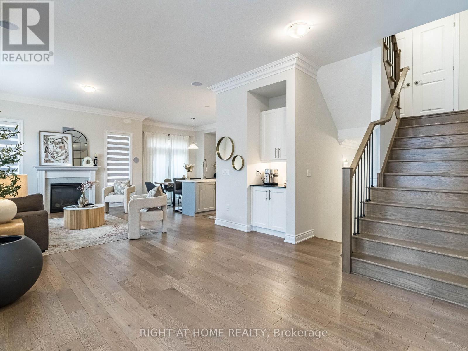 Beautiful Valery home with 4 + 1 bedrooms, 5 bathrooms, offering approx. 3400 sq ft including professionally finished basement by the builder. Extensive upgrades including, engineered hardwood flooring, plaster Crown Moulding throughout main Fl and upper hallway, 10 & 9 ceilings, great room with fireplace, upgraded tiles on main fl. surround system on main Fl, beautiful kitchen with quartz counters, quartz backsplash, breakfast counter and top of the line Jenn-Air SS appliances, gas stove and gas oven.. Enlarged basement windows & rough-in for wet bar. 2nd floor laundry room. All upstairs bedrooms have ensuite bathrooms & the primary bedroom with luxe 5-piece ensuite soaker tub & glass shower. Close to schools, hospital Hwy, parks and lots more. Incredible value here! 10+! **EXTRAS** Some Furniture can be included please ask LA. (id:43681)