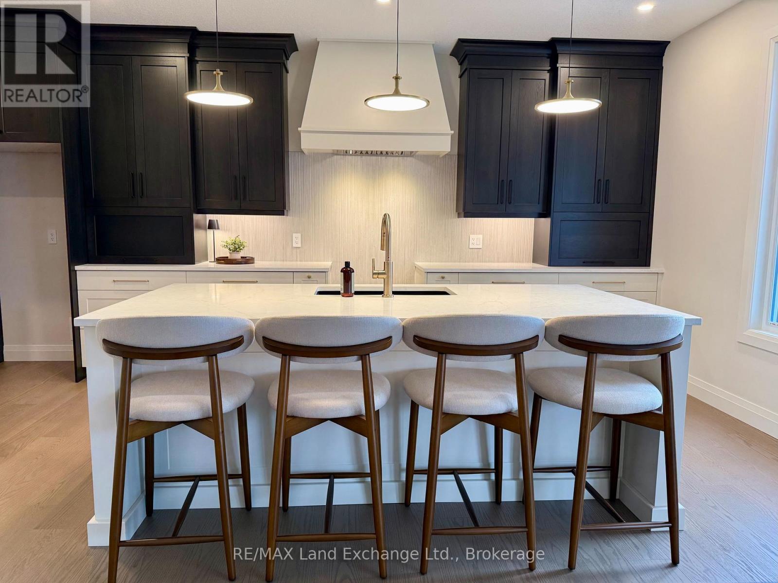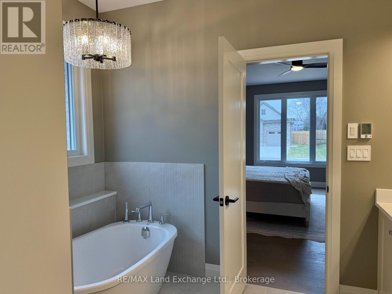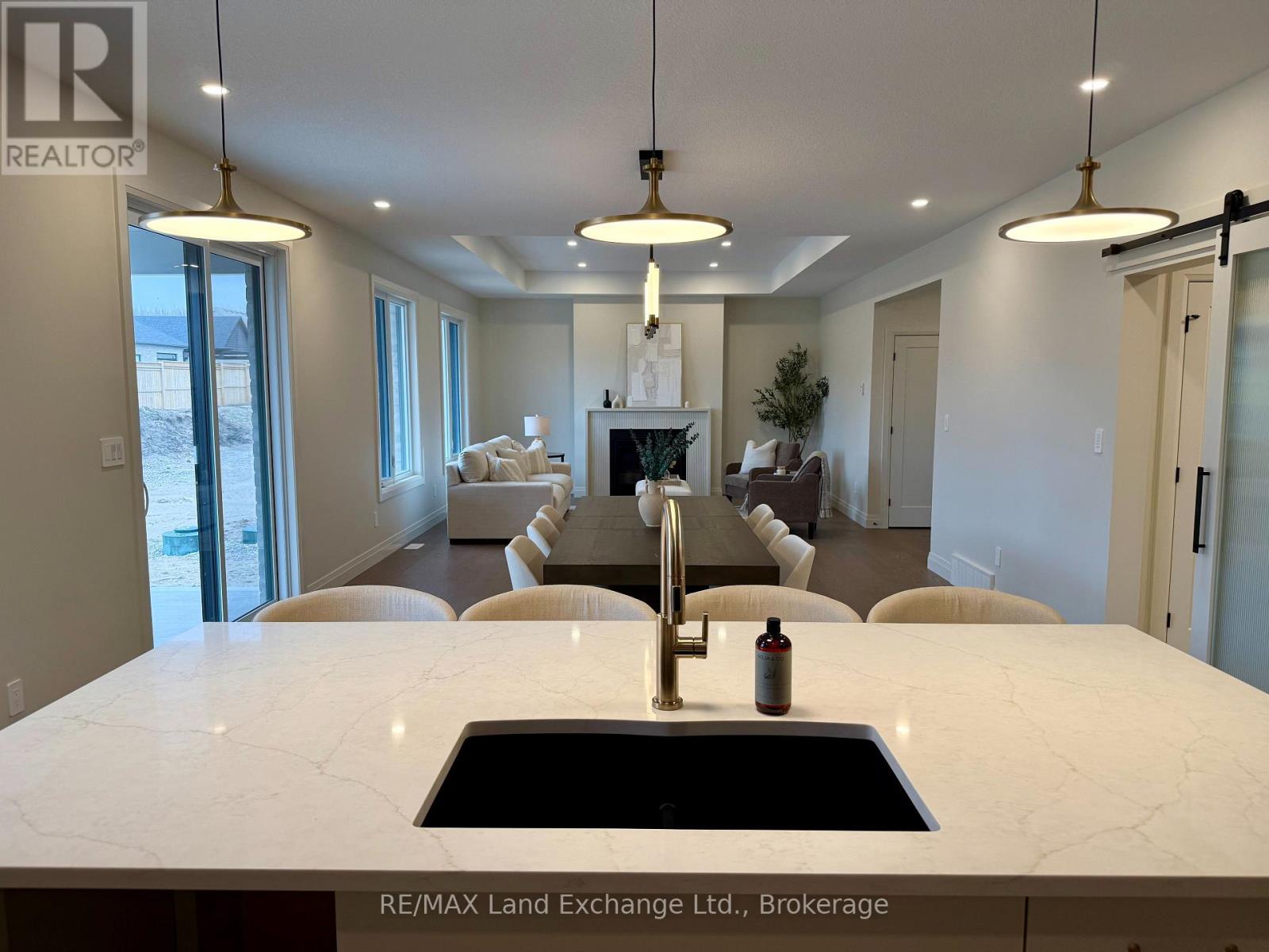 Introducing 964 Bogdanovic Way, a beautifully designed 1 1/2 storey newly built home in Crimson Oak Valley Subdivision! Located just south of Kincardine, this highly sought-after enclave of executive style residences features estate sized lots, only a short stroll away from the breathtaking beaches of Lake Huron. The ornate roof lines, brick and stucco facade, together with the gracious front porch, add to the stunning curb appeal. Combining elegance and style with functionality, this popular floor plan offers open plan living with just over 2800 sq ft on 2 finished levels. The bright and welcoming foyer leads to a private study or den, and a 2 pc powder bath for guests. The space flows effortlessly into the great room with 10' tray ceilings, gas fireplace, and spacious dining area with a walk-out to the covered 16x14 back porch. The kitchen is a chef's delight, with a large centre island and pantry, providing the perfect space for family meals and entertaining. The main floor primary suite is situated at one end of the house, ensuring privacy and separation from the main living space. The adjoining 5 pc ensuite bath with soaker tub and large walk-in closet complete this luxurious retreat. Upstairs you will find 3 additional bedrooms that share a spacious 4 pc bath, a large hall linen closet and a loft space - the ideal spot for bookshelves, a cozy reading chair, or maybe an extra desk for a quiet homework zone. The laundry room is combined with the mud room, offering storage and functionality, with easy access to the double car garage. The unfinished basement is a blank canvas for your imagination - a future rec room for movie nights, additional bathroom, office, or gym and can be finished by the builder if desired. Completing this thoughtfully crafted home are engineered hardwood and ceramic tile floors, quartz countertops, stylish light fixtures and designer touches throughout, as well as concrete driveway, walkway and sodded yard. (id:43681)