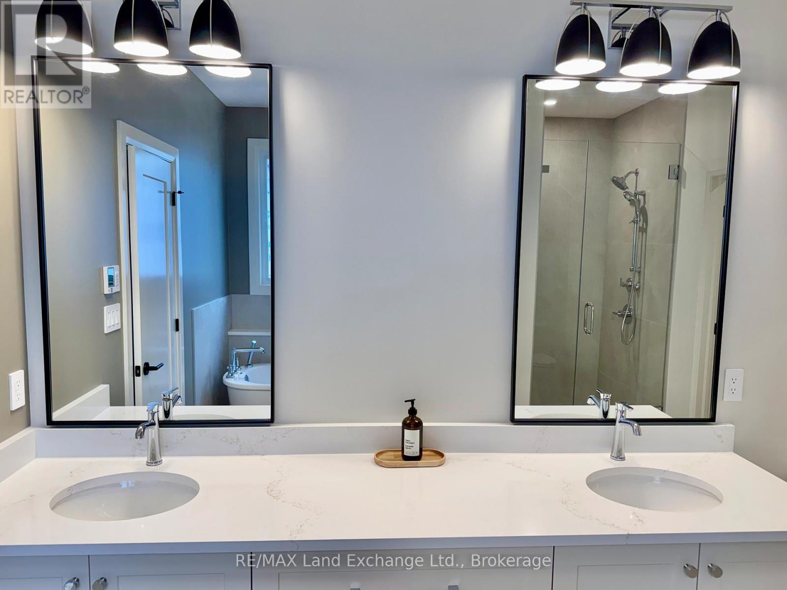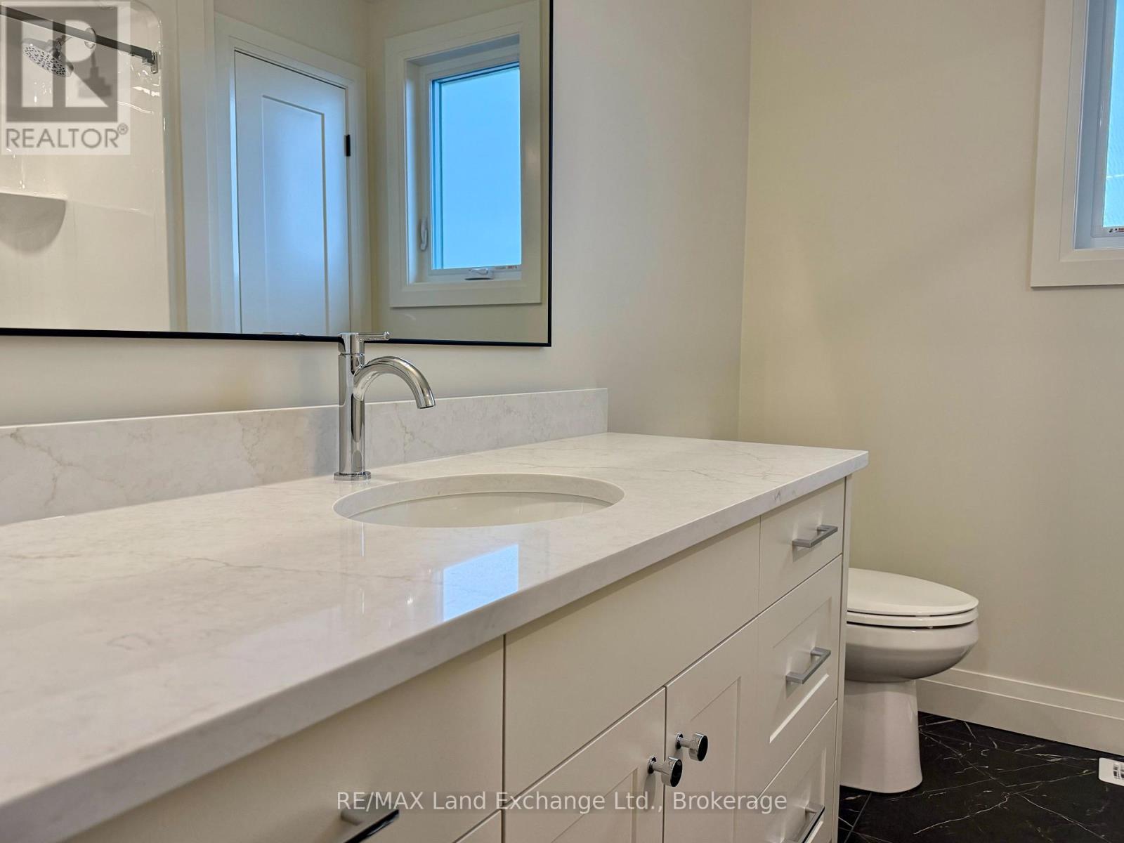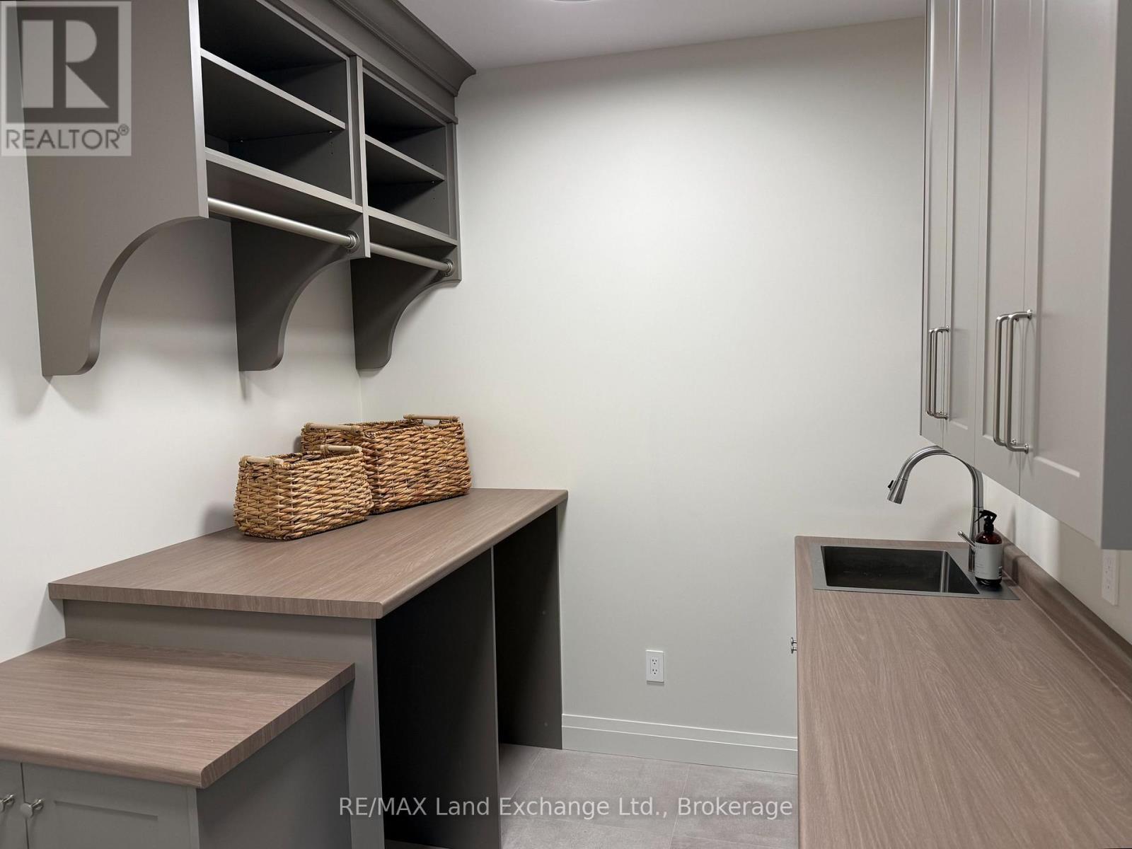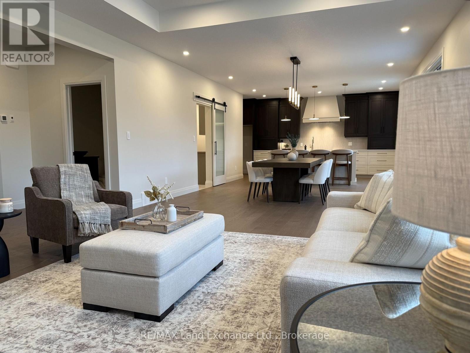 Introducing 964 Bogdanovic Way, a beautifully designed 1 1/2 storey newly built home in Crimson Oak Valley Subdivision! Located just south of Kincardine, this highly sought-after enclave of executive style residences features estate sized lots, only a short stroll away from the breathtaking beaches of Lake Huron. The ornate roof lines, brick and stucco facade, together with the gracious front porch, add to the stunning curb appeal. Combining elegance and style with functionality, this popular floor plan offers open plan living with just over 2800 sq ft on 2 finished levels. The bright and welcoming foyer leads to a private study or den, and a 2 pc powder bath for guests. The space flows effortlessly into the great room with 10' tray ceilings, gas fireplace, and spacious dining area with a walk-out to the covered 16x14 back porch. The kitchen is a chef's delight, with a large centre island and pantry, providing the perfect space for family meals and entertaining. The main floor primary suite is situated at one end of the house, ensuring privacy and separation from the main living space. The adjoining 5 pc ensuite bath with soaker tub and large walk-in closet complete this luxurious retreat. Upstairs you will find 3 additional bedrooms that share a spacious 4 pc bath, a large hall linen closet and a loft space - the ideal spot for bookshelves, a cozy reading chair, or maybe an extra desk for a quiet homework zone. The laundry room is combined with the mud room, offering storage and functionality, with easy access to the double car garage. The unfinished basement is a blank canvas for your imagination - a future rec room for movie nights, additional bathroom, office, or gym and can be finished by the builder if desired. Completing this thoughtfully crafted home are engineered hardwood and ceramic tile floors, quartz countertops, stylish light fixtures and designer touches throughout, as well as concrete driveway, walkway and sodded yard. (id:43681)