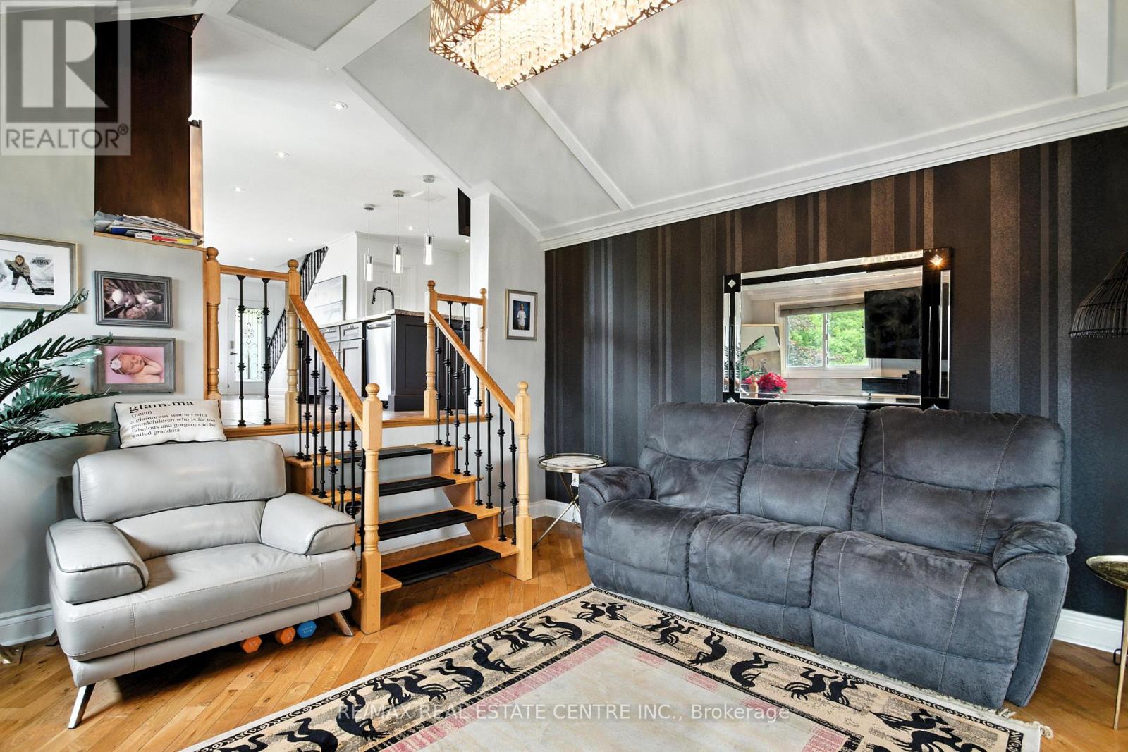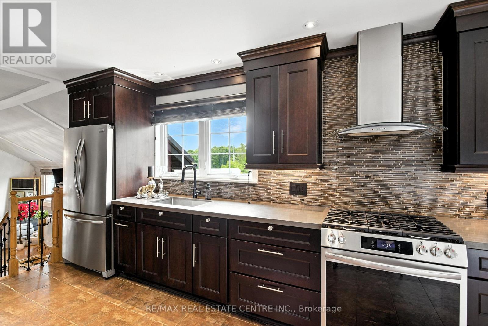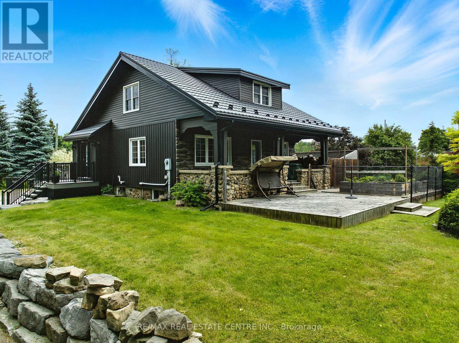 Cottage-syle living just minutes from major urban centres! This well kept, cottage-style, 3 bdrm/2 Washrm approx. 2300 sq. ft 2 storey, summer home that sits aloft a 190 x 200 ft lot, that's best described as "an entertainer's dream" w/ massive backyard that backs onto Glencairn golf course (just up the road from Chudleigh's Farm), a covered deck, outdoor TV & Speaker system, inground pool, games area, fruit trees, detached double car garage w/ heat/hydro workshop, over $150K in imported Stonework and landscaping, raised vegetable gardens,20+ car parking and so much more. The systems of the home are second to none w/ steel-roof, state-of-the-art eavestroughing and lawn irrigation systems, newer windows, furnace and A/C, hardwood flooring throughout, massive kitchen w/ granite counters, matching backsplash, kitchen island, pot-lighting, deep basin sinks, newer SS appliances, skylights, sunken family room w/ fireplace that w/o to backyard deck. Upstairs we have a large primary room with w/i closets, full bathroom and 2 additional bedrooms. With this beauty, there would be not much need to travel as it truly feels like a resort on a hot summer's day. You definitely won't be disappointed! This home is truly worth the drive to Acton and simply won't last long on the market! Book your showing today before its too late! (id:43681)
