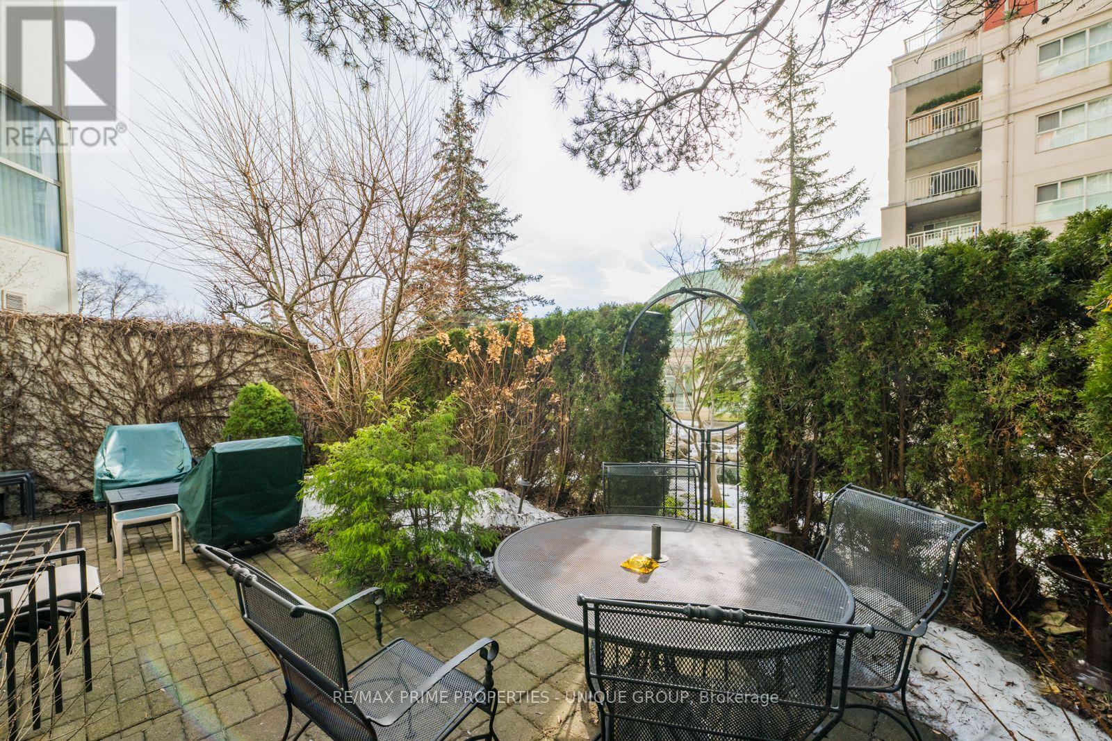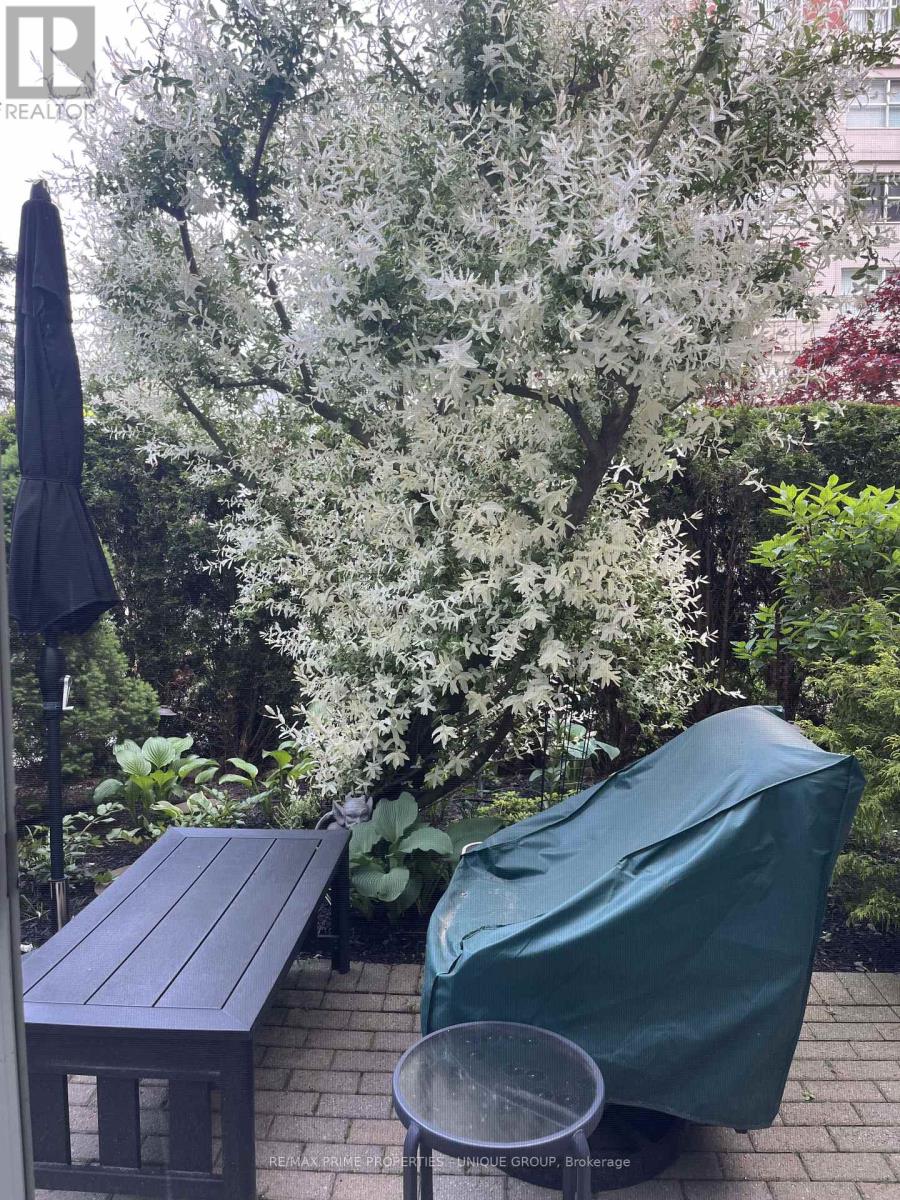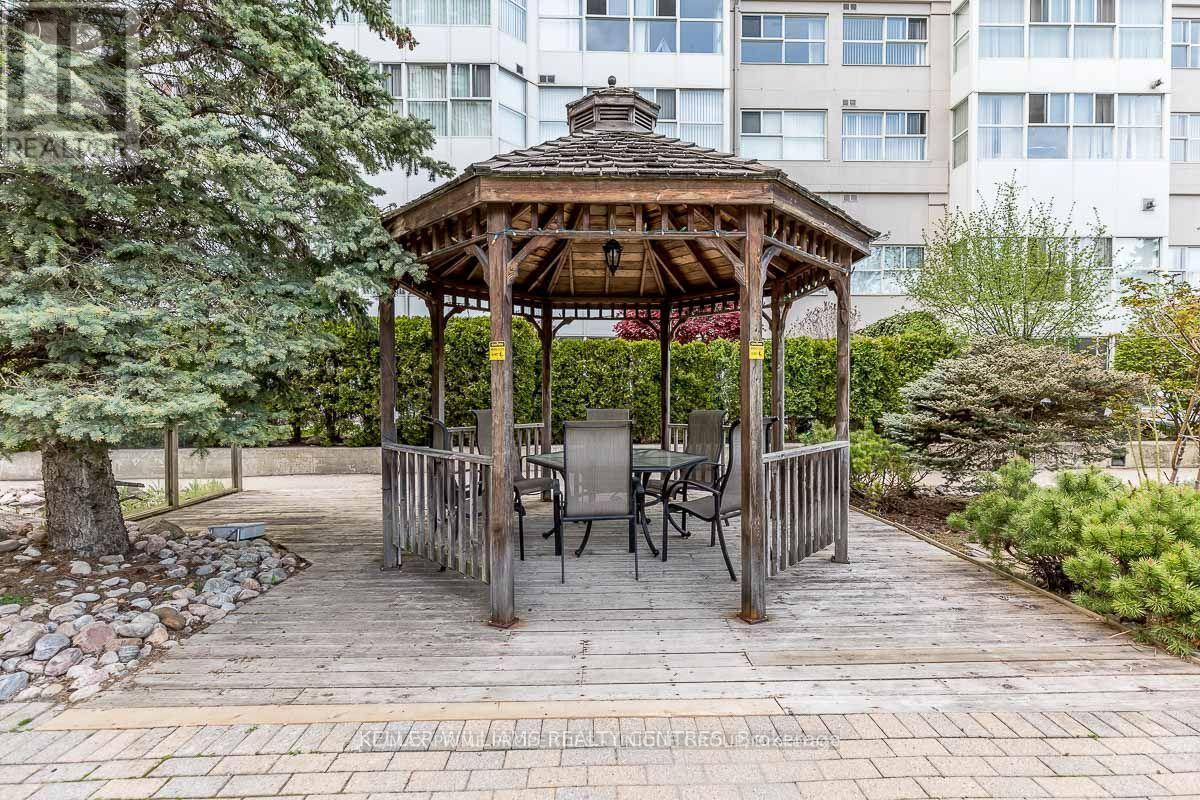 Rarely offered spacious 1 bdrm, 2 bath, approx. 906 SF & generous private patio. Gated building nestled on ravine/protected conservation area offer both an escape and invitation. Few condos offer such unique livability. An entertainer's paradise boasting secluded backyard with substantial private patio, gas BBQ line & personal garden. A true sanctuary and ideal setting for intimate gatherings & lively entertaining. Enjoy summer nights hosting dinners, sunset cocktails, morning coffee or back in the sun. Living rm fireplace adds a warm, relaxing touch for cozy evenings. Well-designed for entertaining with open kitchen connecting seamlessly to liv & din rms. Sunroom currently used as dining rm or use as home office. Floor-to-ceiling windows bring abundant natural light and walk-out leads to serene retreat ~ your own backyard! Garden or lounge on your patio behind the privacy of your trees. Large bdrm fits king bed, has 3 pc enste & 3 closets. Laundry Rm offers x-tra storage, in addition to 3 lockers. Pkg conveniently located on suite level, steps away. No waiting for elevator. Perfect for first time buyers or downsizers looking for comforts of a house. Ste adjacent to landscaped Courtyard & pond. Well-established building cherished for its sense of community and spa like amenities. Residents enjoy whirlpool, indoor salt water pool, gym, billiard and card rms, workshop, fully furnished guest suite. Elegant party room w/full kitchen, wet bar, dance floor, fireplace & terrace. Stunning library filled with excellent assortment of books & videos. Tennis court, car wash bay, dog run and 24 Hr Concierge/Security. Socially active building hosts dinners, parties, BBQs, exercise classes, aqua fit, book club, movie nights and more! Walk to Grocers, Coffee Shops, Aga Khan Centre. Close to Shops at Don Mills, Restaurants, VIP Theatre. LRT Convenient to DVP/401, Hike/Bike. (id:43681)