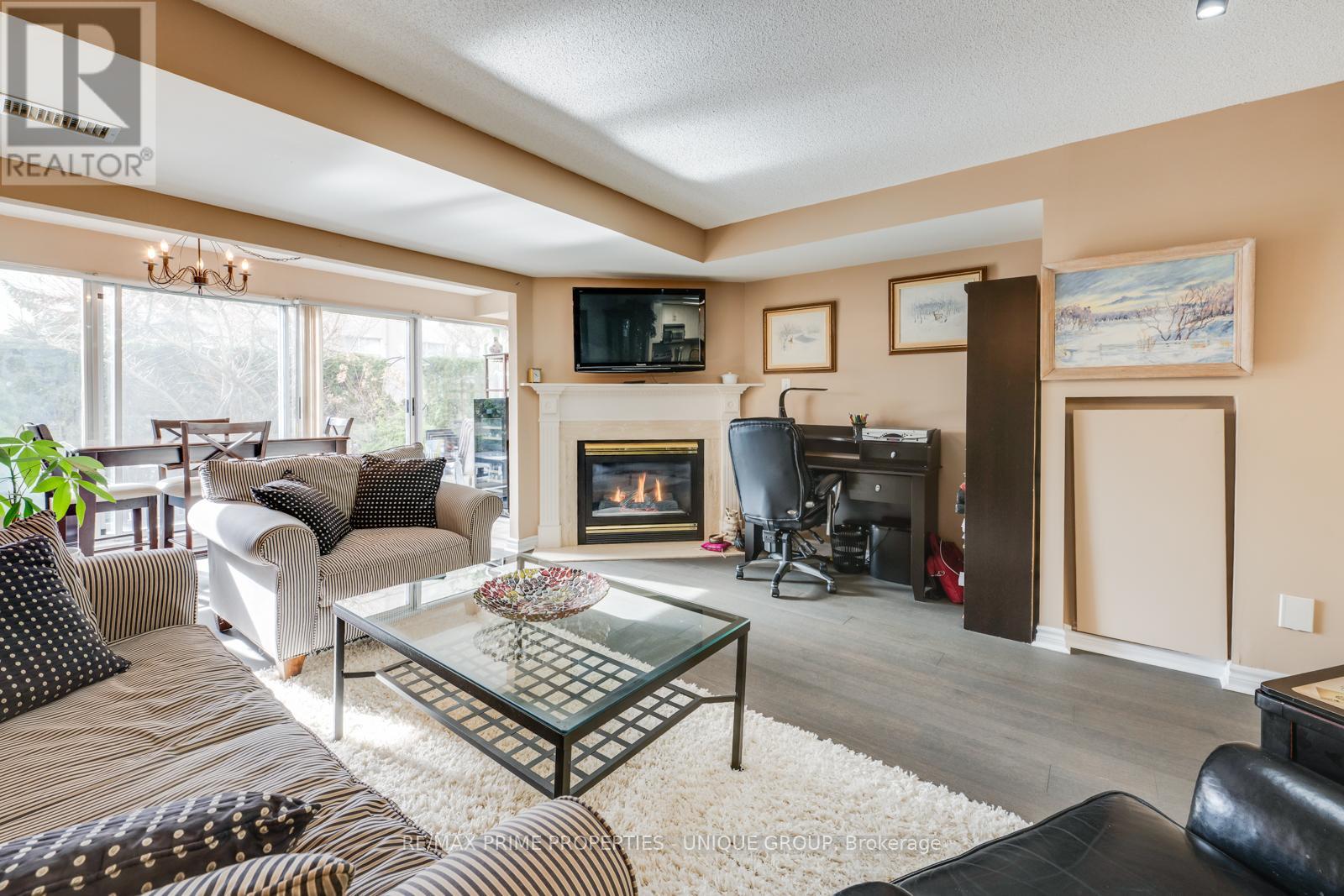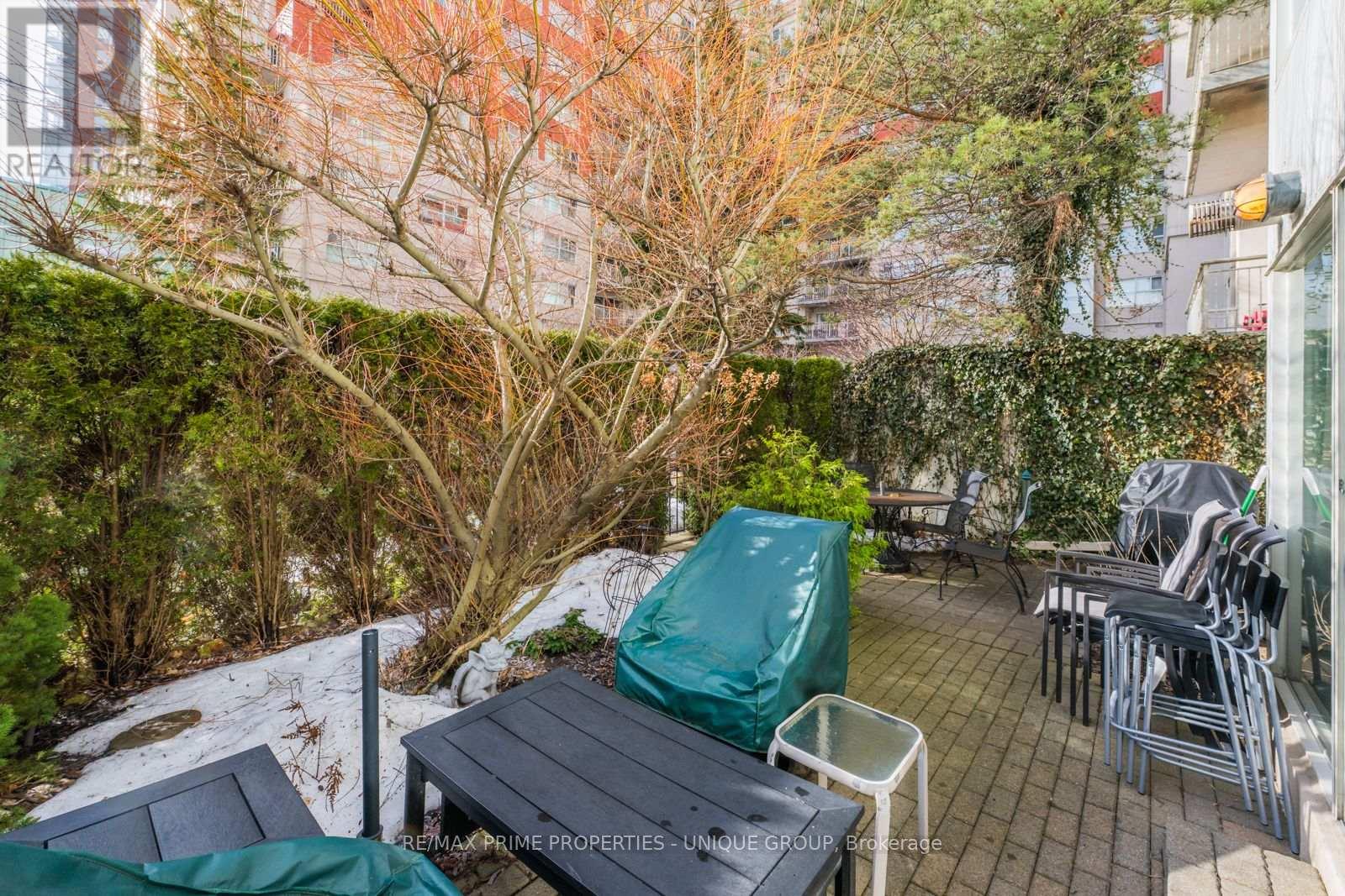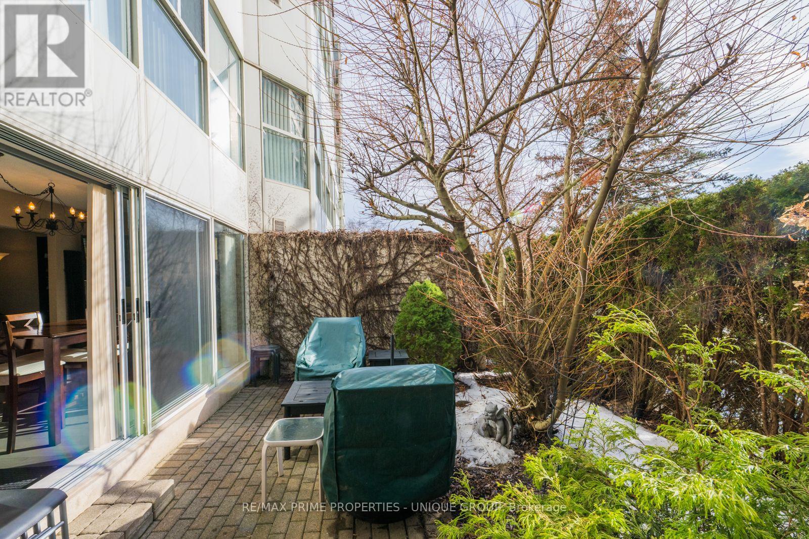 Rarely offered spacious 1 bdrm, 2 bath, approx. 906 SF & generous private patio. Gated building nestled on ravine/protected conservation area offer both an escape and invitation. Few condos offer such unique livability. An entertainer's paradise boasting secluded backyard with substantial private patio, gas BBQ line & personal garden. A true sanctuary and ideal setting for intimate gatherings & lively entertaining. Enjoy summer nights hosting dinners, sunset cocktails, morning coffee or back in the sun. Living rm fireplace adds a warm, relaxing touch for cozy evenings. Well-designed for entertaining with open kitchen connecting seamlessly to liv & din rms. Sunroom currently used as dining rm or use as home office. Floor-to-ceiling windows bring abundant natural light and walk-out leads to serene retreat ~ your own backyard! Garden or lounge on your patio behind the privacy of your trees. Large bdrm fits king bed, has 3 pc enste & 3 closets. Laundry Rm offers x-tra storage, in addition to 3 lockers. Pkg conveniently located on suite level, steps away. No waiting for elevator. Perfect for first time buyers or downsizers looking for comforts of a house. Ste adjacent to landscaped Courtyard & pond. Well-established building cherished for its sense of community and spa like amenities. Residents enjoy whirlpool, indoor salt water pool, gym, billiard and card rms, workshop, fully furnished guest suite. Elegant party room w/full kitchen, wet bar, dance floor, fireplace & terrace. Stunning library filled with excellent assortment of books & videos. Tennis court, car wash bay, dog run and 24 Hr Concierge/Security. Socially active building hosts dinners, parties, BBQs, exercise classes, aqua fit, book club, movie nights and more! Walk to Grocers, Coffee Shops, Aga Khan Centre. Close to Shops at Don Mills, Restaurants, VIP Theatre. LRT Convenient to DVP/401, Hike/Bike. (id:43681)