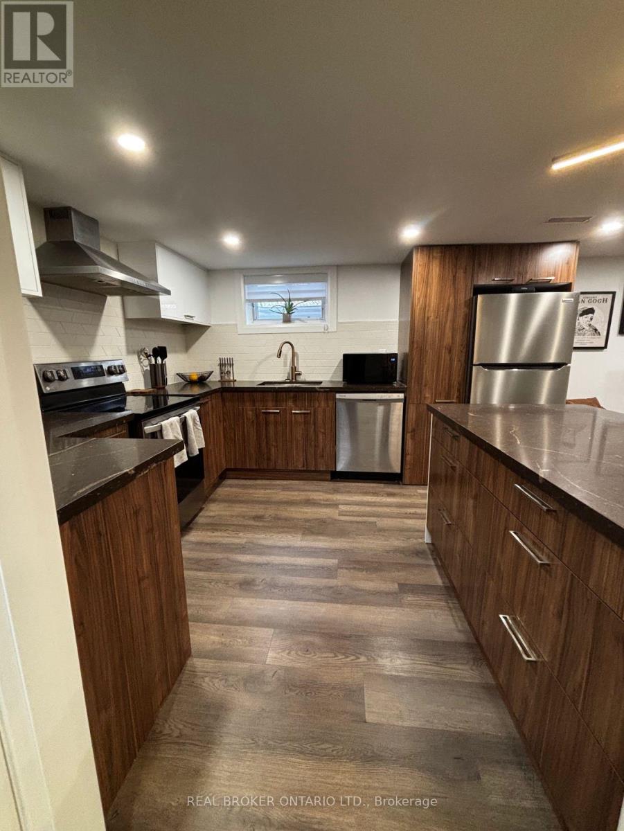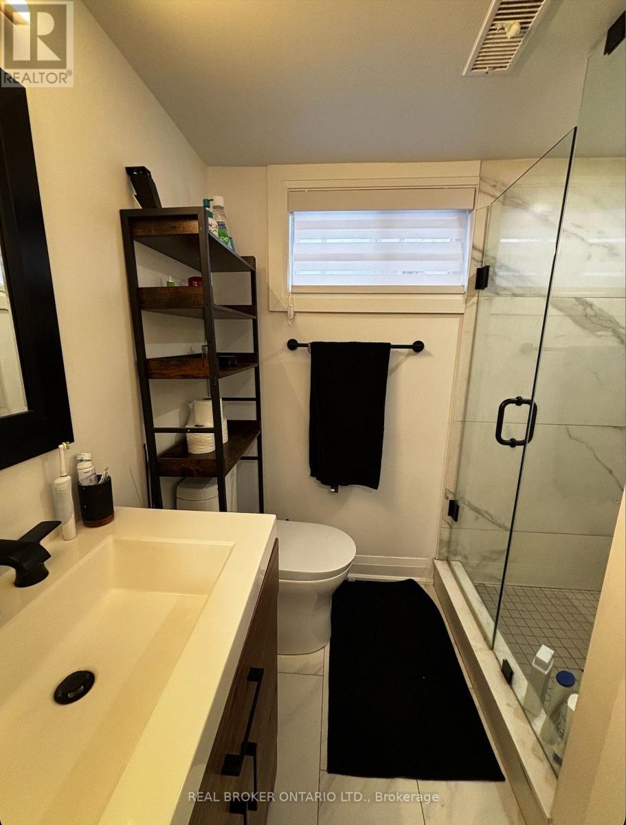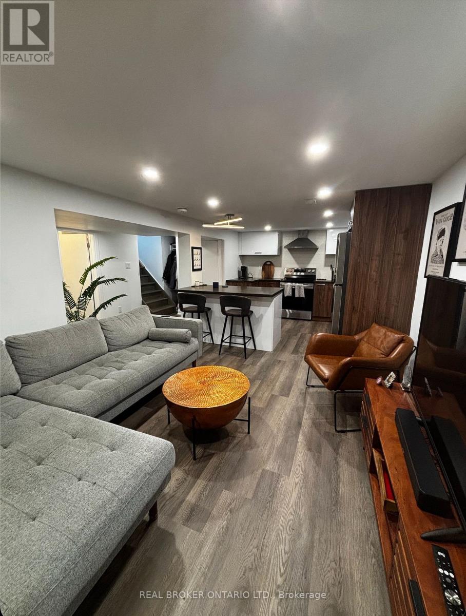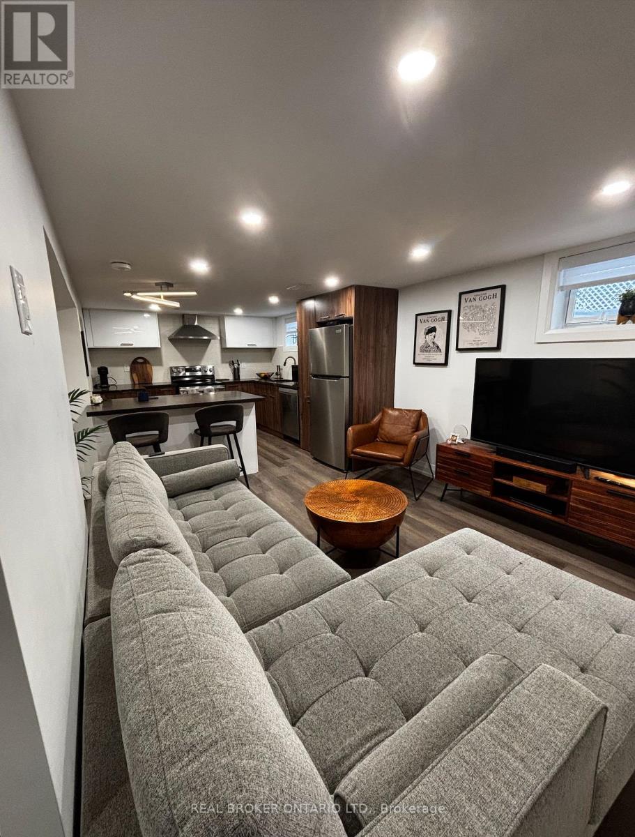 Beautifully updated and recently renovated two-bedroom legal lower unit featuring a private, separate entrance and a bright, modern interior. Ideally located close to local amenities, transit, and with quick access to Highway 401, this unit offers comfortable and convenient living. The open-concept kitchen and living area provides a functional layout for everyday living. The kitchen is equipped with stainless steel appliances, quartz countertops, tile backsplash, pot lighting, and a convenient breakfast bar. The living room is bright and welcoming, highlighted by a large window and modern pot lighting. This unit also offers the convenience of an in-suite laundry closet, two well-sized bedrooms, and a stylish 3-piece bathroom featuring a tiled walk-in shower. Enjoy access to the shared backyard, perfect for relaxing outdoors, and one dedicated parking space is included. Lower unit tenant pays 40% of utilties. (id:43681)